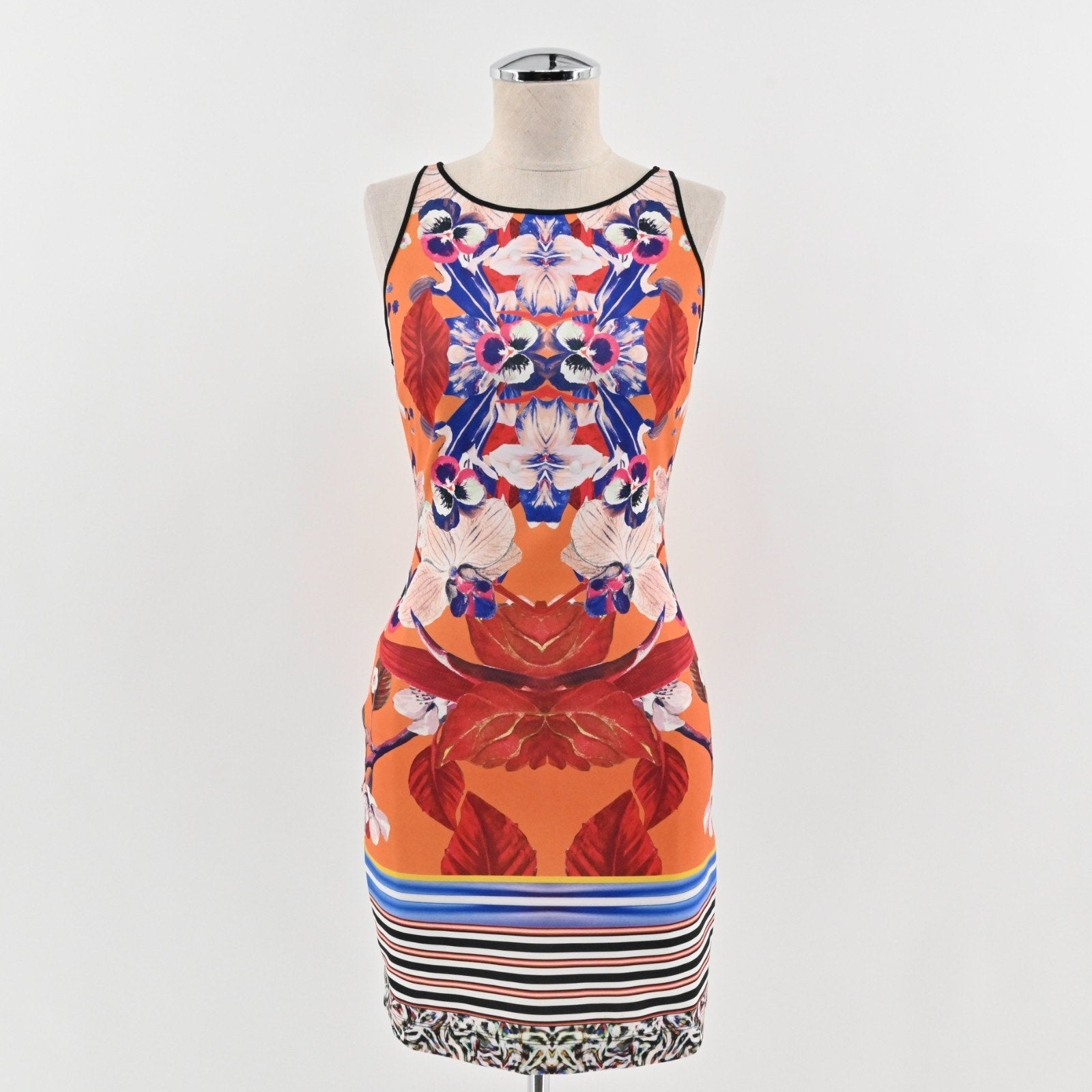 Clover Canyon Prism Orchid Neoprenen Scuba Dress Sz S Bodycon Sleeveless Stretch