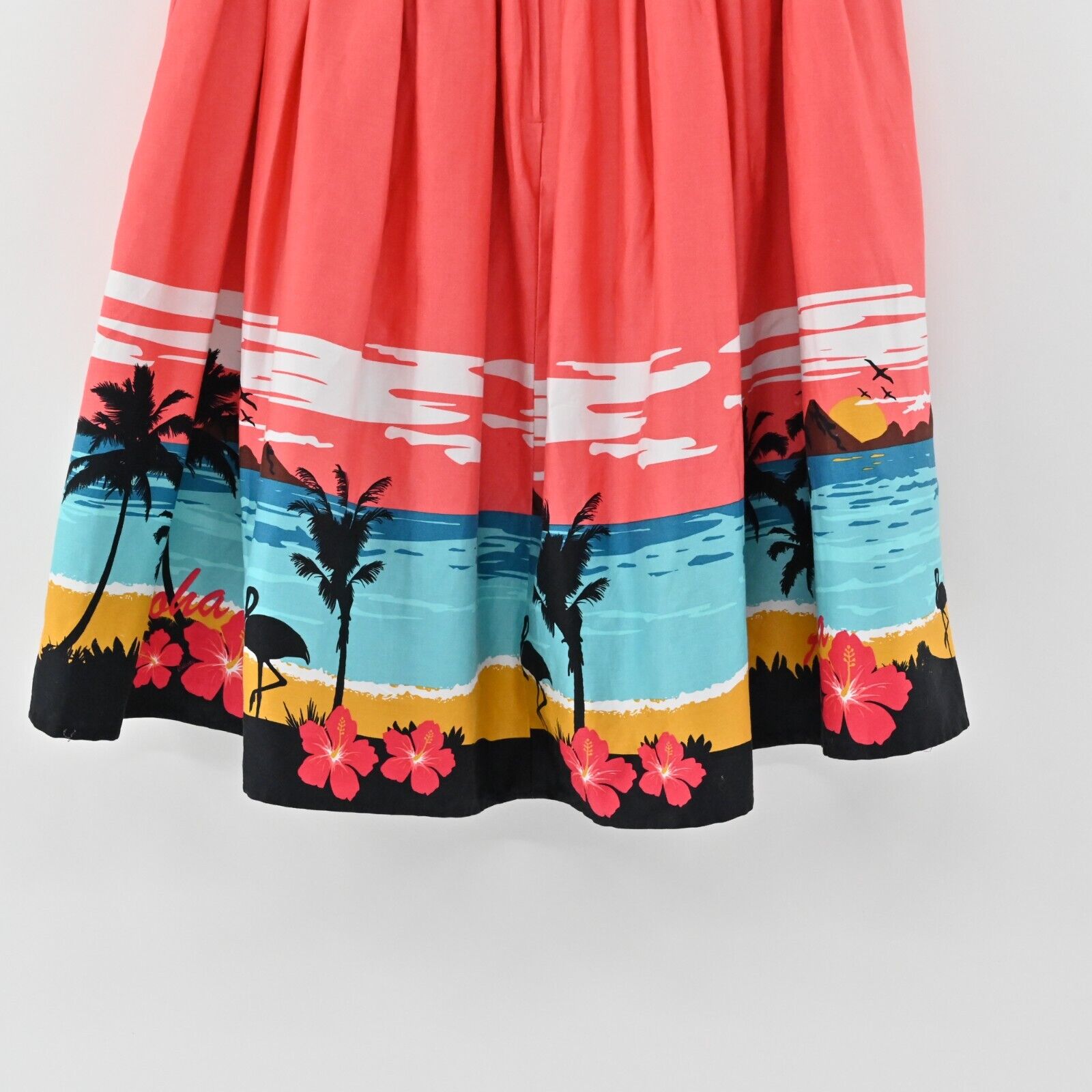 Collectif Skirt Sz M MARILU Tropical Island ALOHA Palm Flamingo SWING Rockabilly
