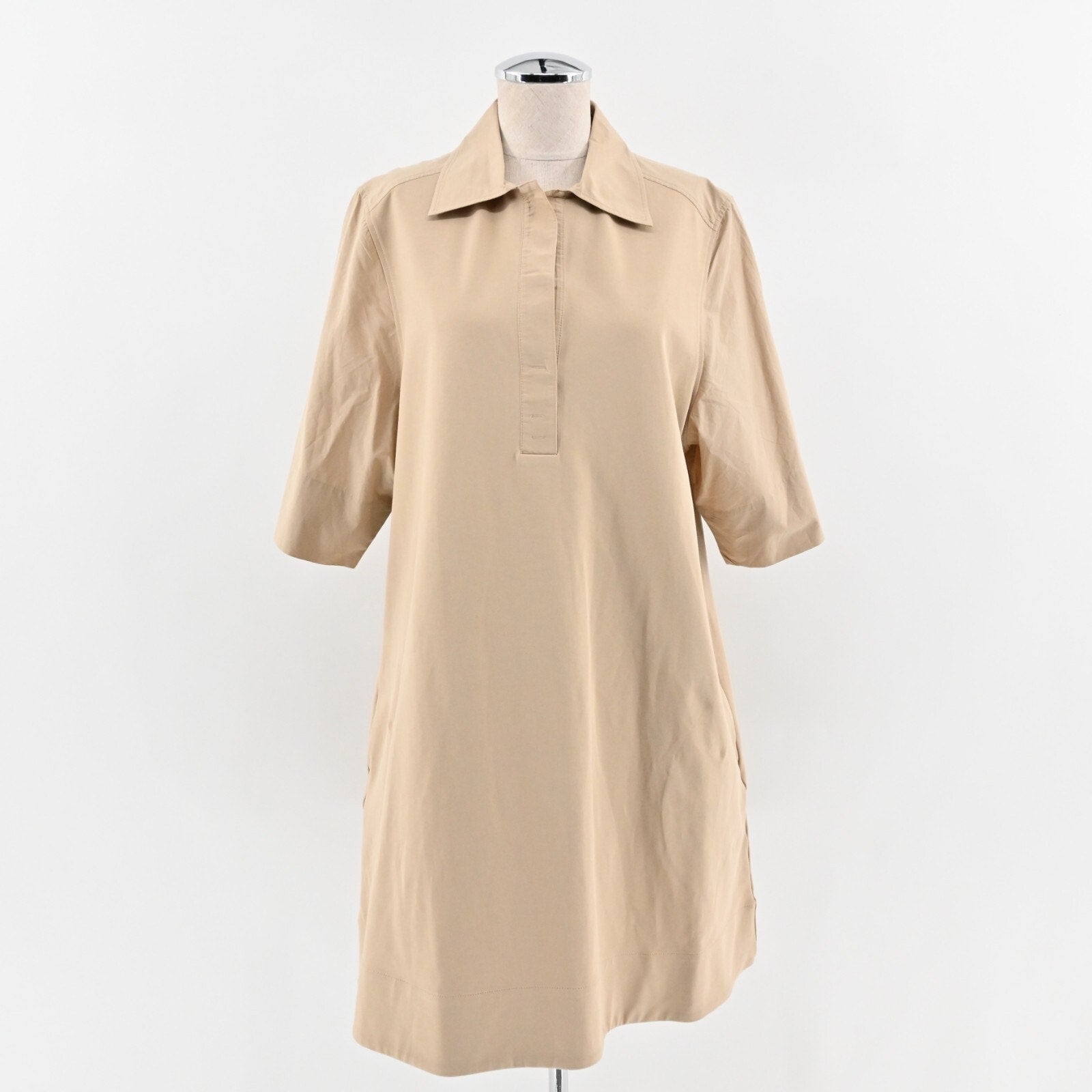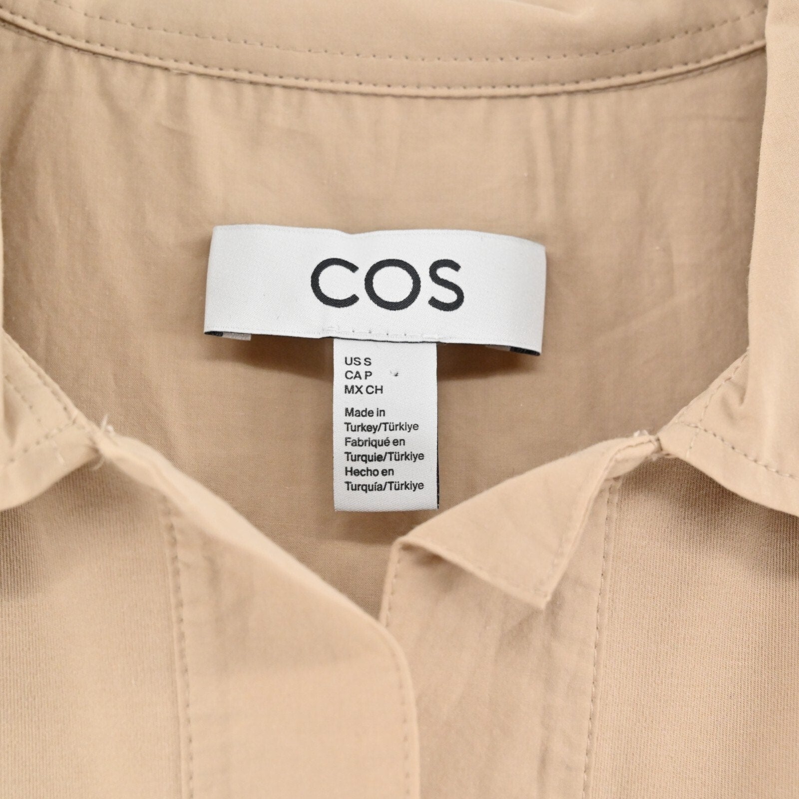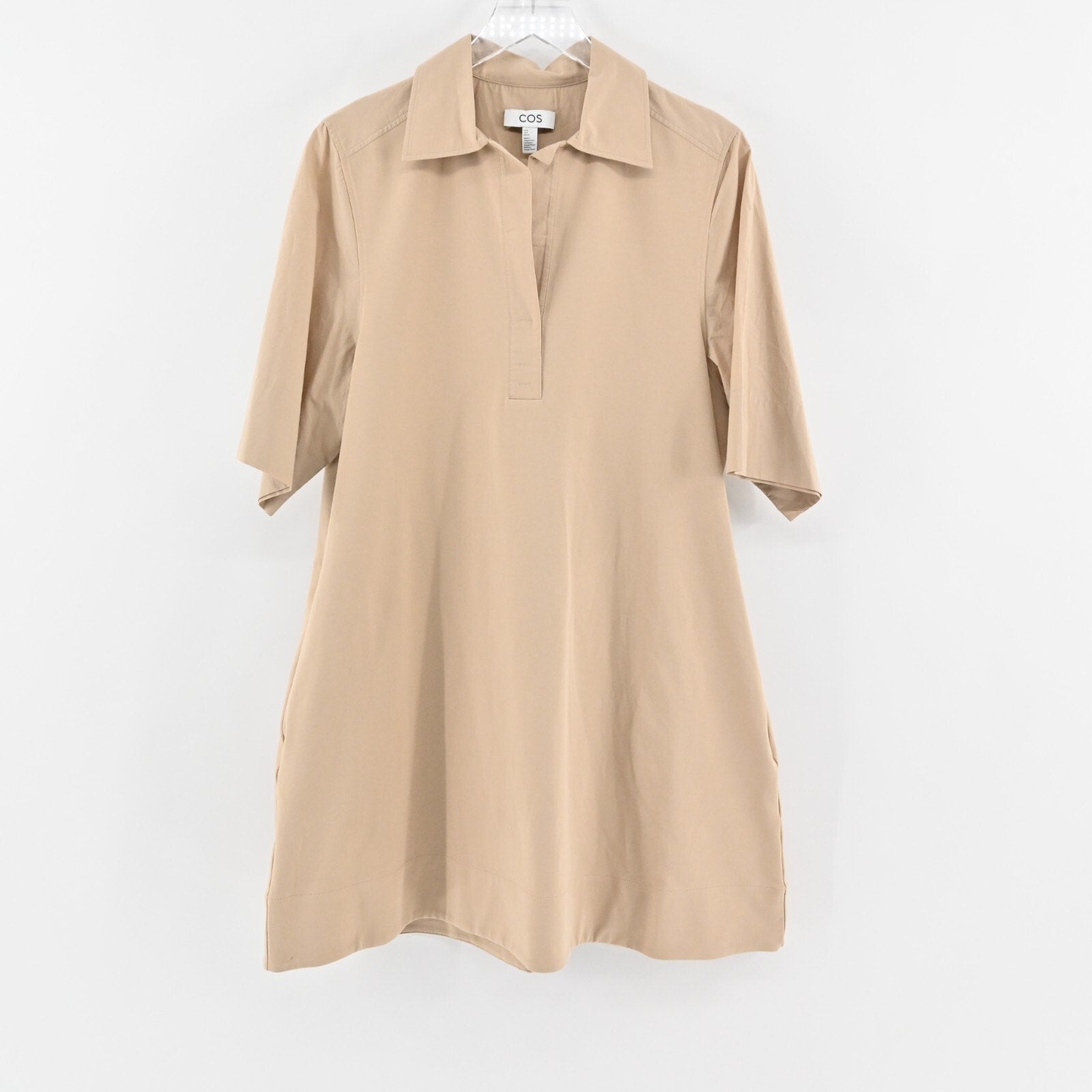 COS Khaki Shirt Dress Size S Open Collar Oversized Shift Casual Neutral Preppy