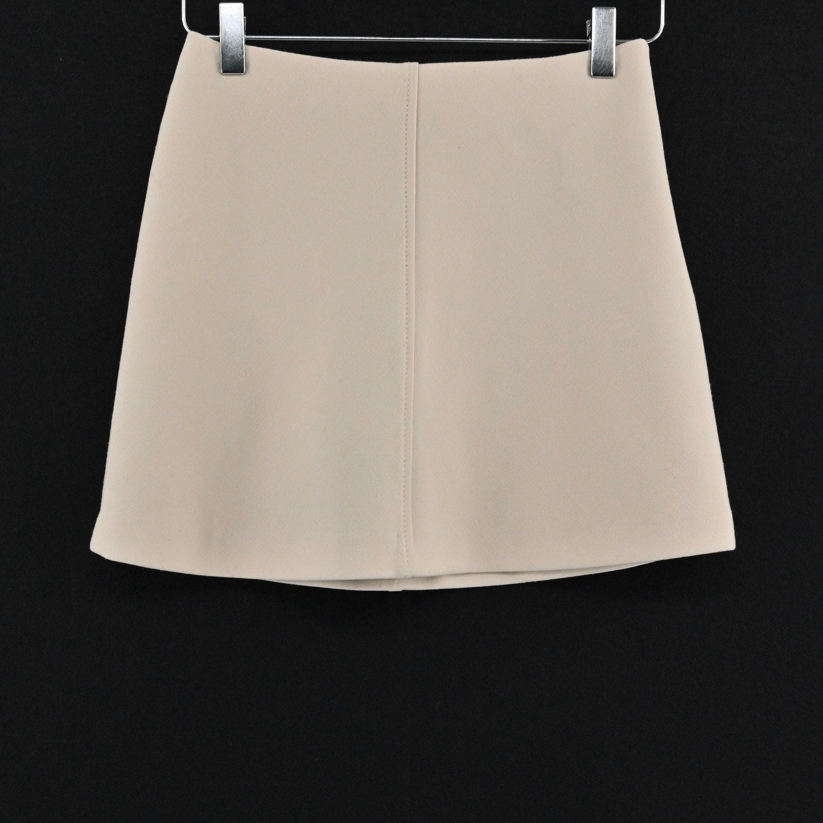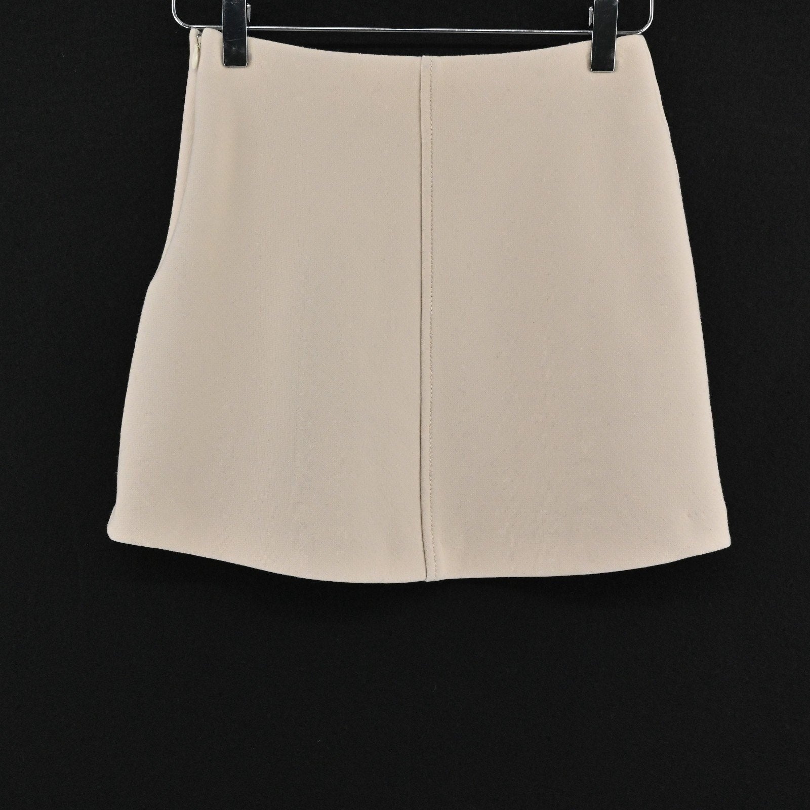 Courreges Paris Wool Mini Skirt Sz 38 Beige Mod Twee Retro Preppy Light Academia