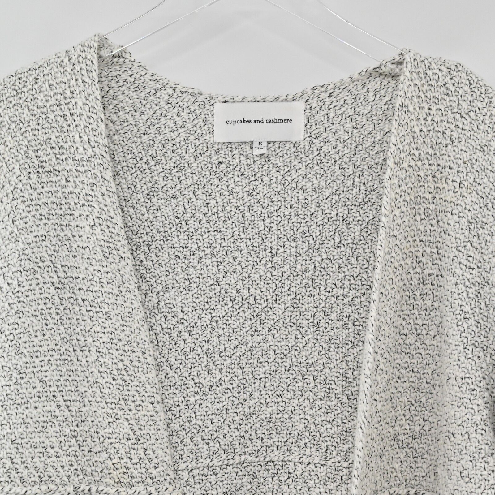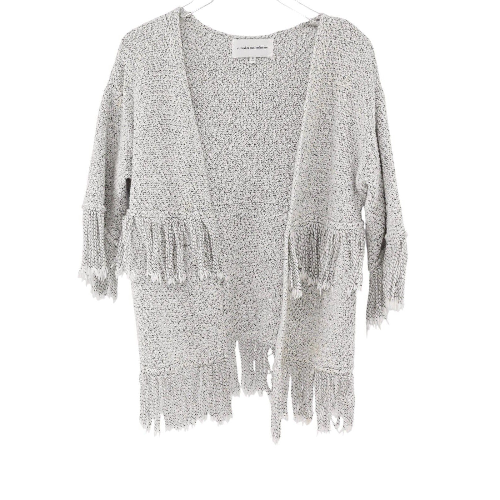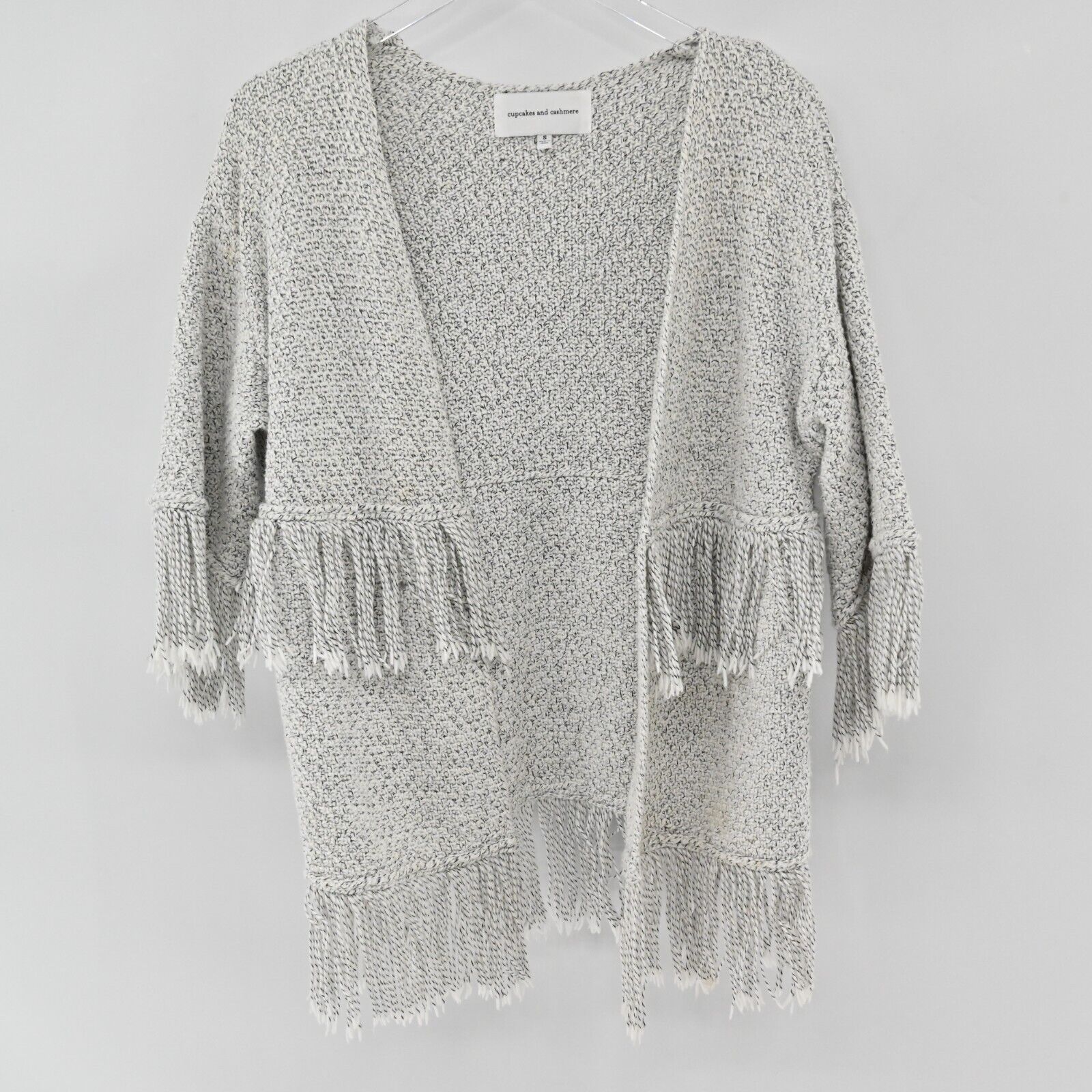 CUPCAKES CASHMERE Sweater Womens Sz S Calypso Fringe Knit Open Cardigan Boho