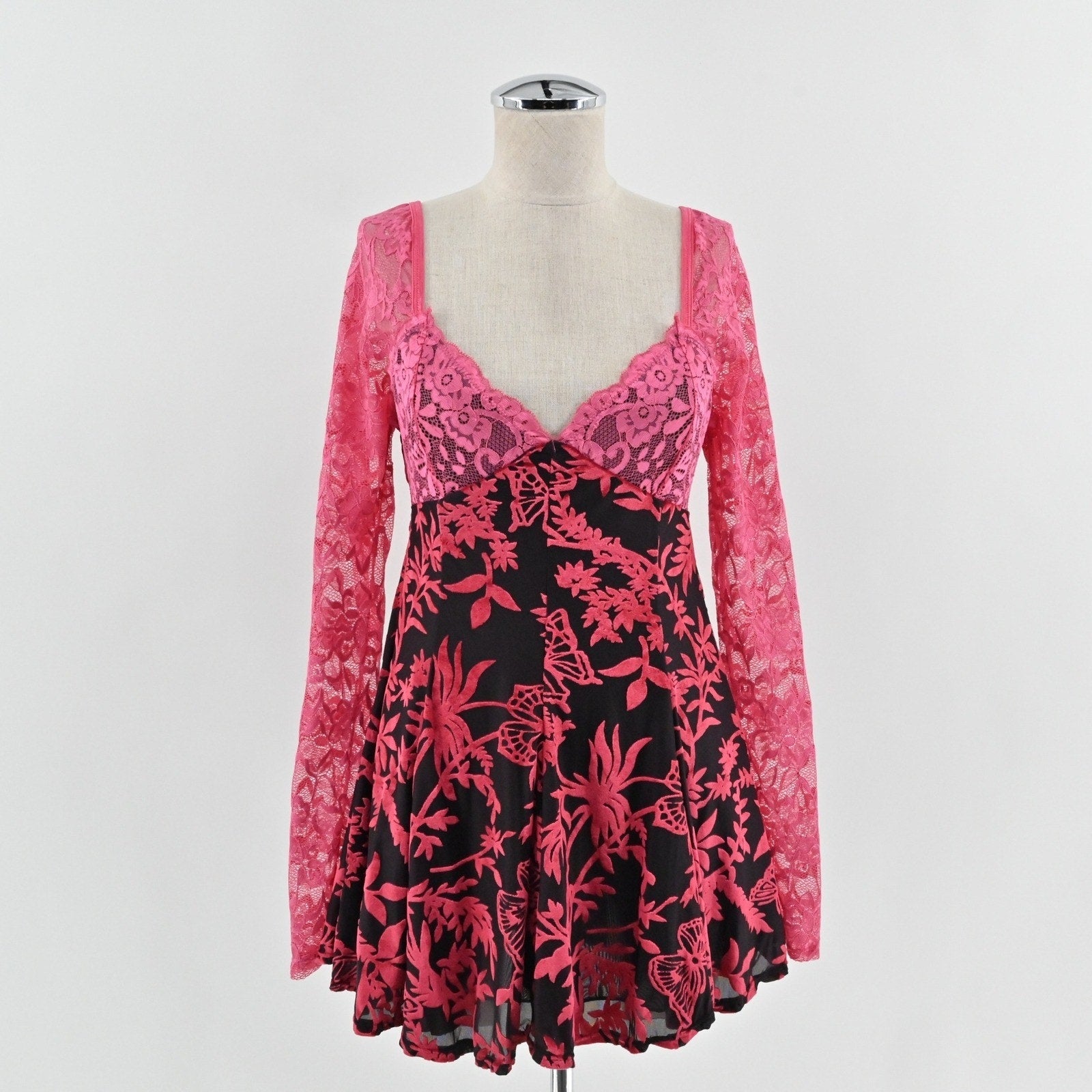 Delias Dolls Kill Watermelon Sugar Velvet Burnout Dress Size M Lace Floral Mini