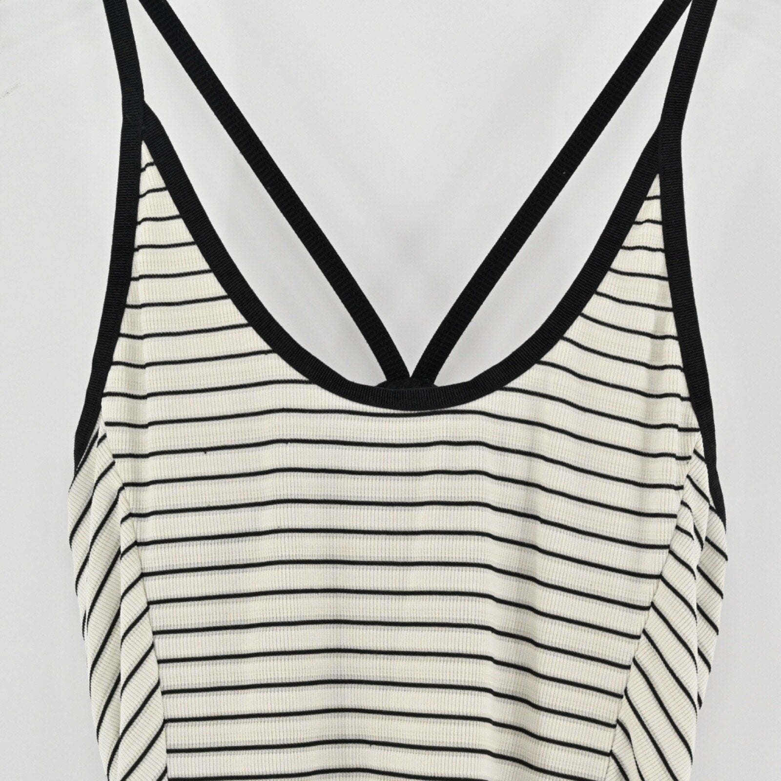 DEREK LAM 10C Womens Madison Ave Tank Top Size S ATHLETA White Black Stripe Gym