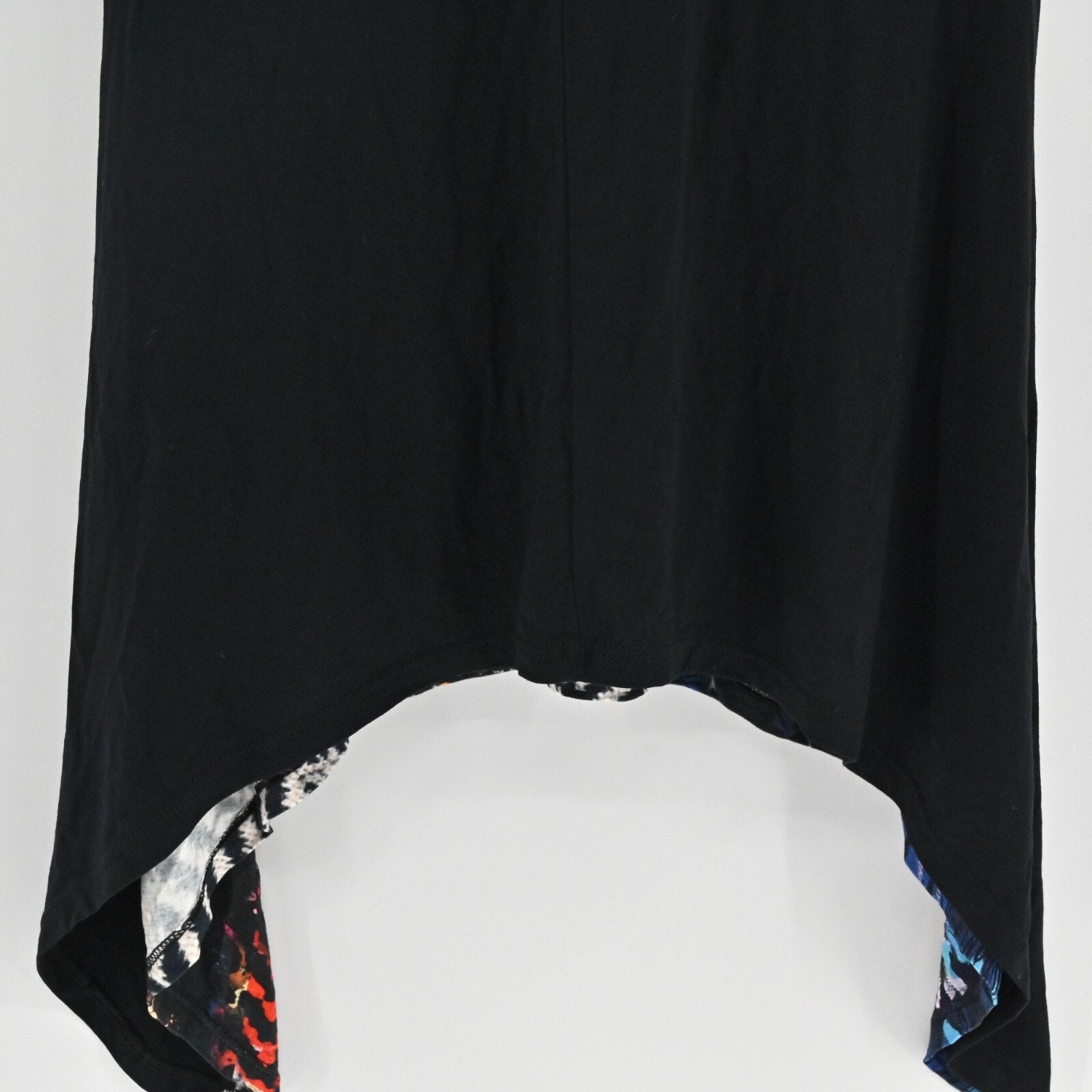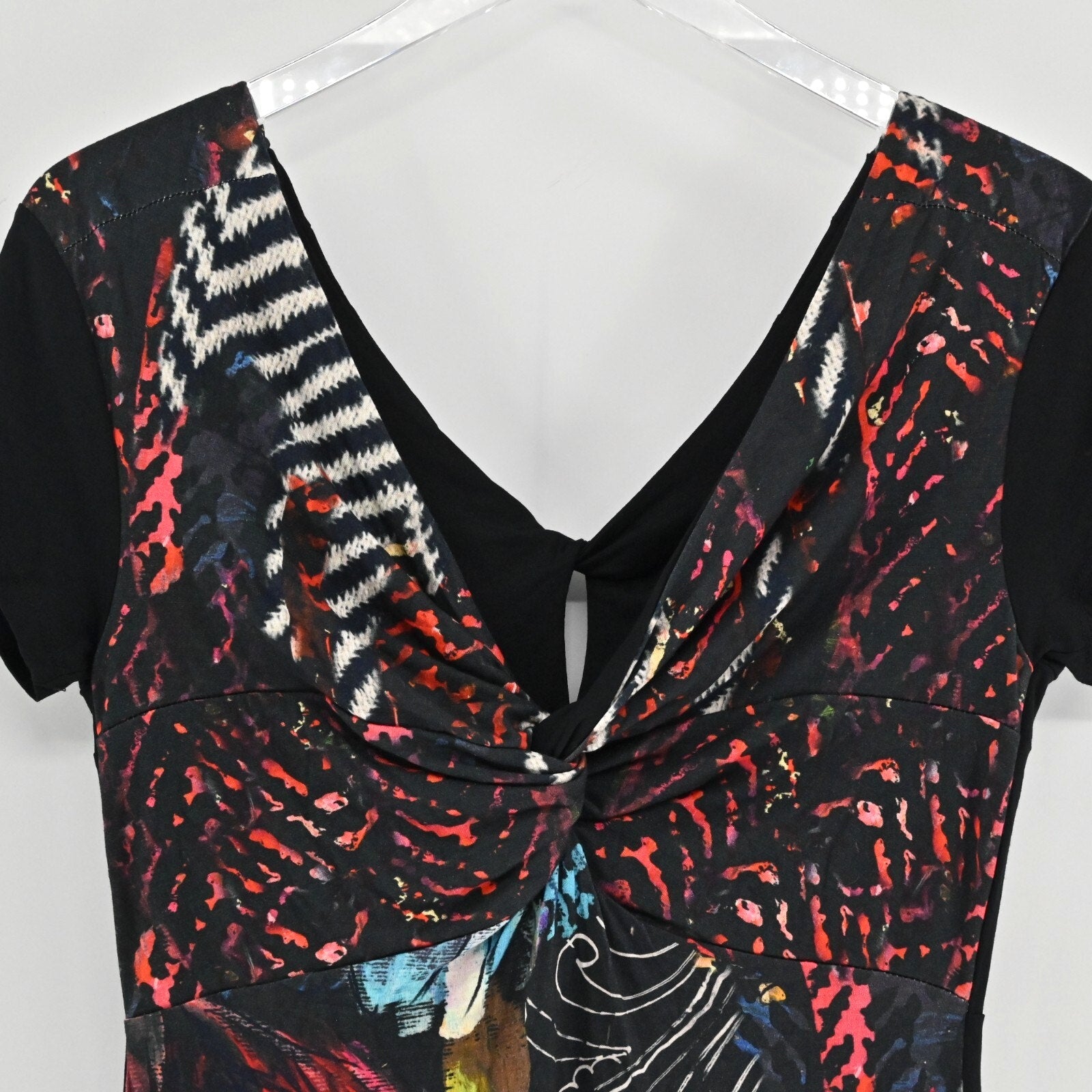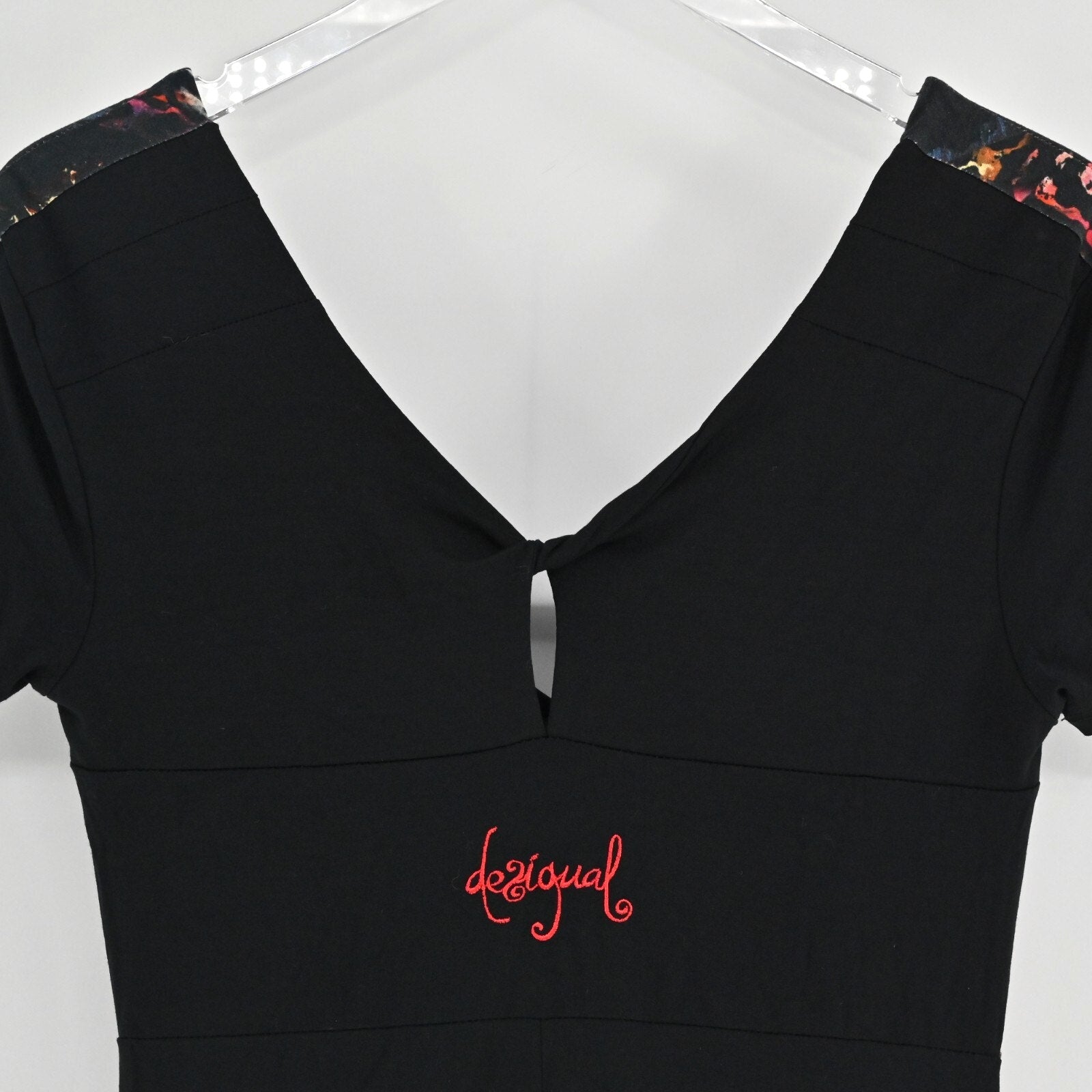DESIGUAL Womens Asymmetrical Dress Sz S Black Floral Tropical Short Sleeve VNeck