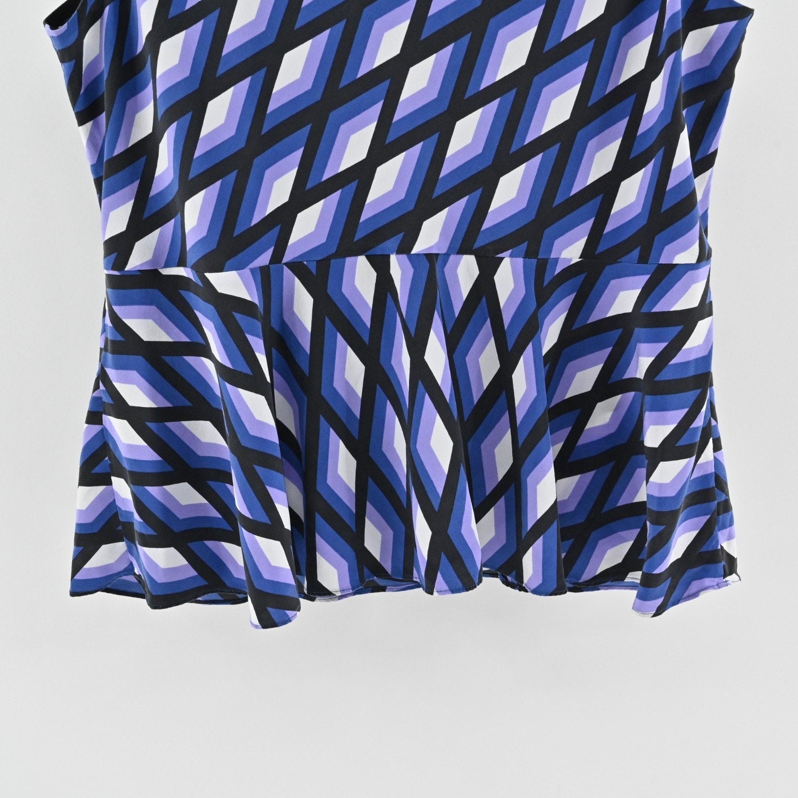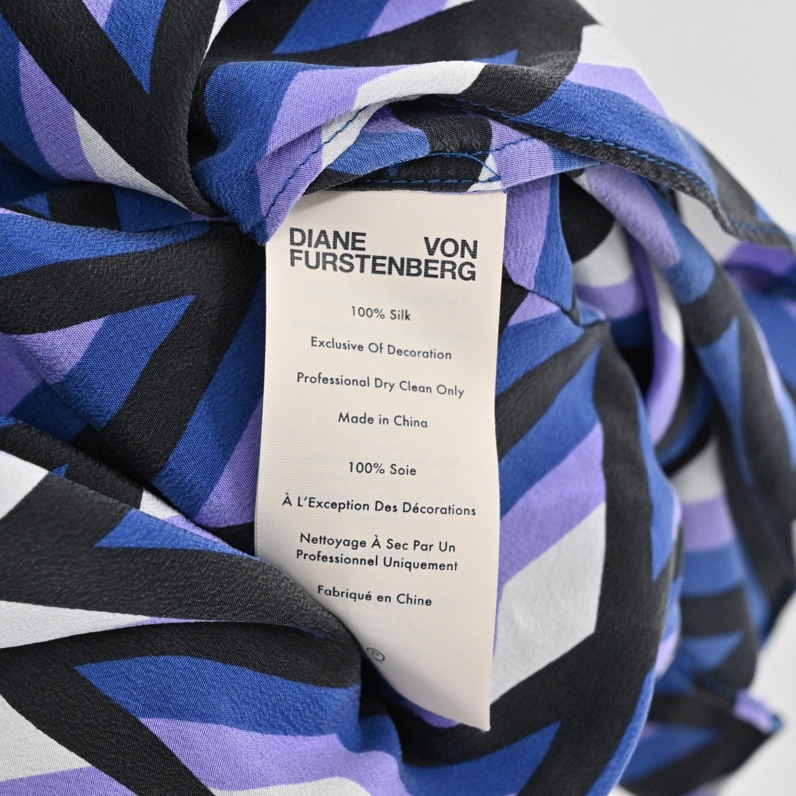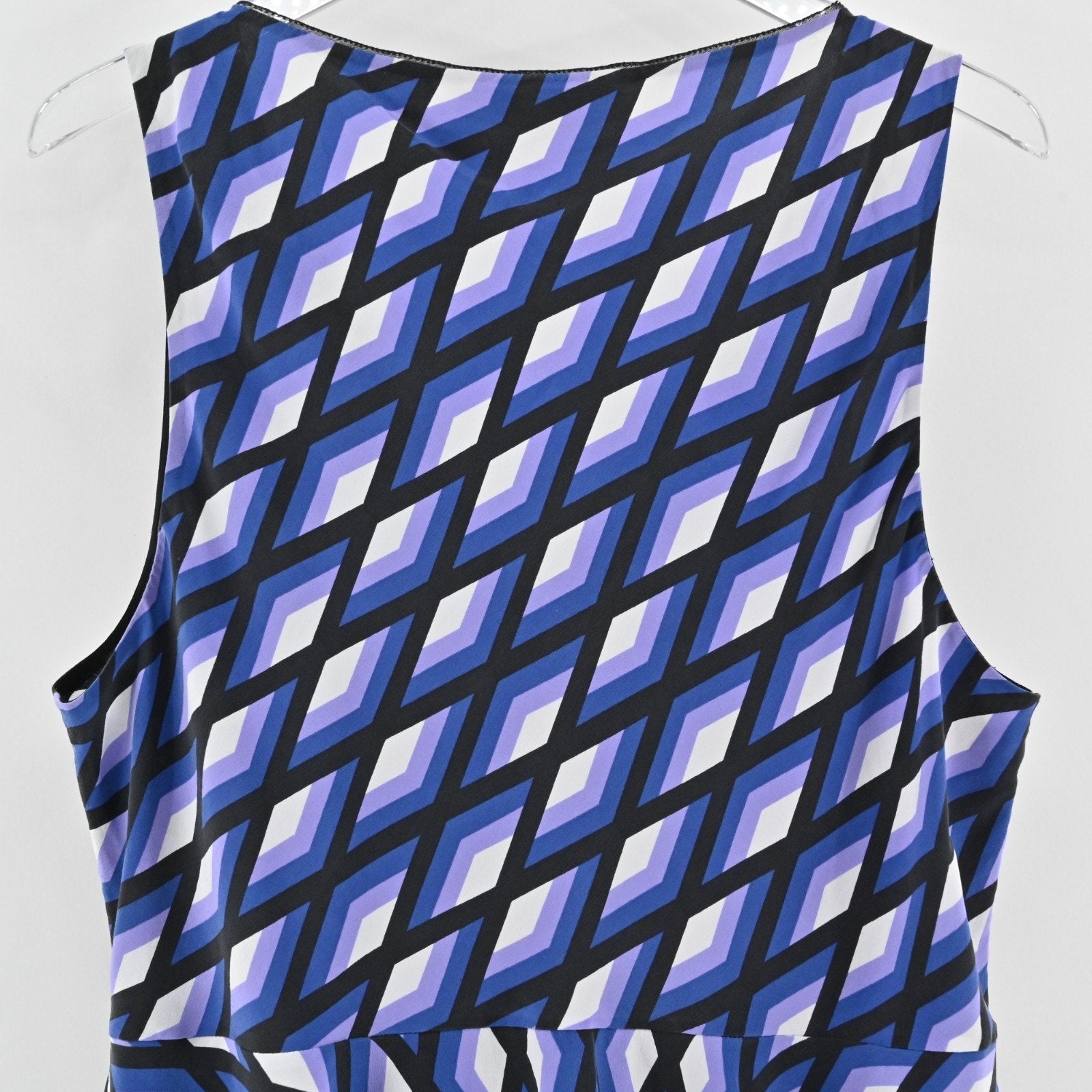Diane Von Furstenberg Womens Mercer Silk Top Size XL Blue Geometric Sleeveless