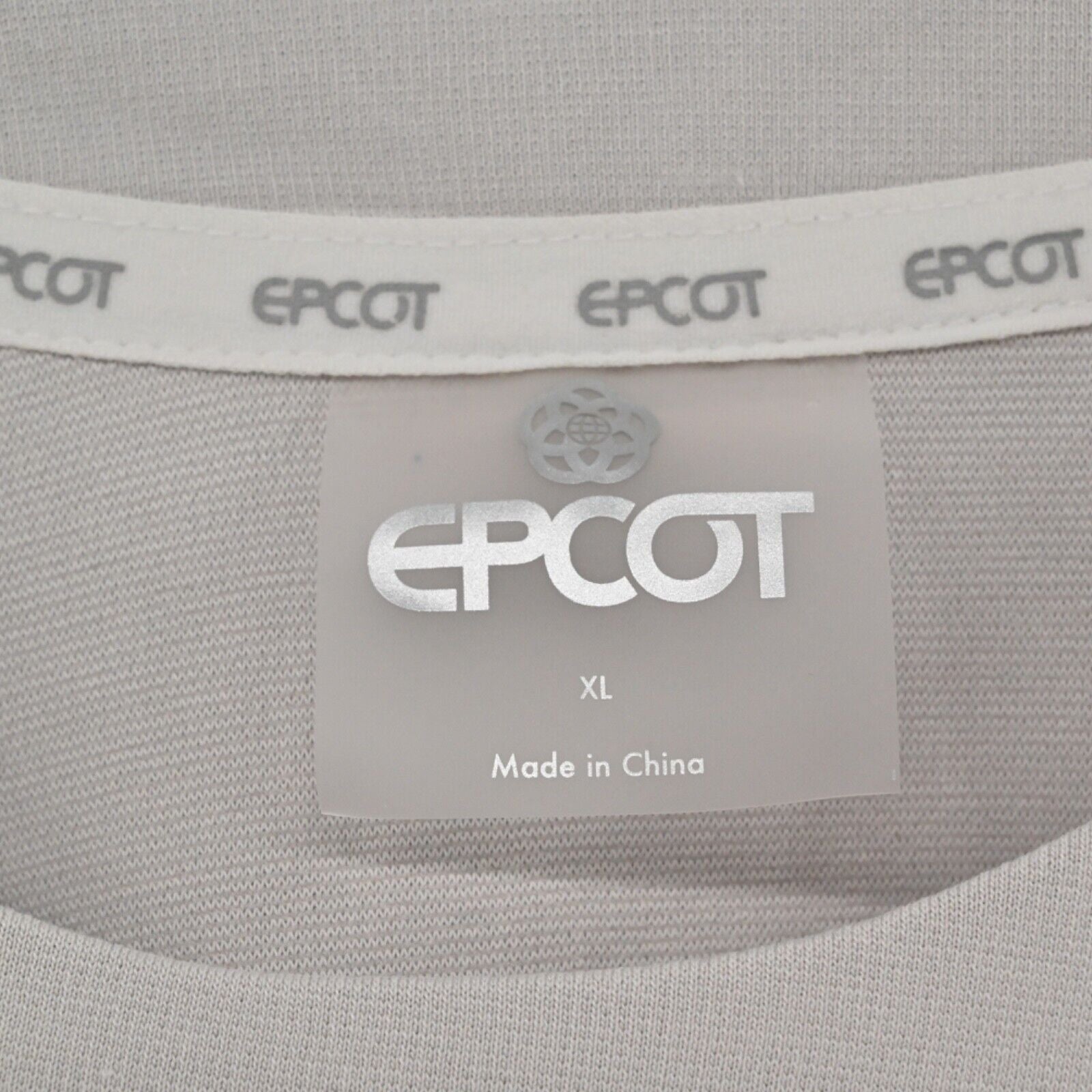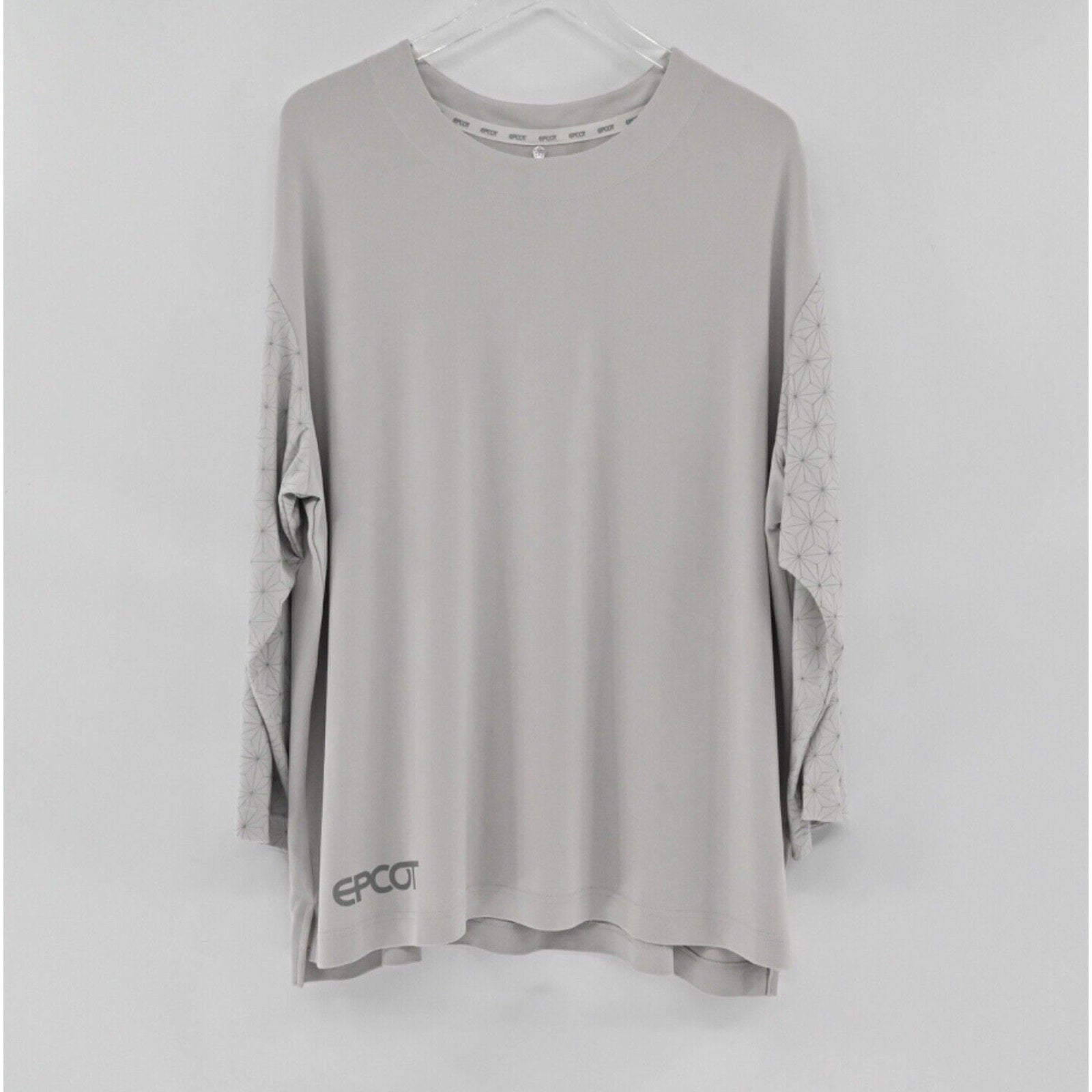 DISNEY PARKS EPCOT T-Shirt Women's Size XL Gray Epcot Logo Spaceship Earth Print Long Sleeve Crew Neck Walt Disney World Minimalist Athleisure