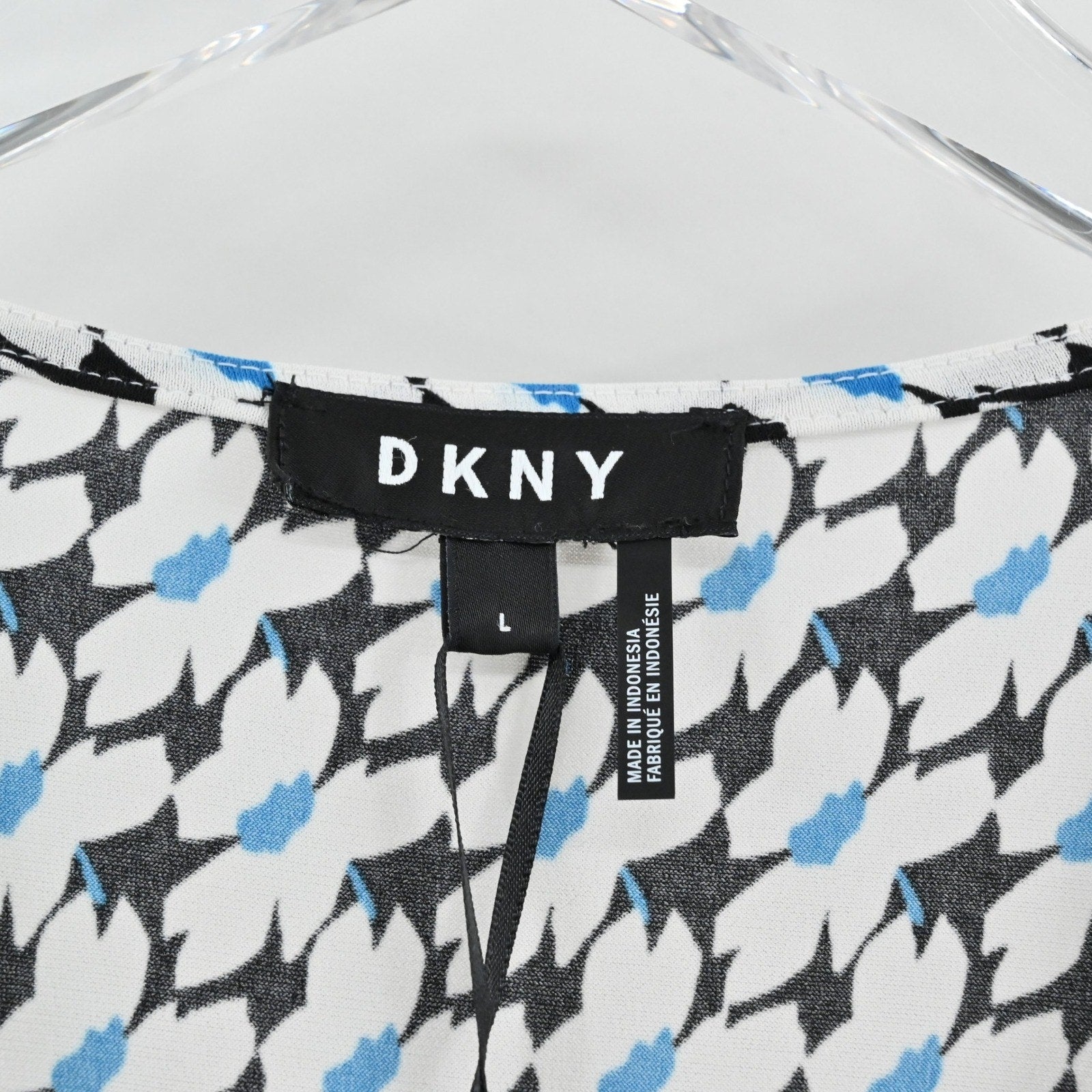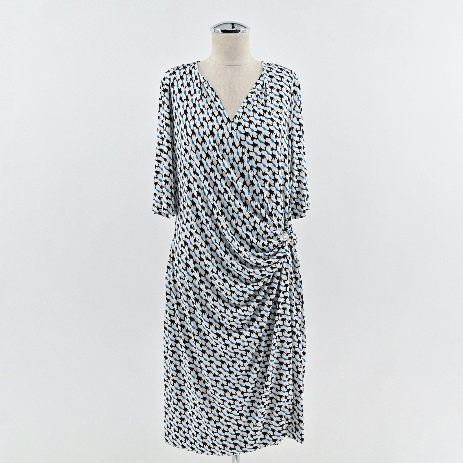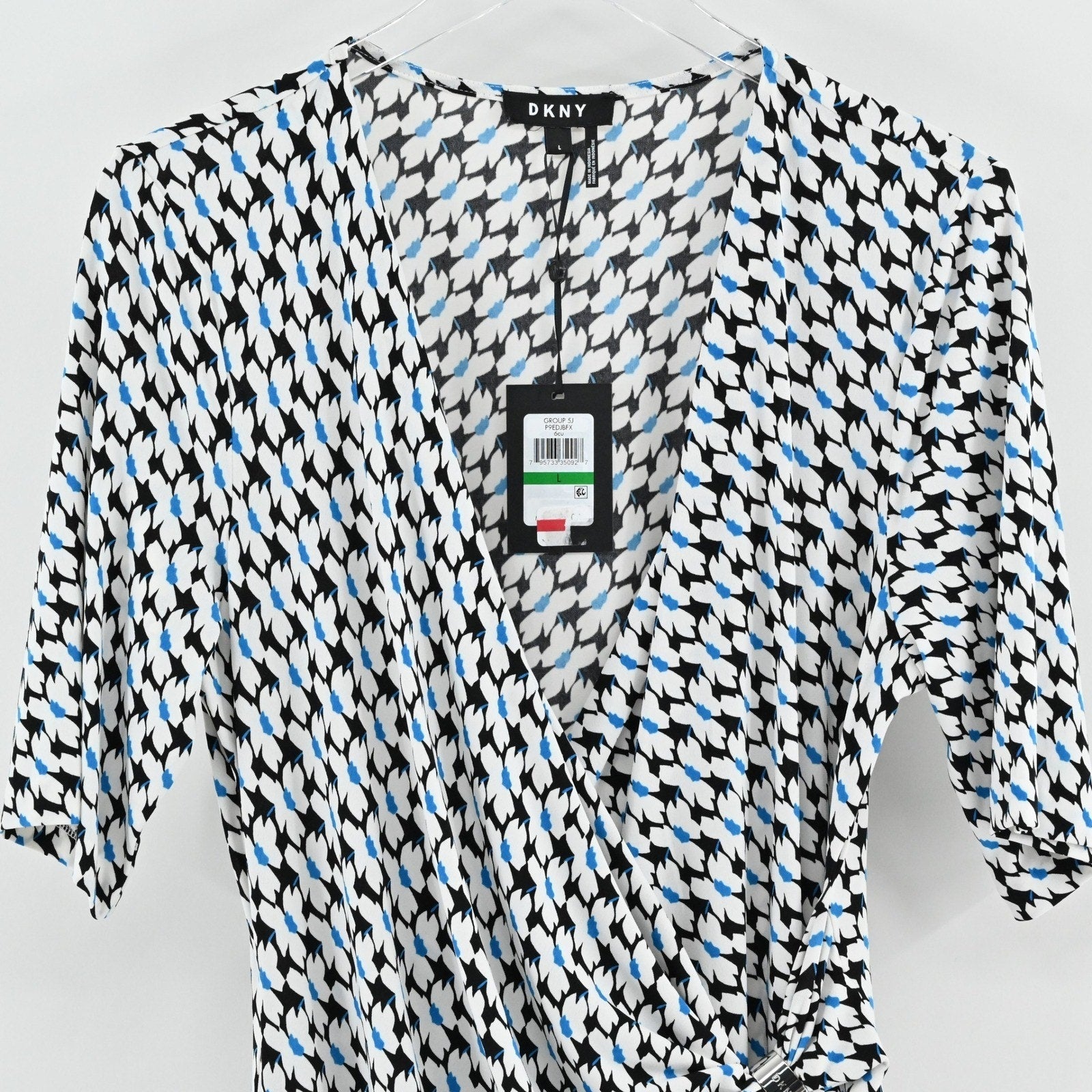 DKNY Faux Wrap Dress Size L Geometric Modern Artistic Flattering Sophisticated