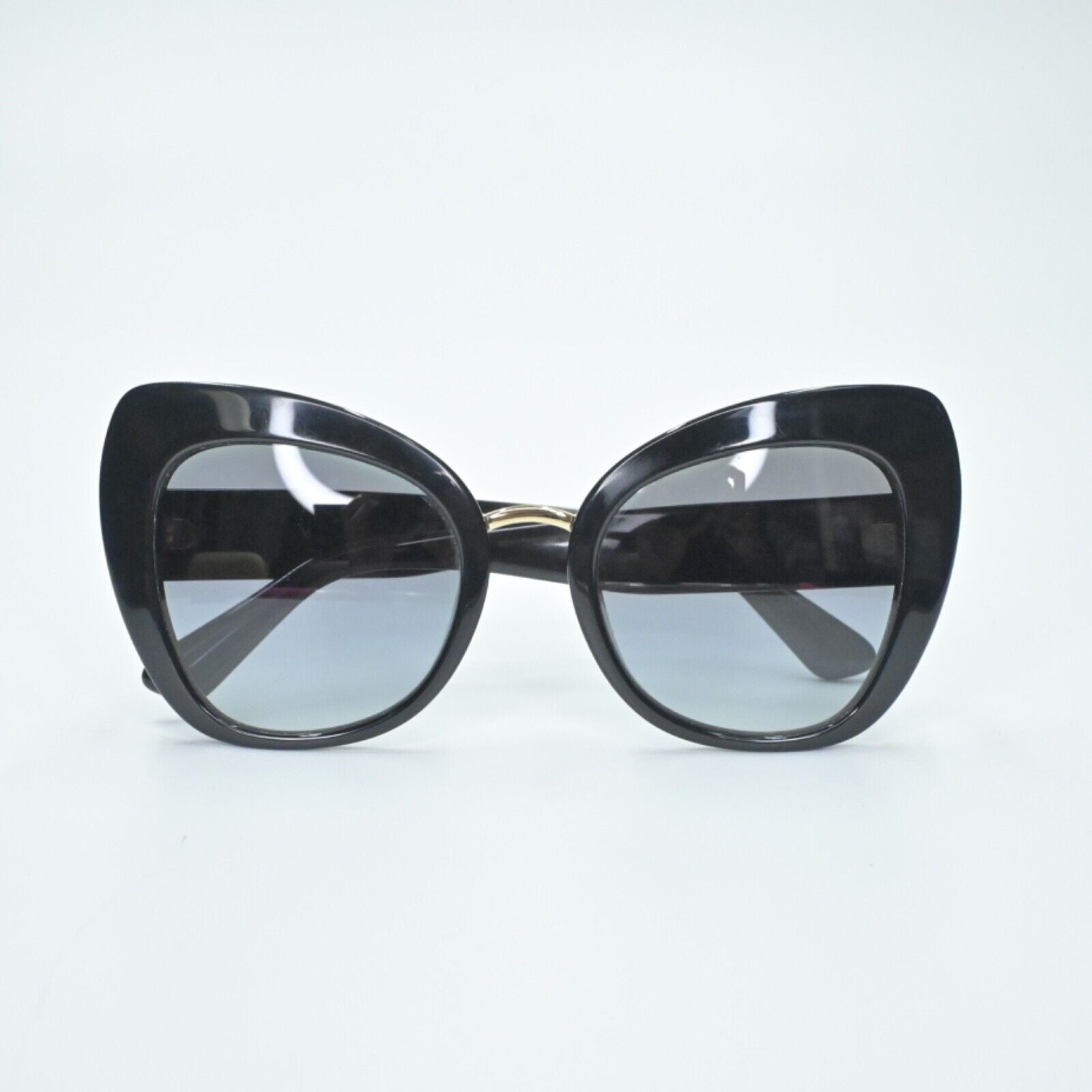 DOLCE & GABBANA Sunglasses With Case Black Butterfly Cat Eye Gold Metal Bridge Blue Smoke Gradient Lens 51MM Made In Italy Retro Twee Gothic