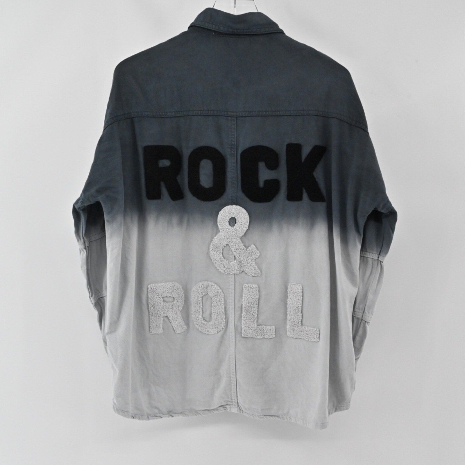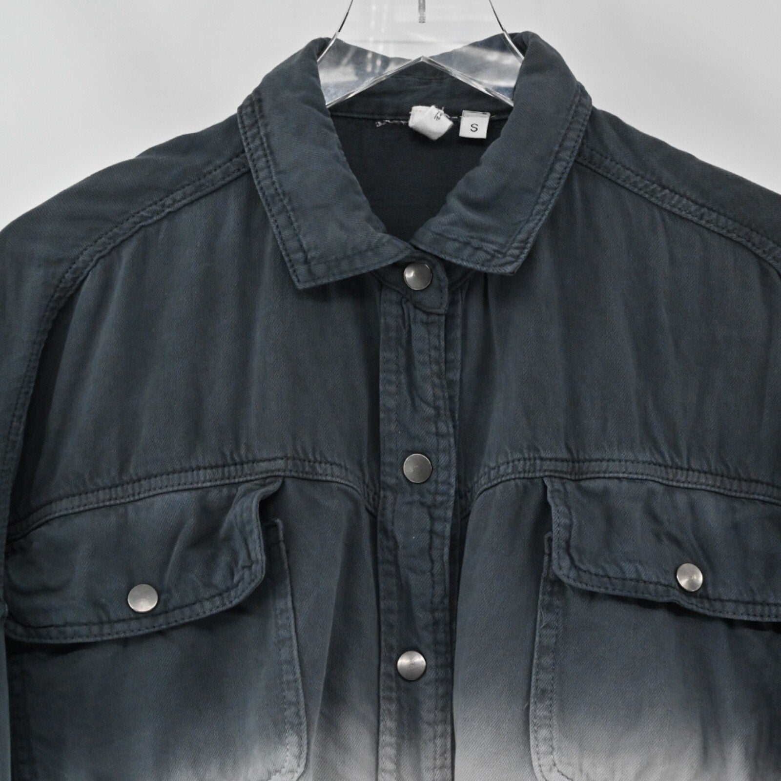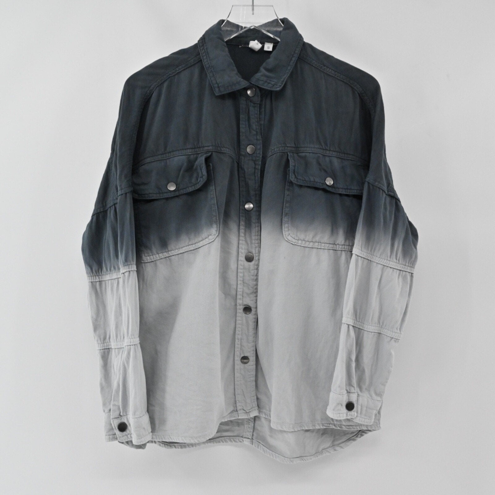 ELAN Womens Devan Denim Jacket Size S Gray Ombre Rock Roll Edgy Shacket Cotton
