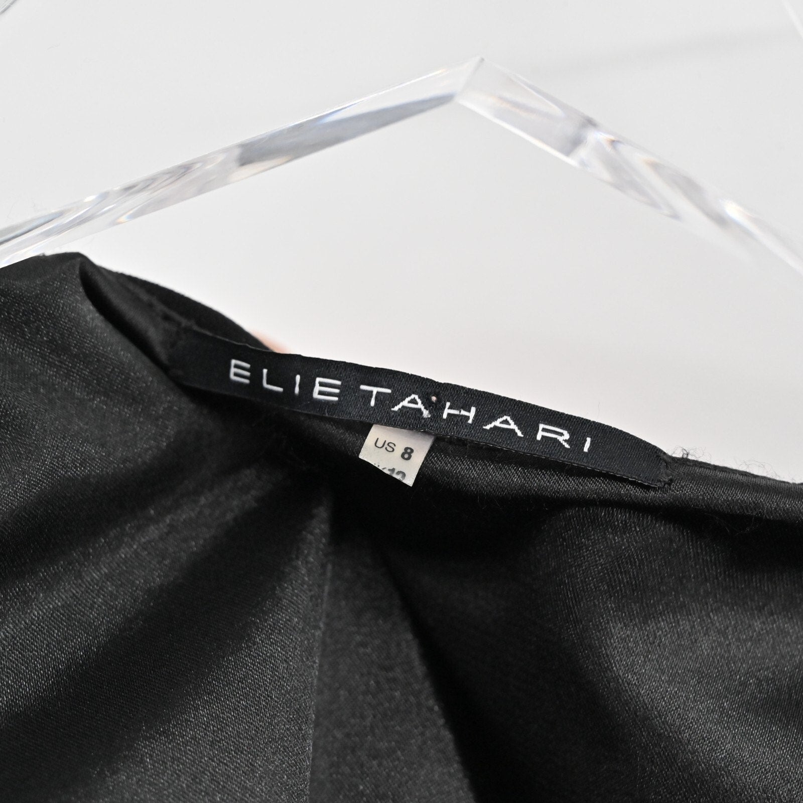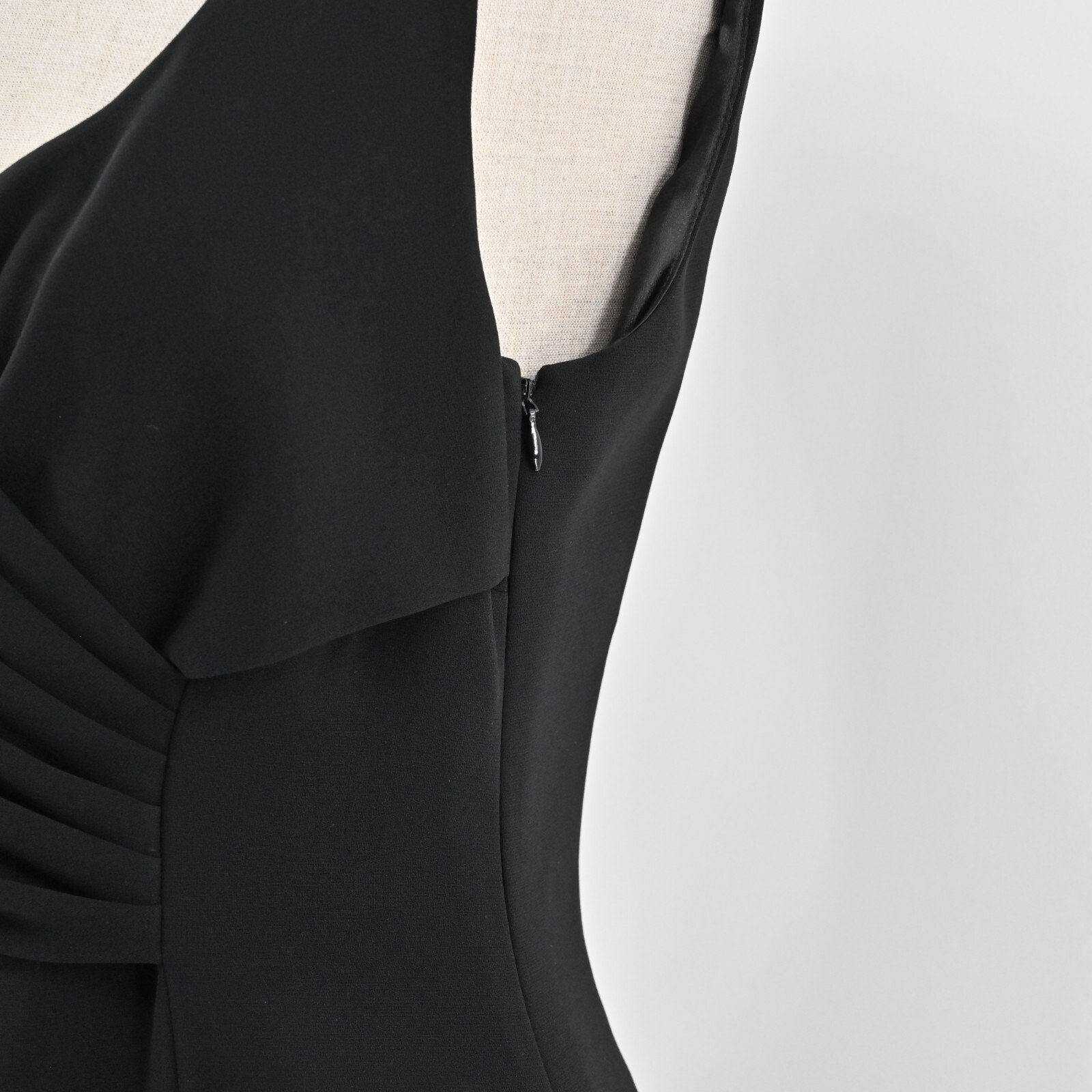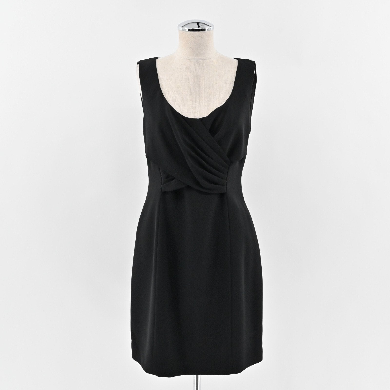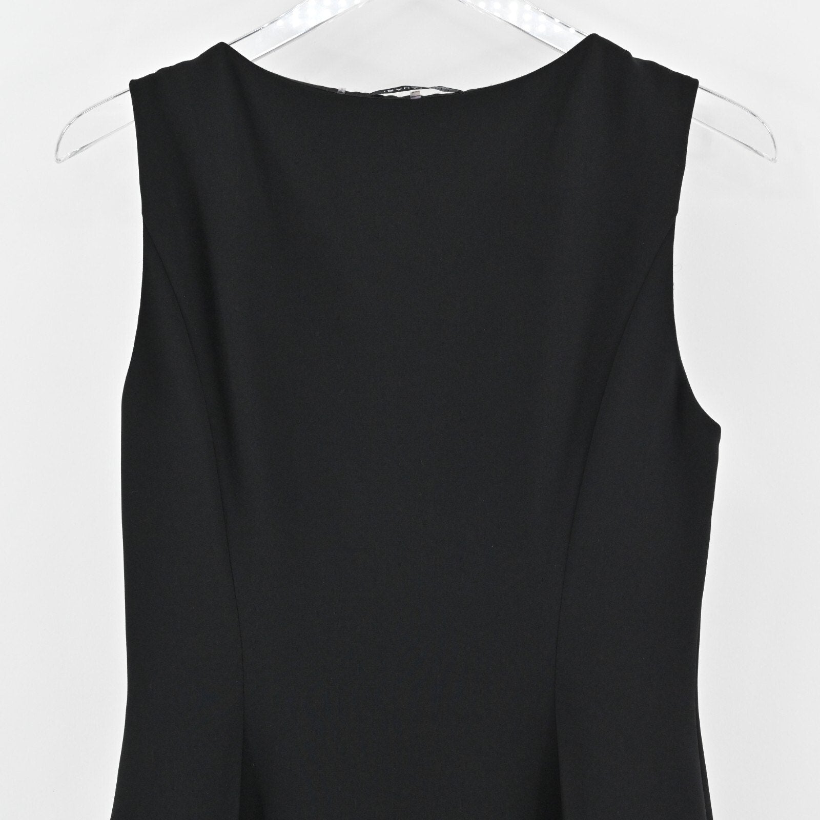 ELIE TAHARI Dress Size 8 Black Scoop Neck Pleated Front Detail Sleeveless Mini