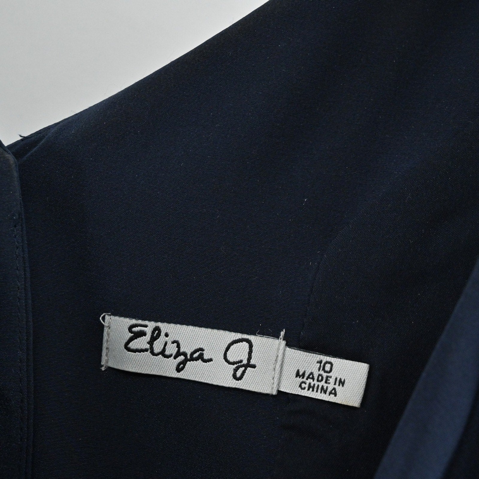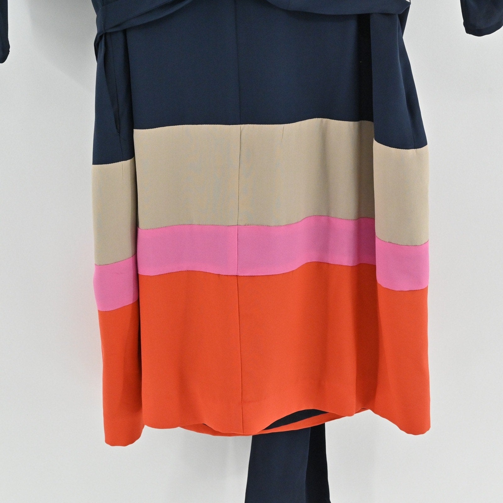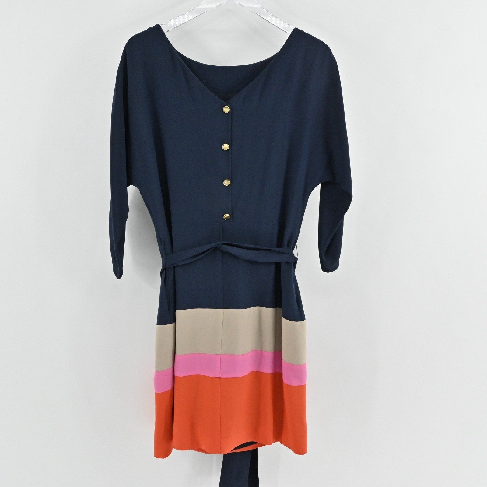 Eliza J Color Block Dress Size 10 Belted Button Navy Contemporary Modern Career
