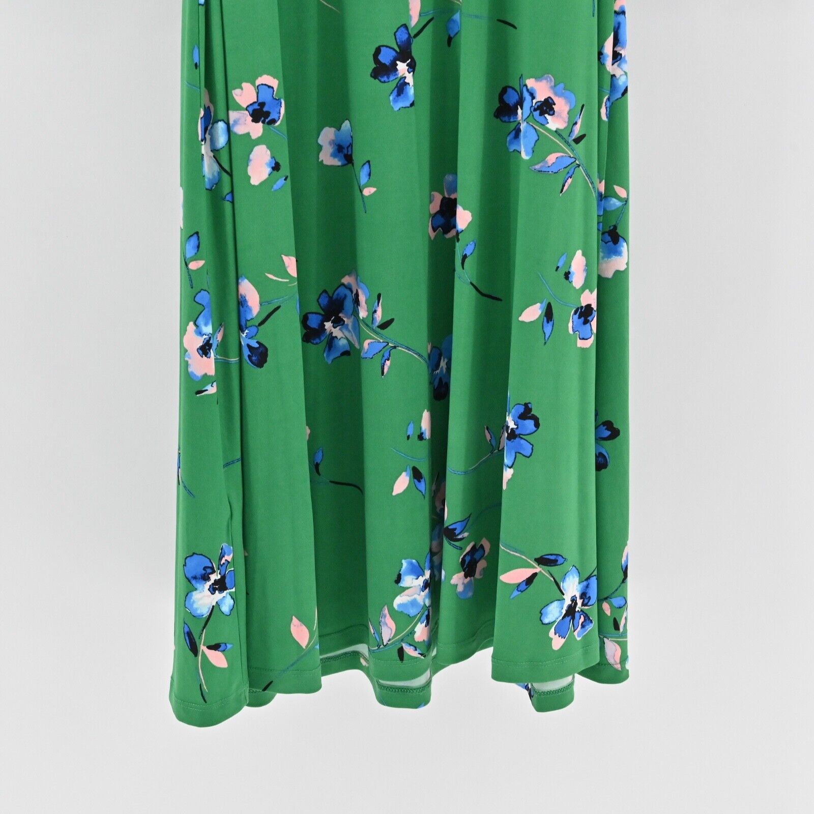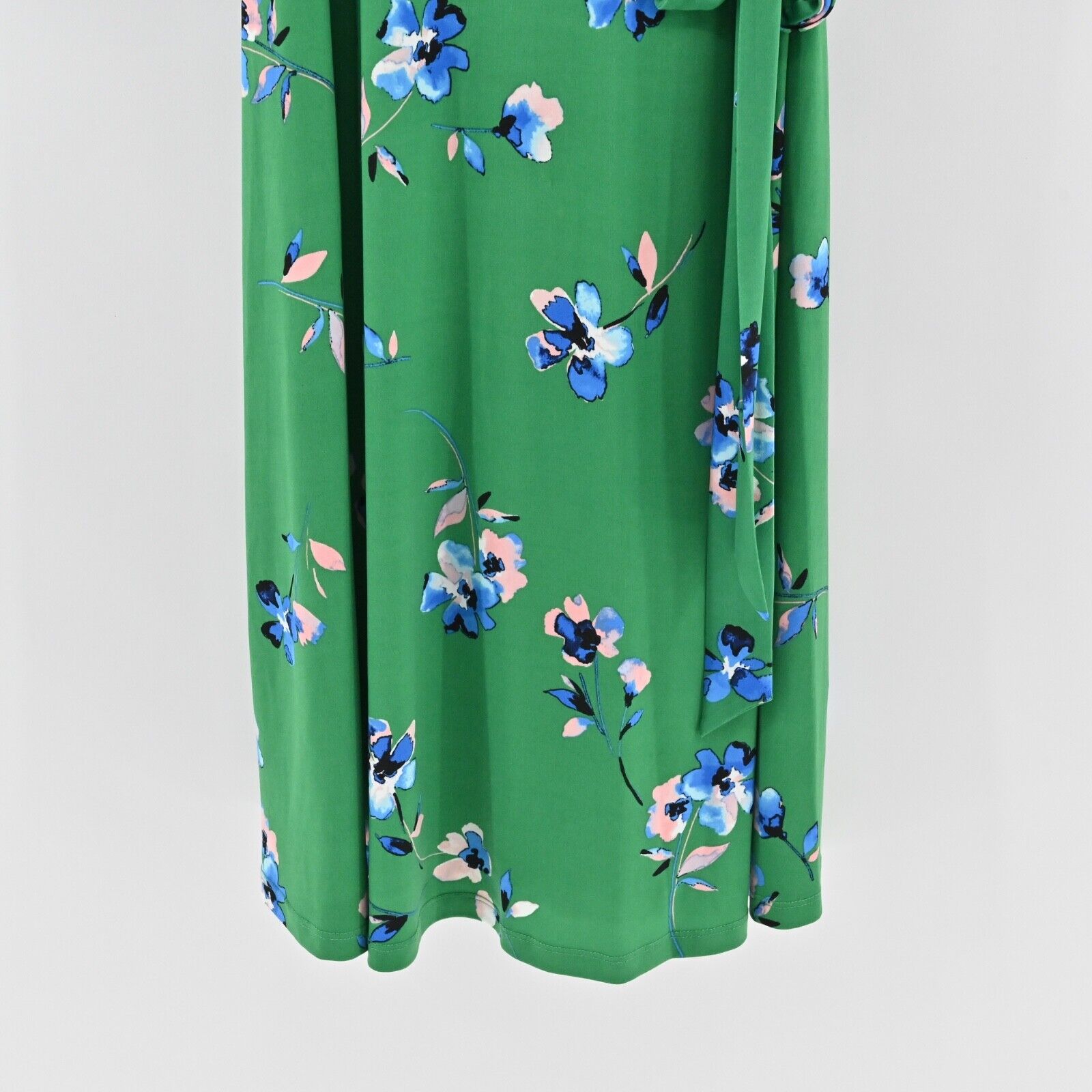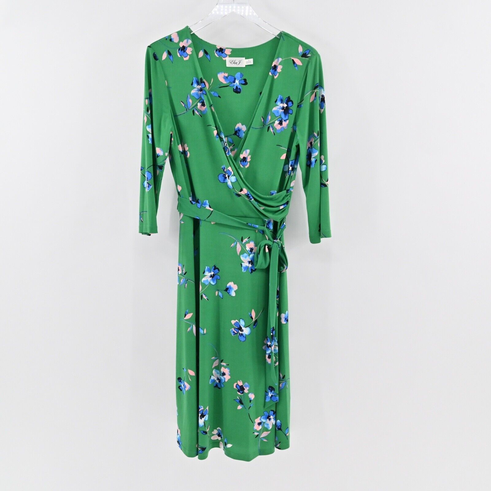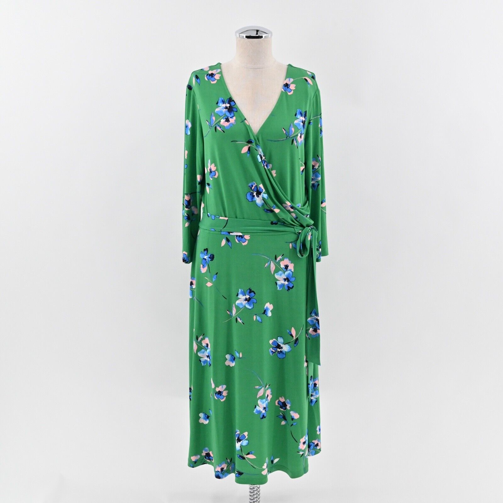 ELIZA J Dress Size 14 Green Floral V Neck Long Sleeve Tie Belt Faux Wrap Midi