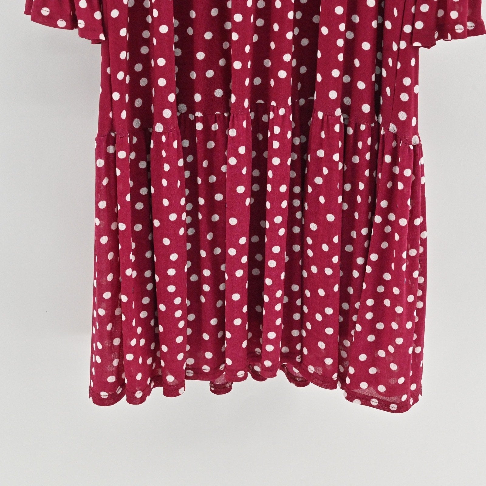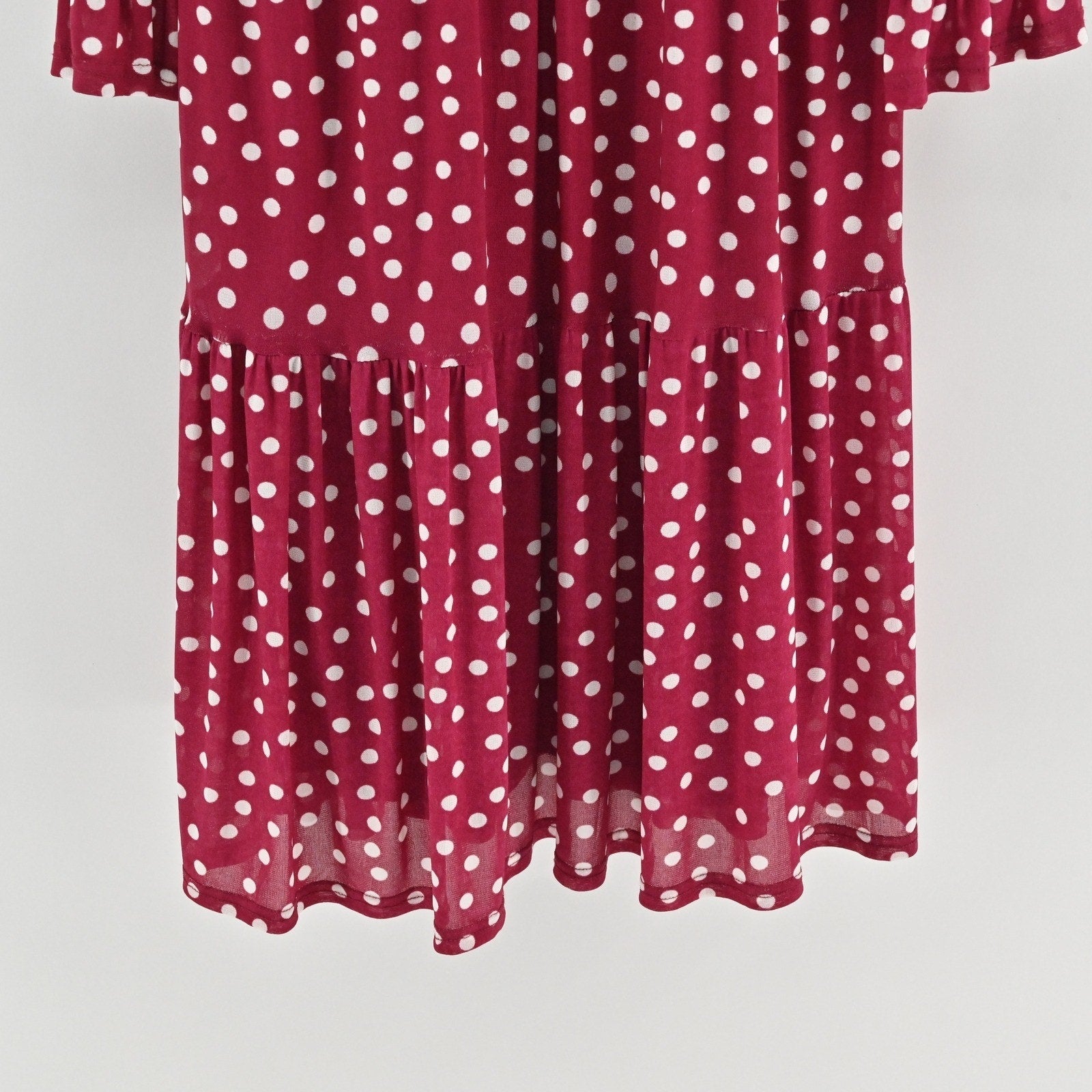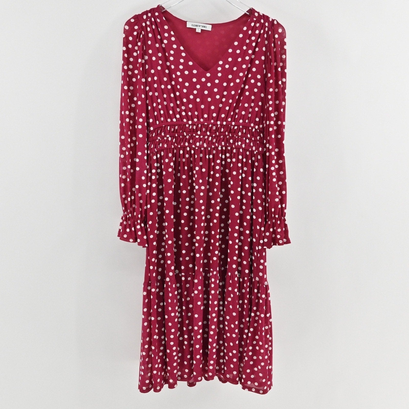 Elizabeth & James Polka Dot Midi Dress Size L Red White Tiered Retro Whimsical