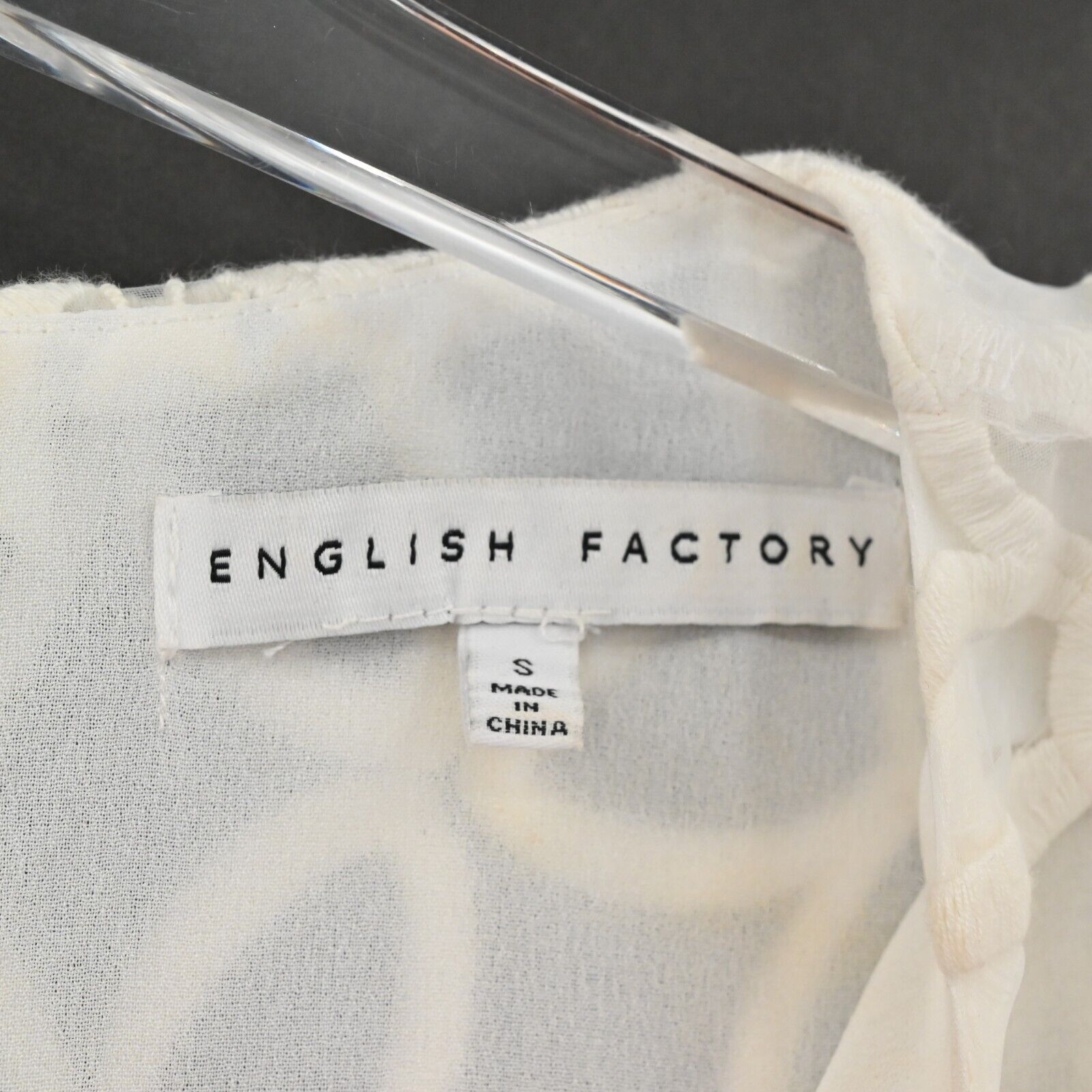 ENGLISH FACTORY Top Womens Size S Sheer Sleeve Flower Print Cropped Blouse White