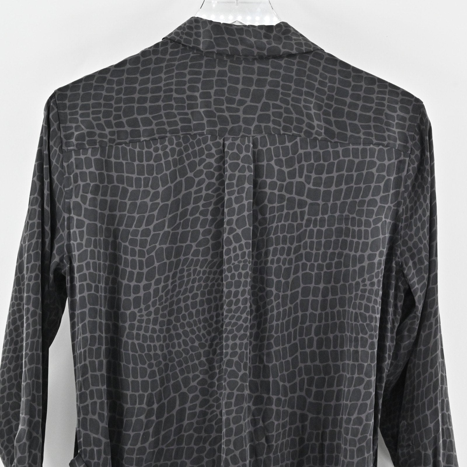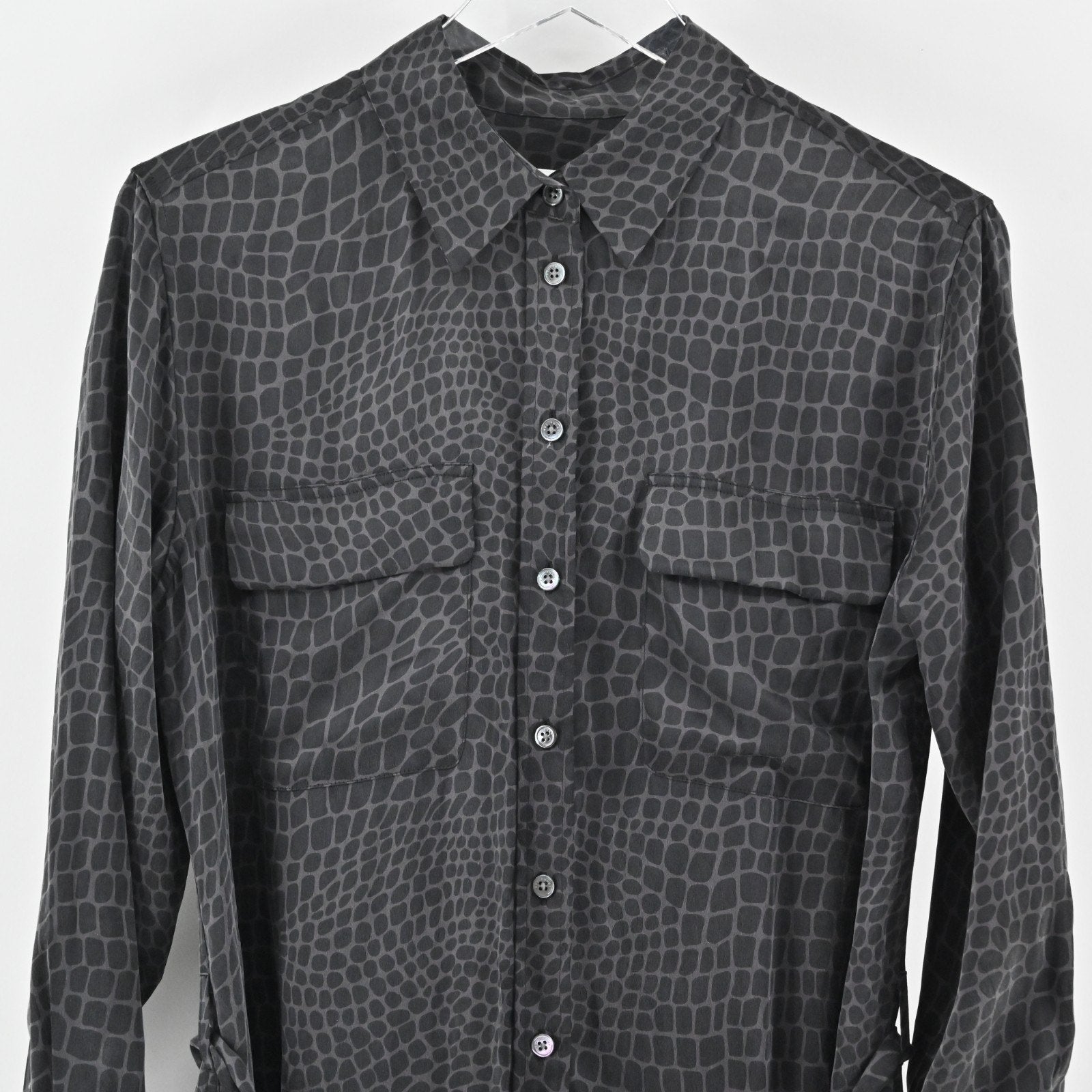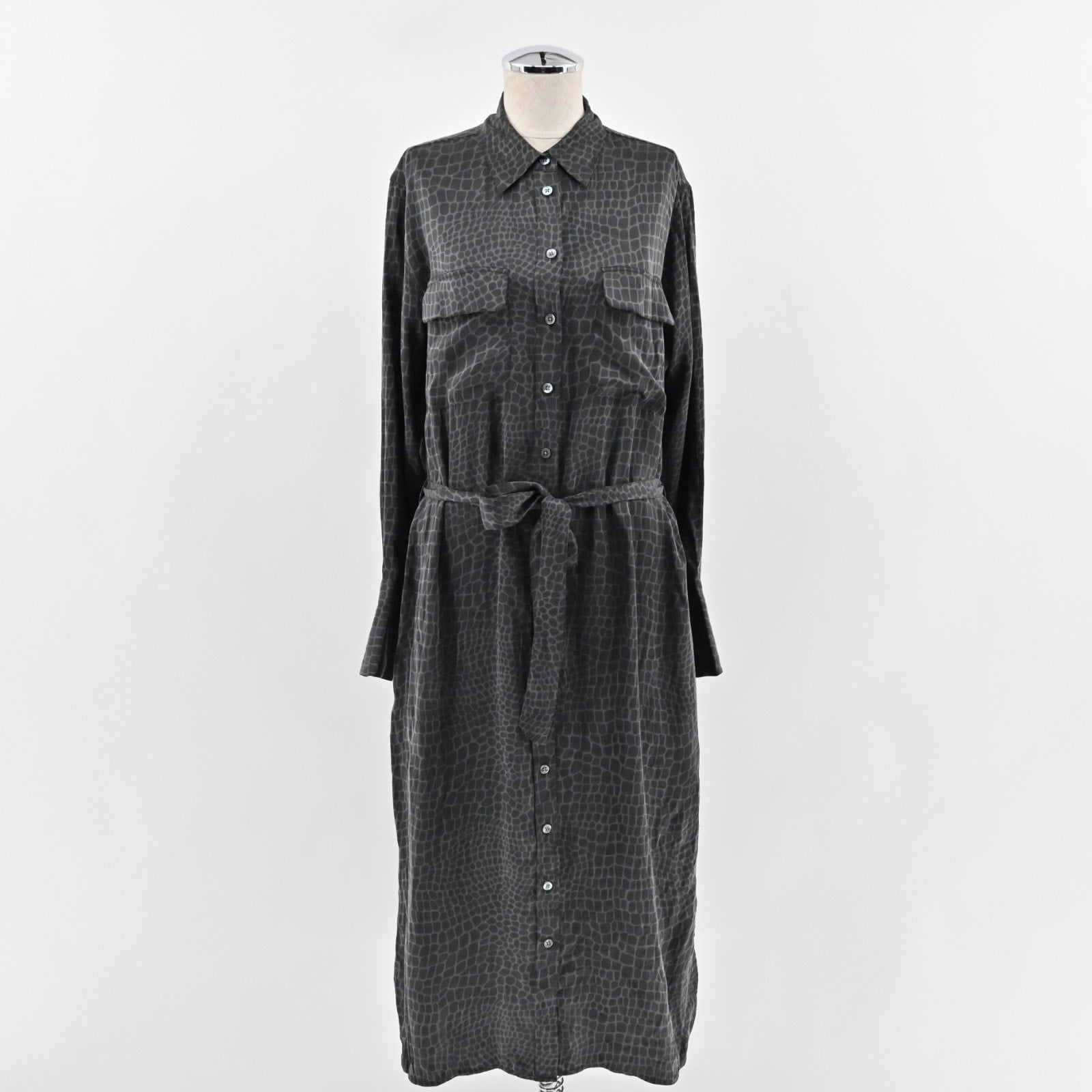 EQUIPMENT Silk Midi Dress Sz S Black Animal Print Button Front Belted Collared