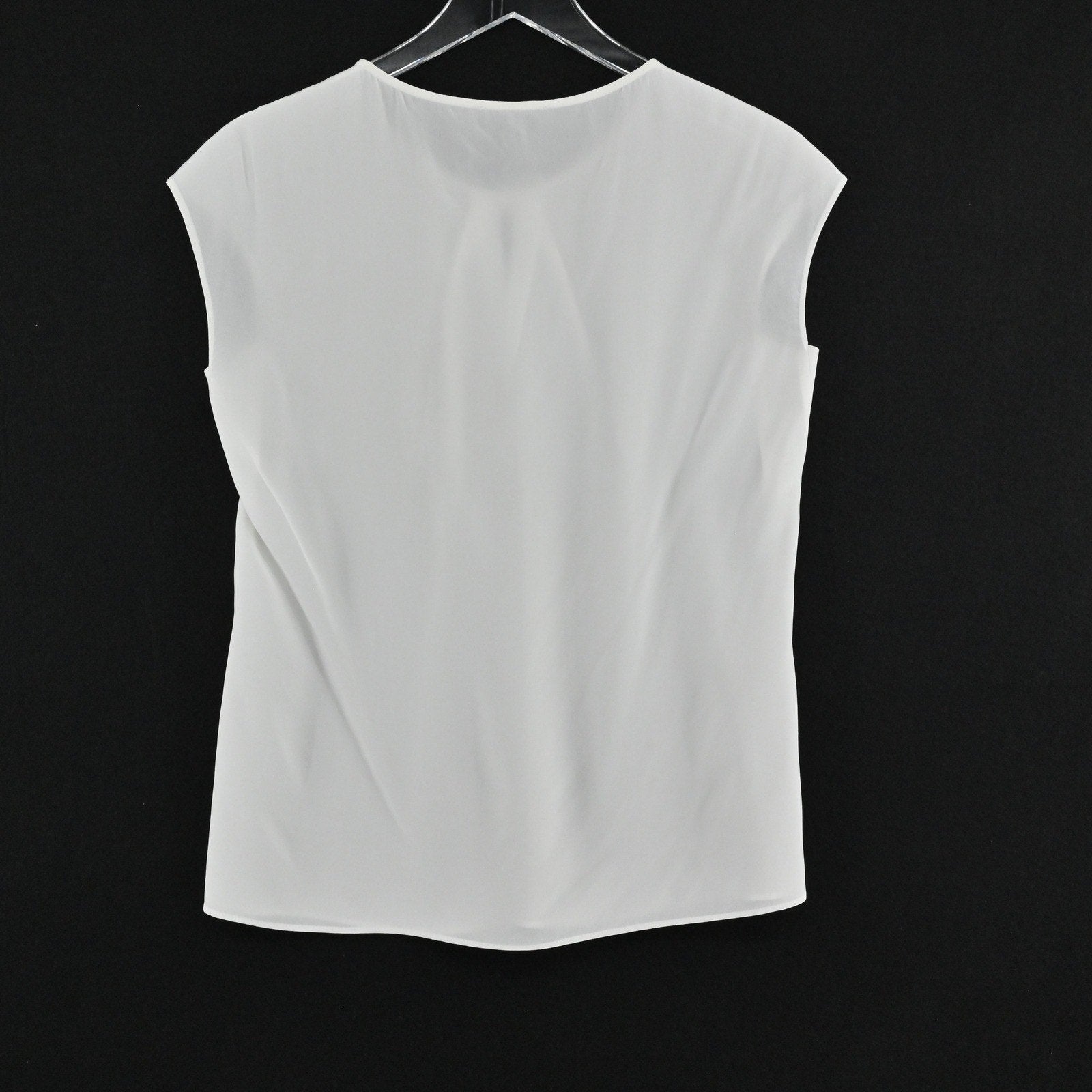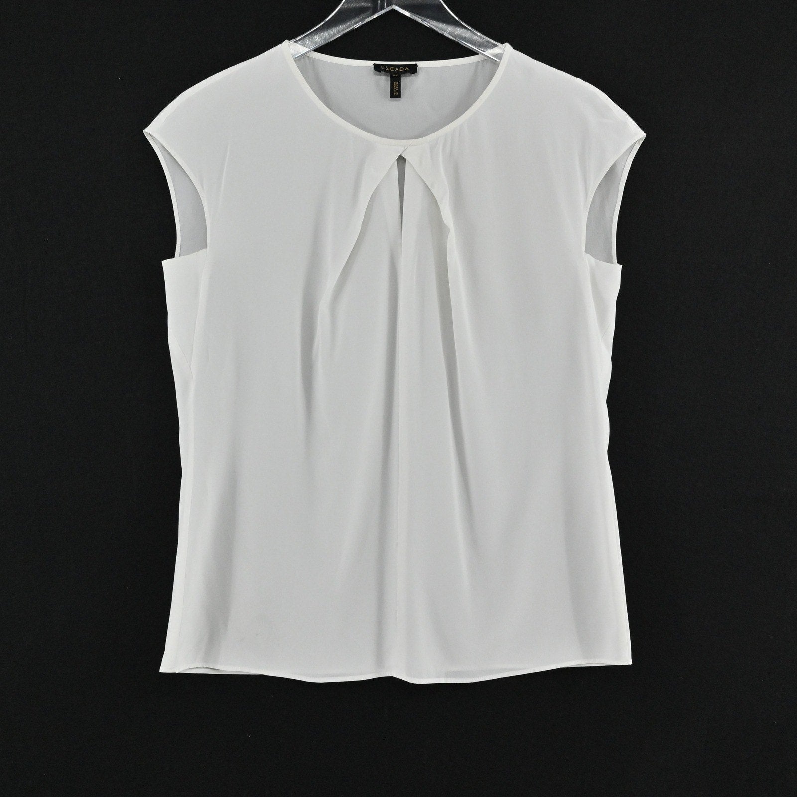 Escada Womens Pleated White Top Size 34 Quiet Luxury Sleeveless Blouse Elegant