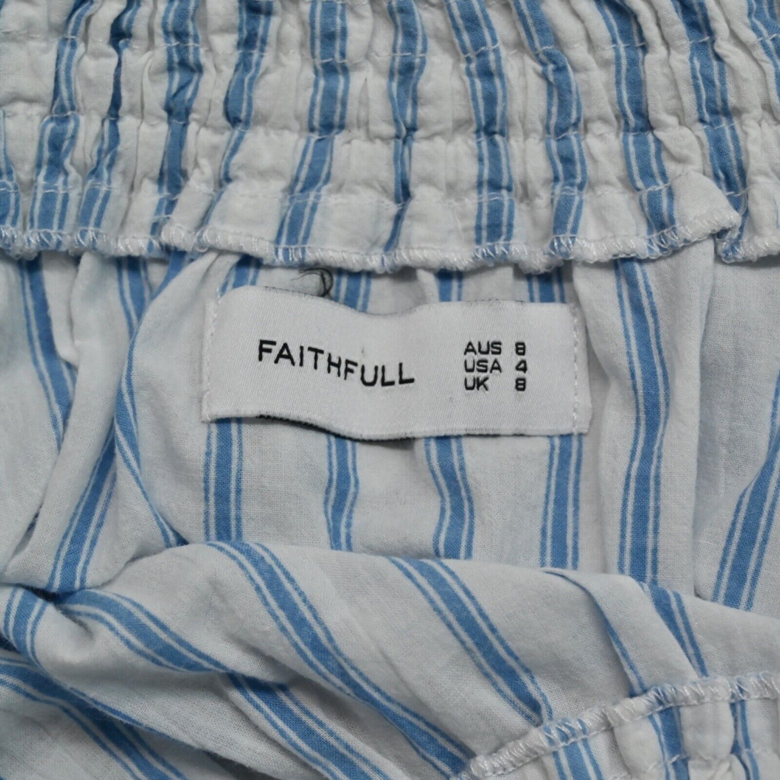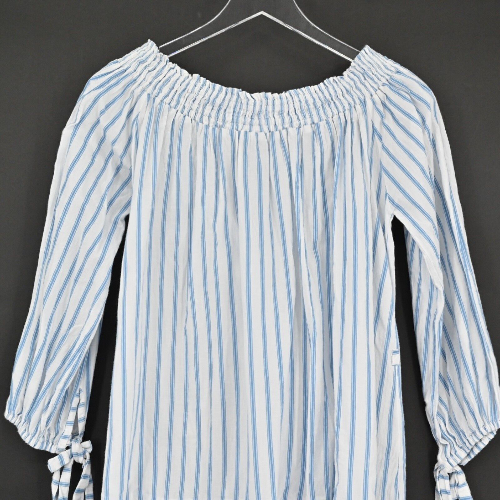 FAITHFULL THE BRAND Dress Womens Size 4 Milos Off The Shoulder Mini Blue Stripe