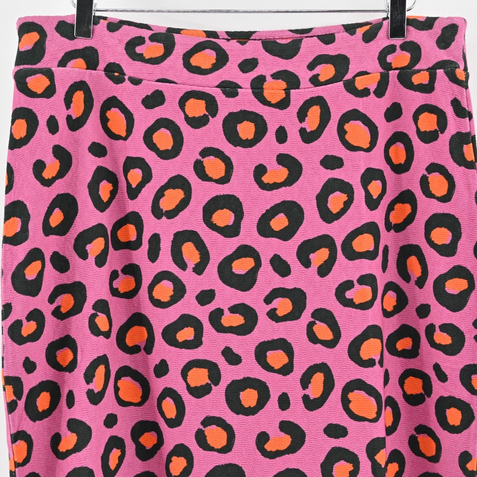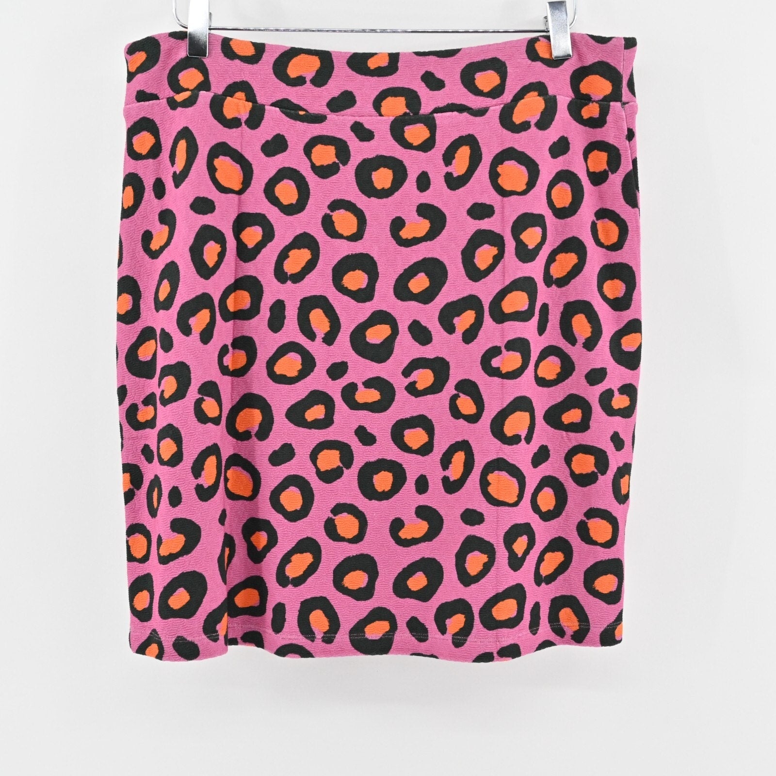 FARM RIO Animal Print Skirt Size L Anthropologie Halley Knit Mini Pink Stretch