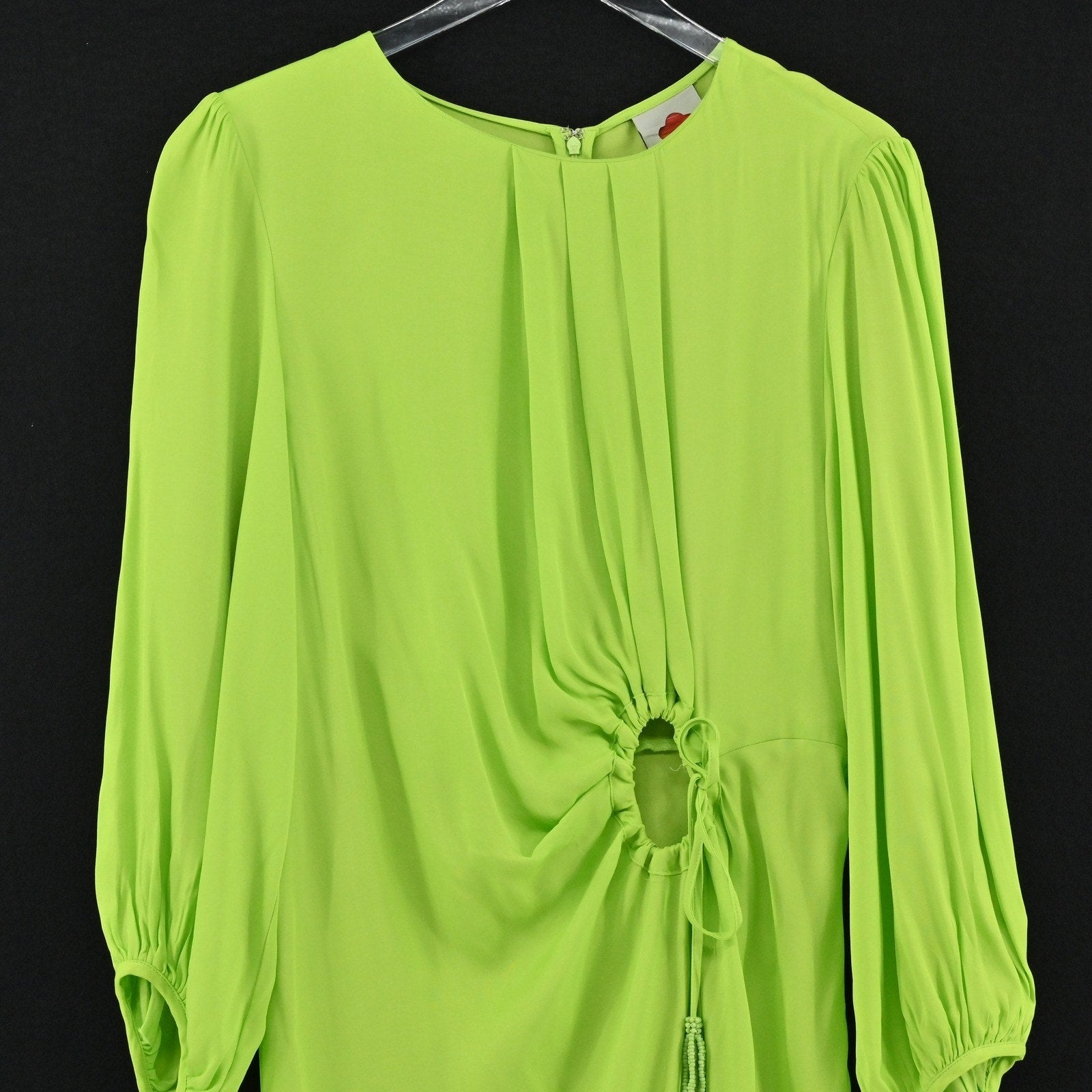 FARM Rio Lime Green Midi Dress Size 1X Cut Out Detail Long Sleeve Dopamine Boho