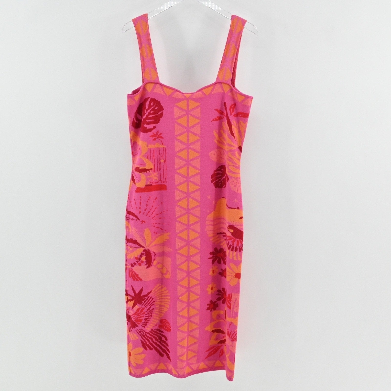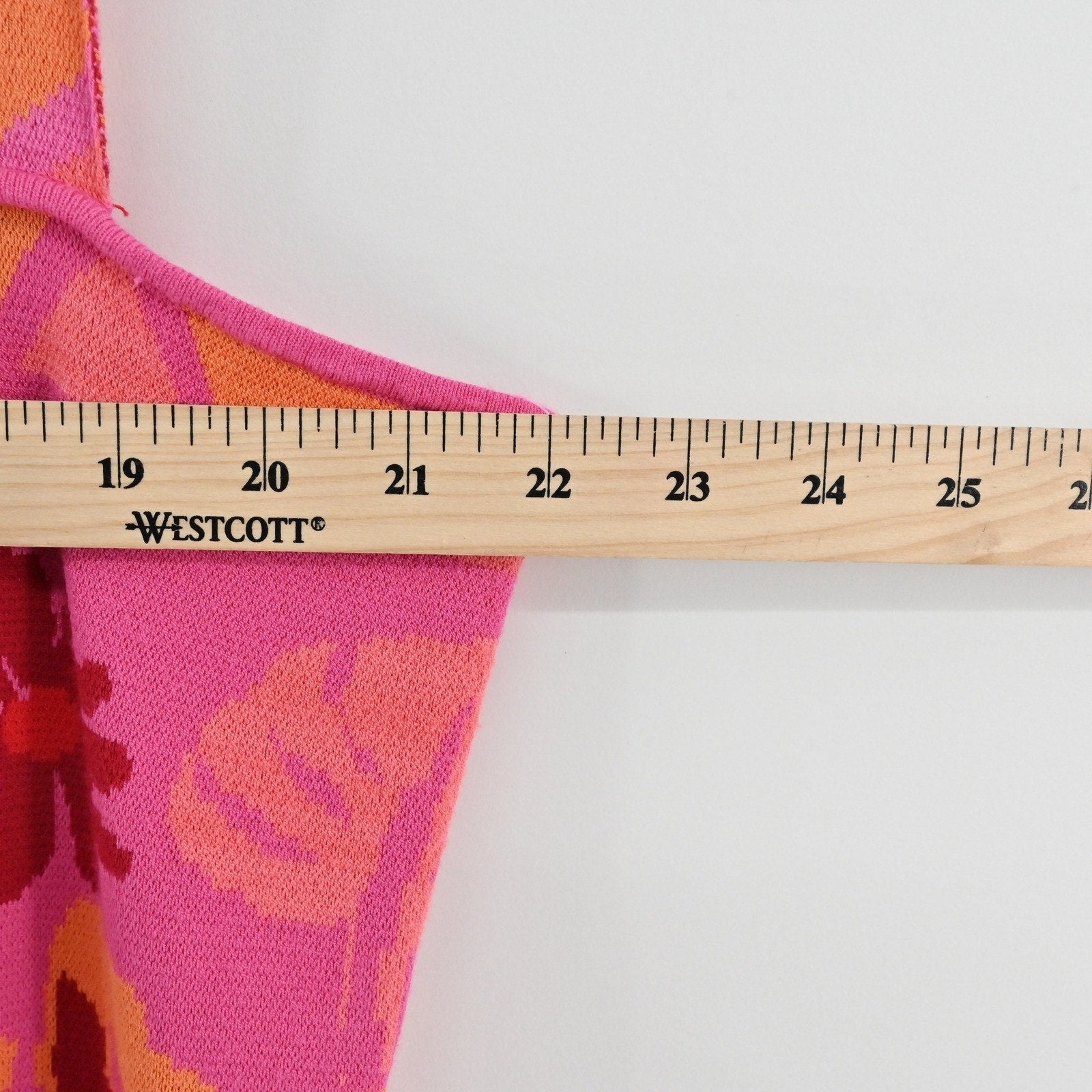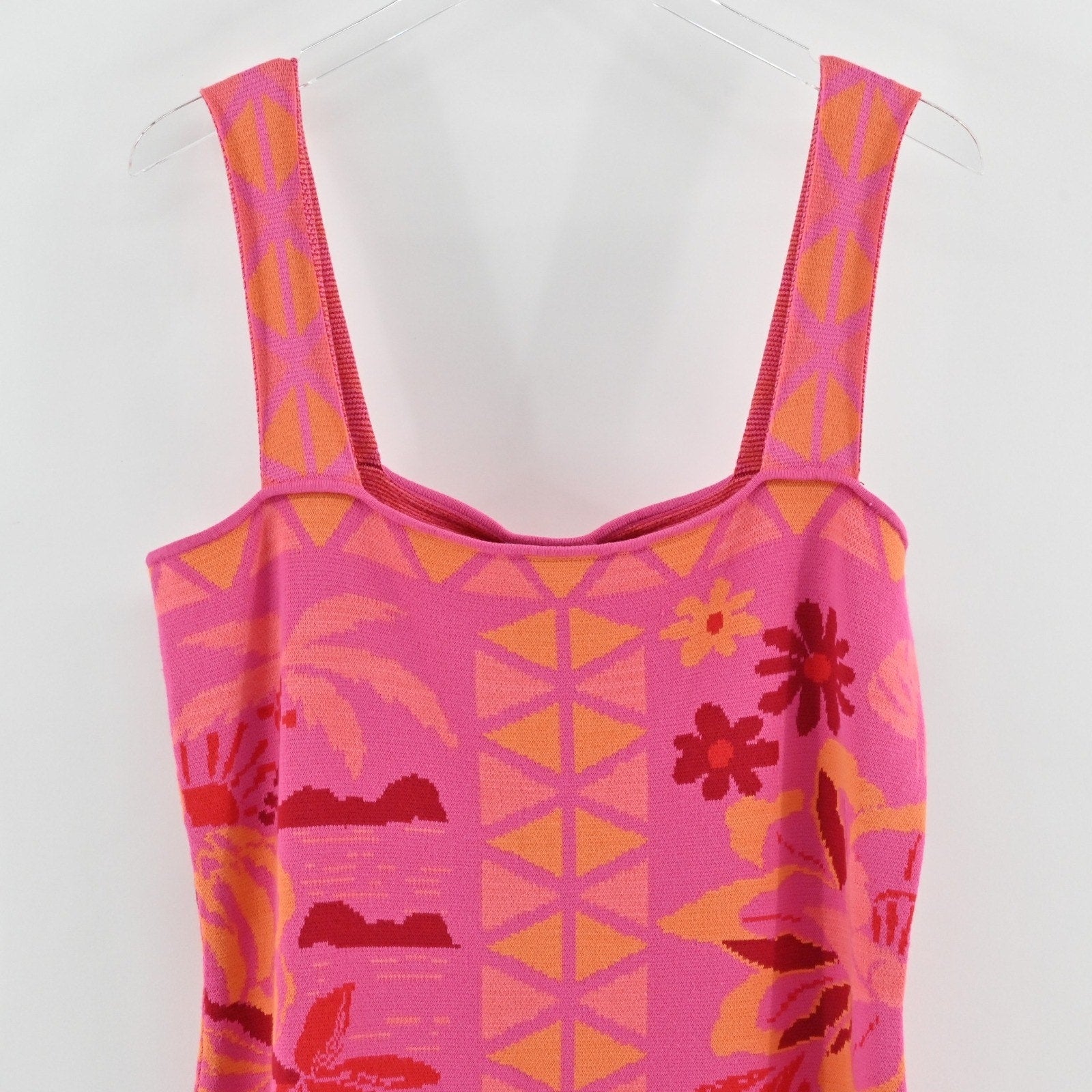 Farm Rio Square Neck Sweater Dress Size XL Sleeveless Midi Pink Tropical Floral