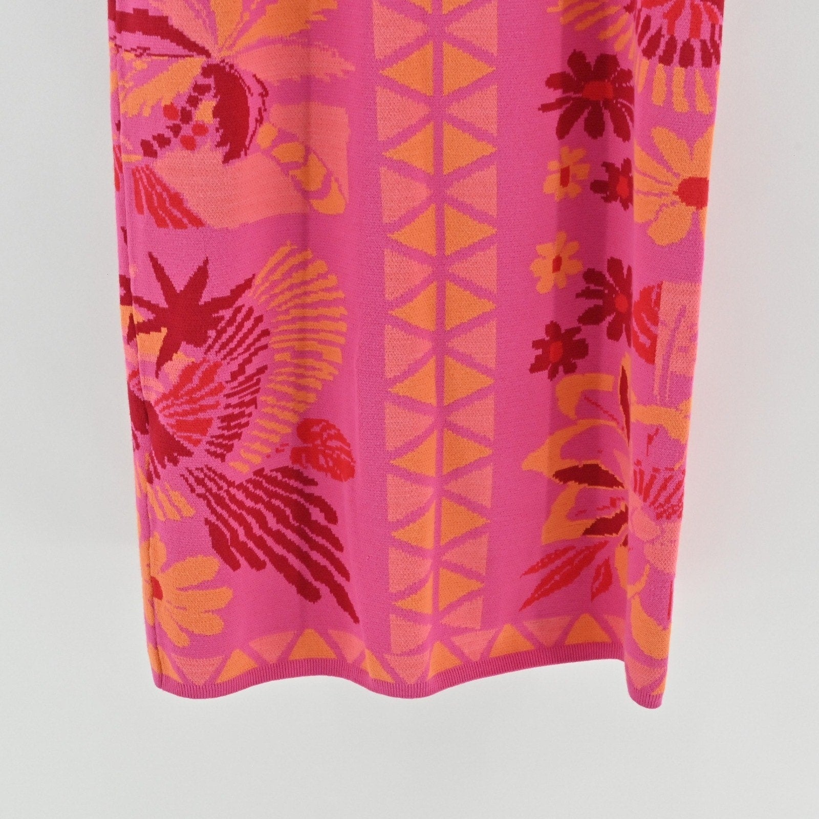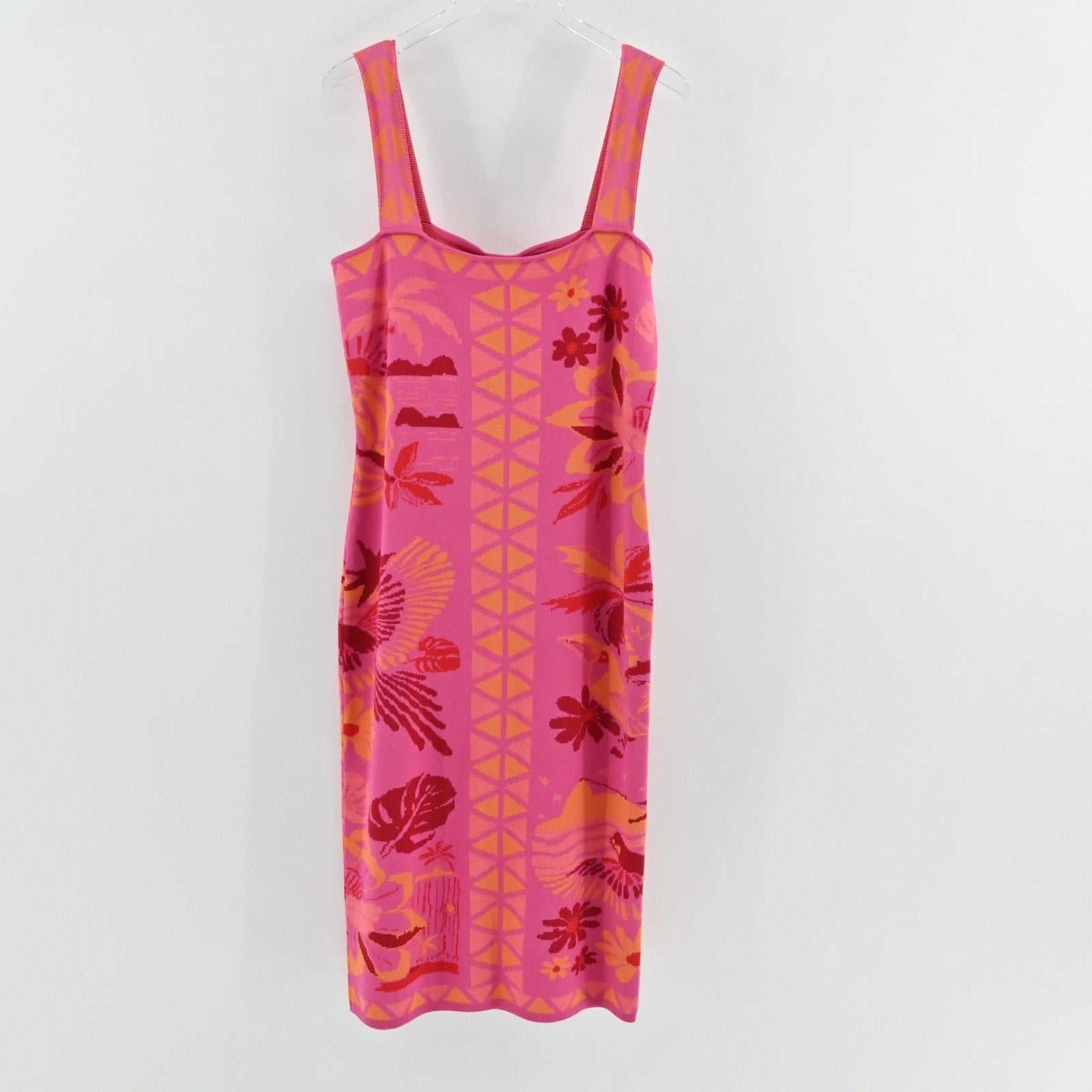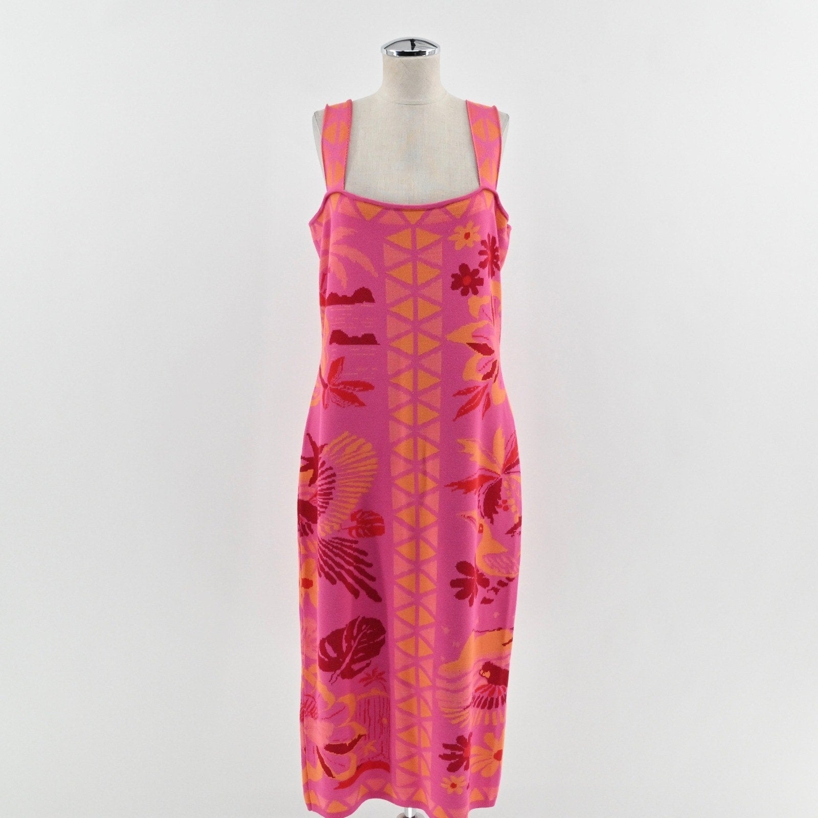 Farm Rio Square Neck Sweater Dress Size XL Sleeveless Midi Pink Tropical Floral