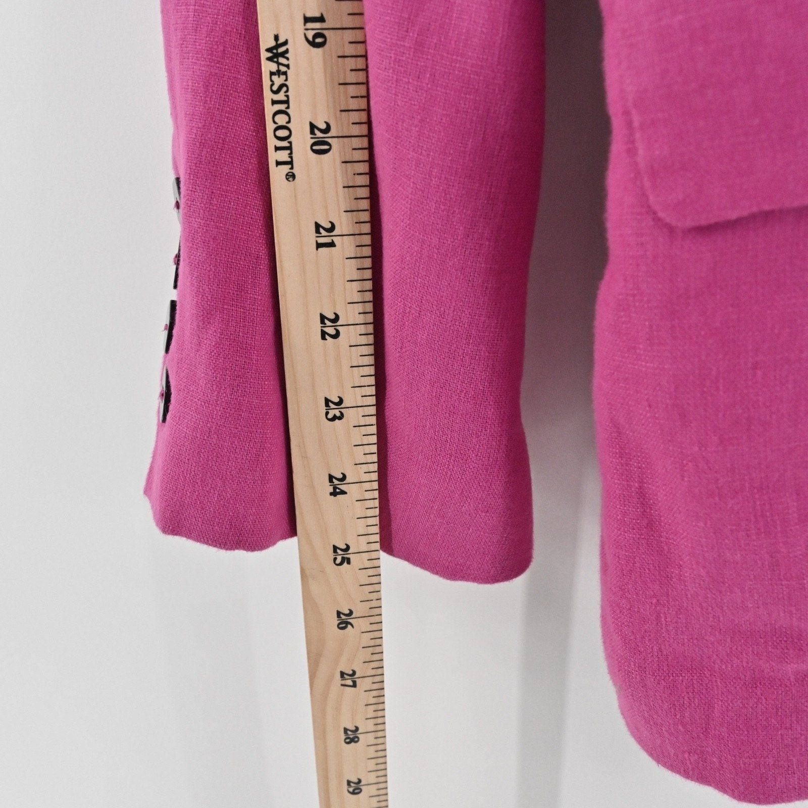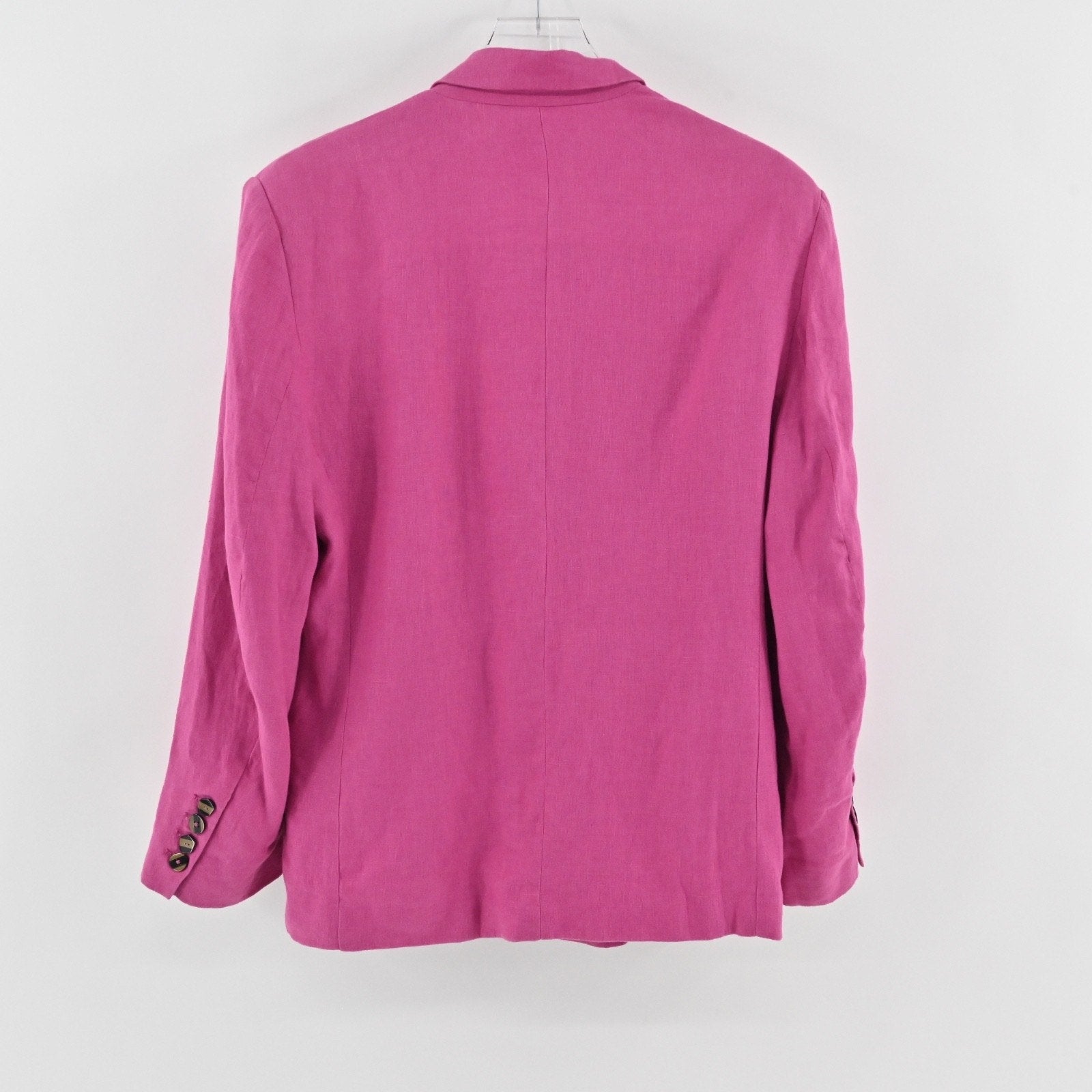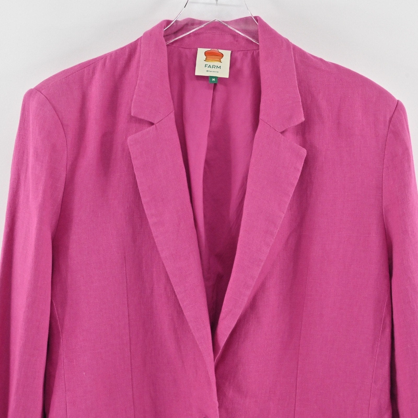 FARM RIO Womens Oversized Linen Blazer Size M Pink Single Breasted Shoulder Pads