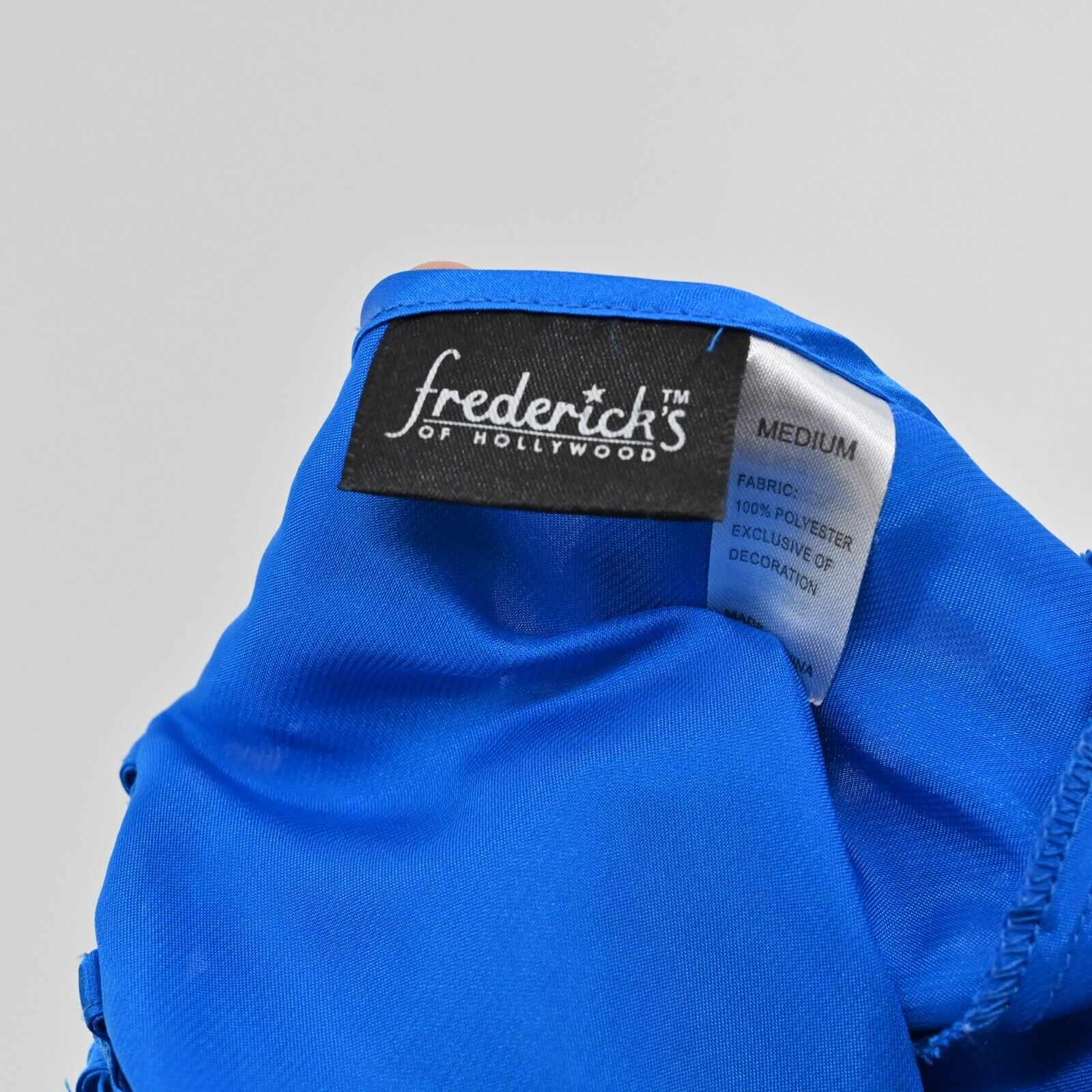 FREDERICK'S OF HOLLYWOOD Women's Size Medium Blue Black Lace Satin Sleeveless Slip Dress Sleepwear Sleeping Comfort Lightweight Sexy Chic Classic Vacation Travel Home Intimates