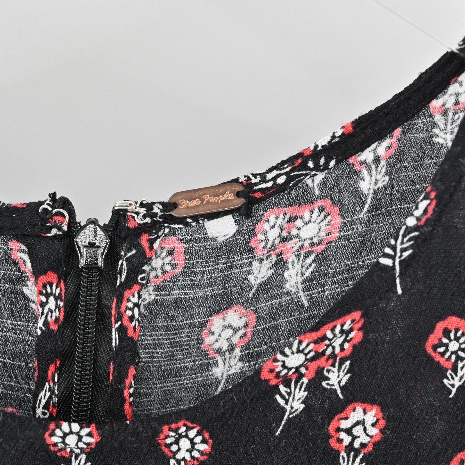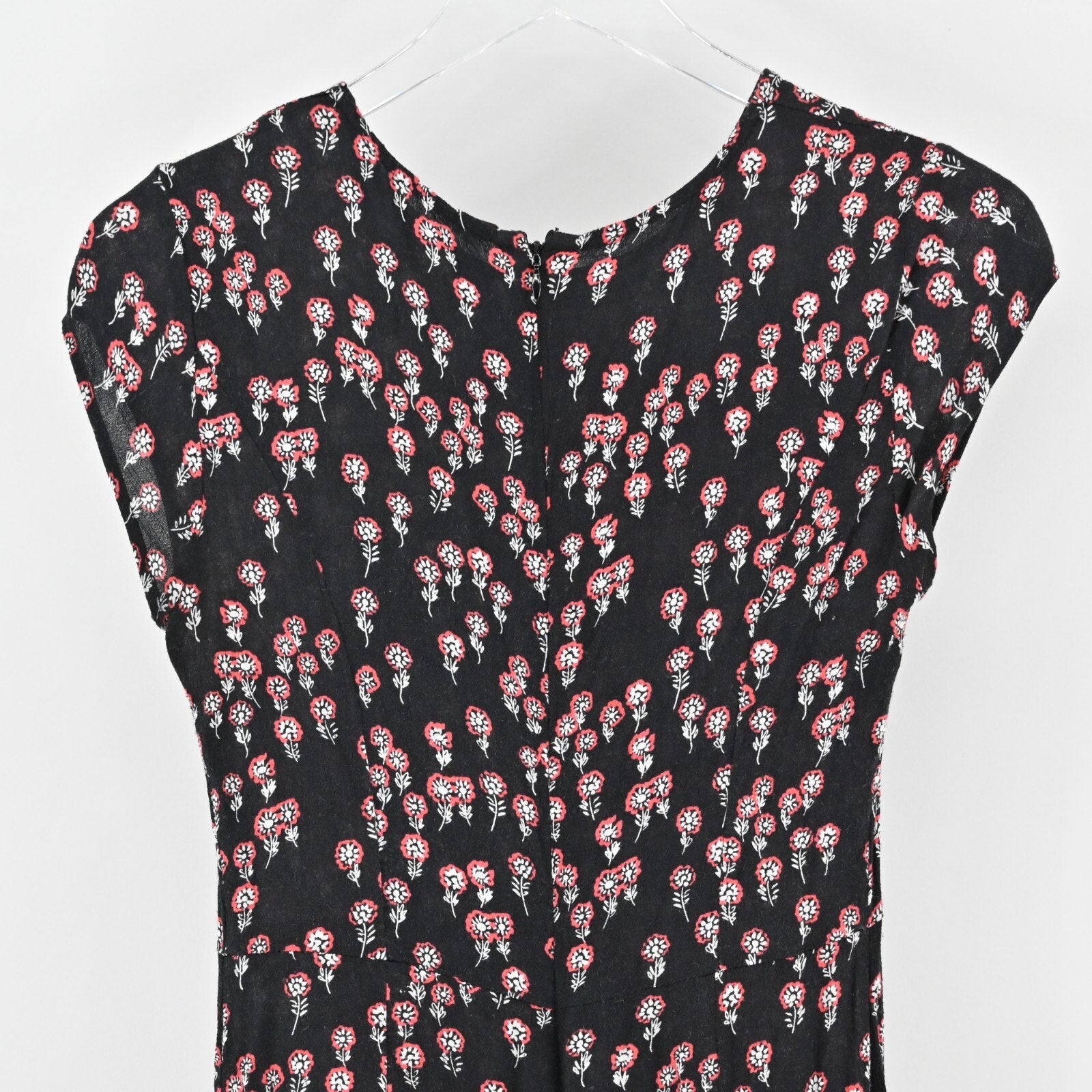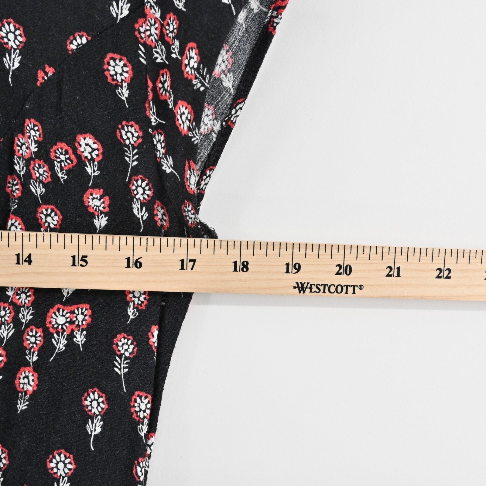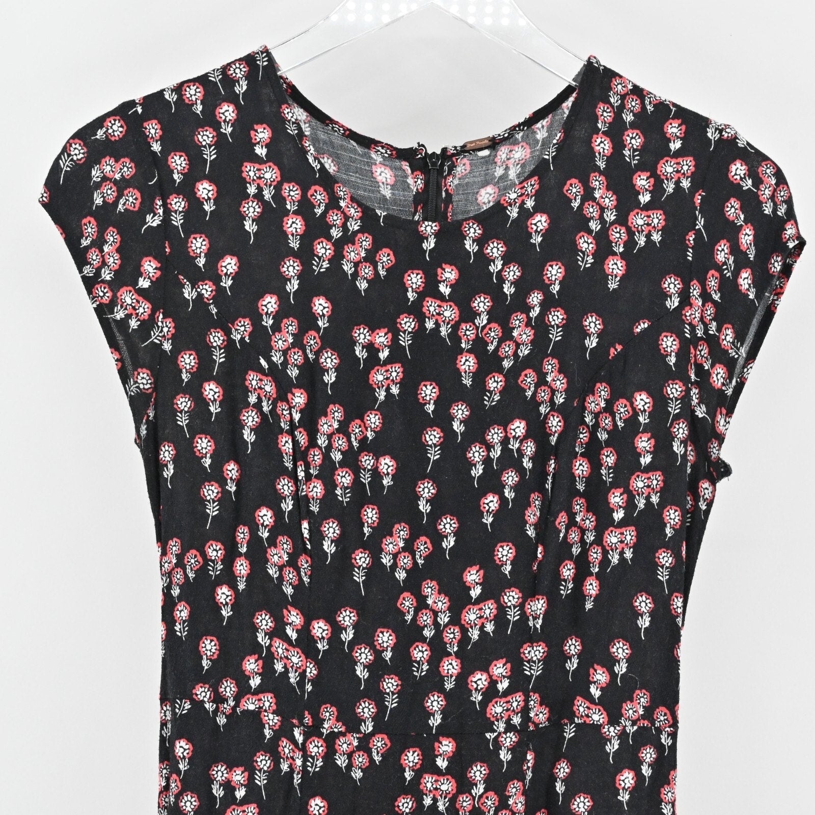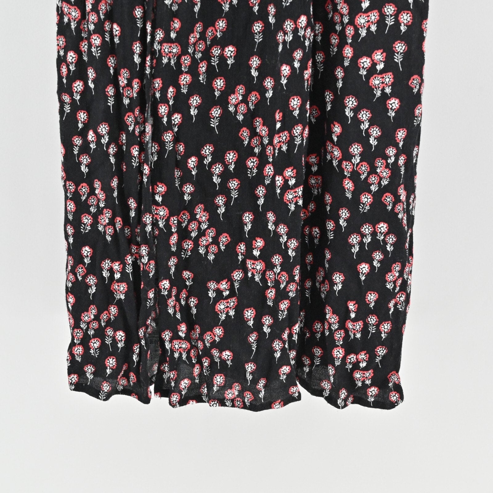 FREE PEOPLE Corrie Dress Size L Floral Printed Midi Side Slit Black Boho ALine