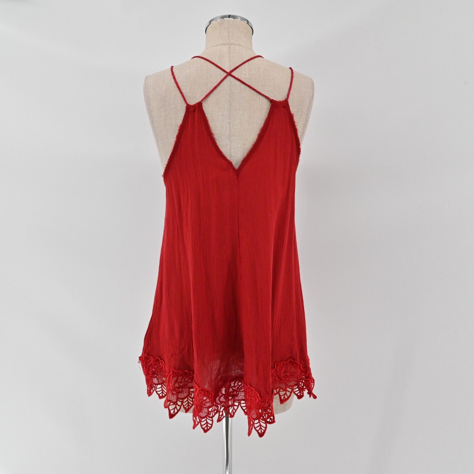 FREE PEOPLE Dress Women's Size XS Wicked Spell Brick Red Strappy Floral Lace Boho BohoChic Bohemian Casual Vacation Spring Summer Flirty Feminine Valentine's Day College Lightweight Coastal Travel Festival Concert Event Gameday