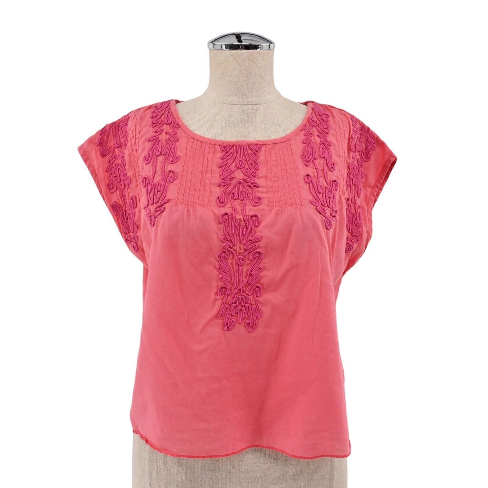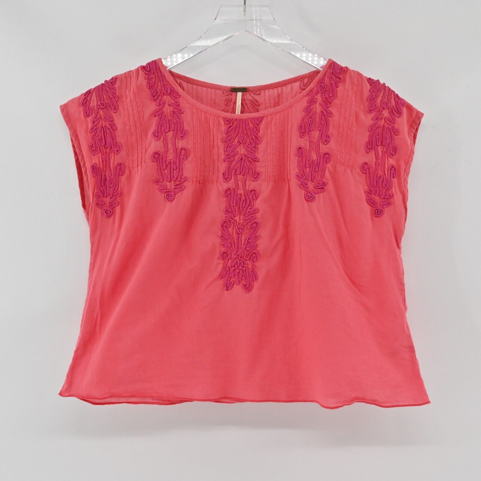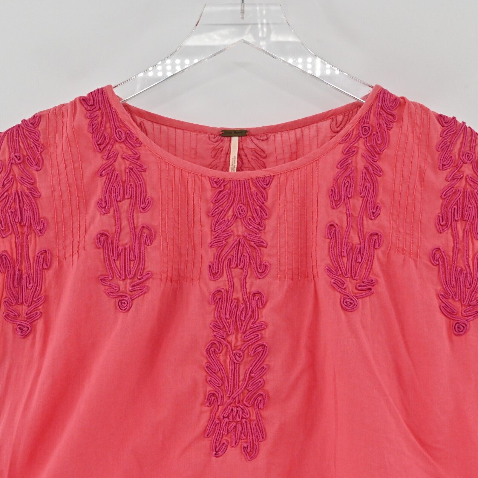 FREE PEOPLE Top Womens Size S Pink Lightweight Embroidered Detail Boho Blouse