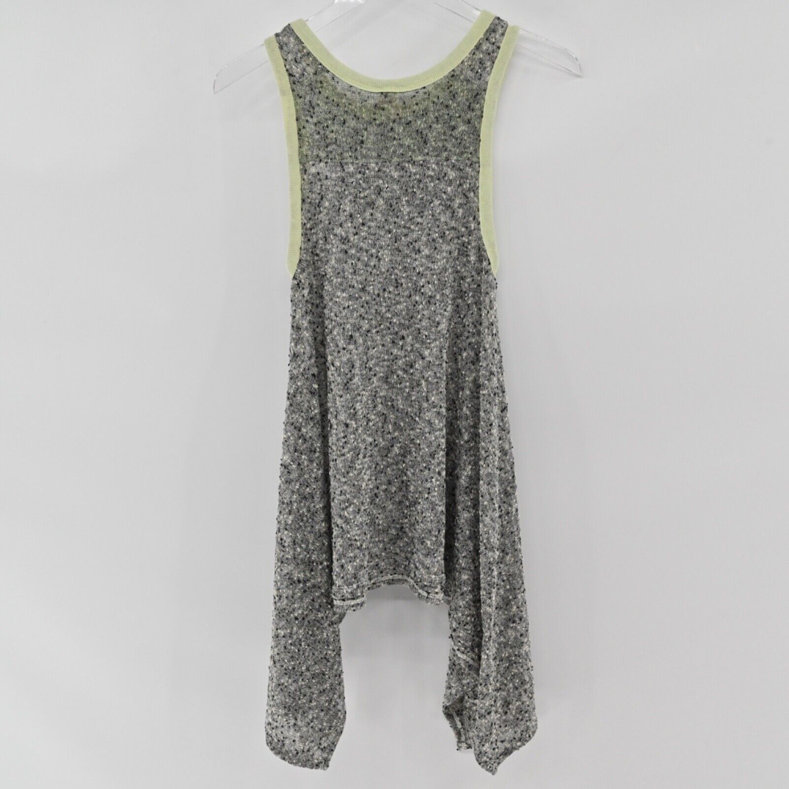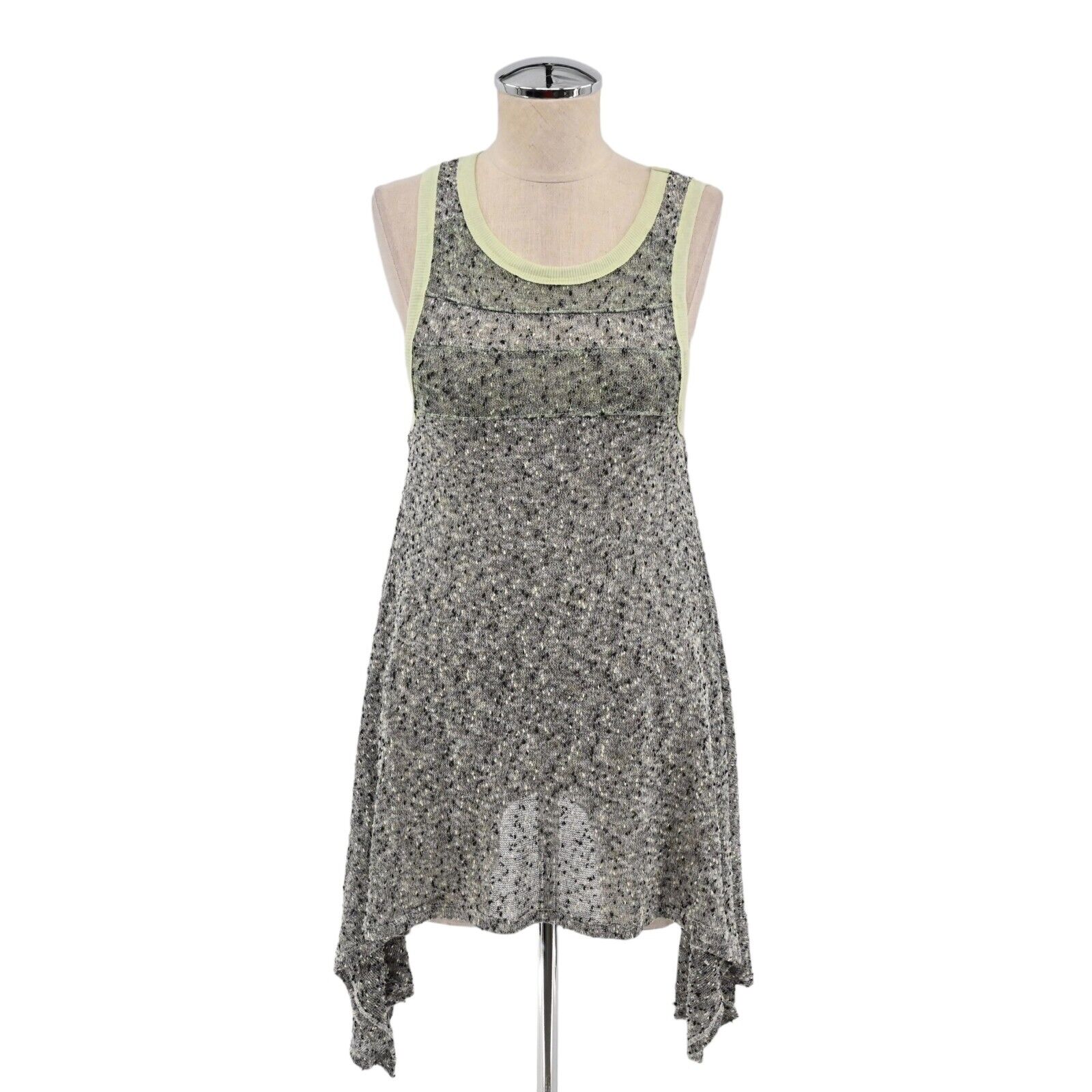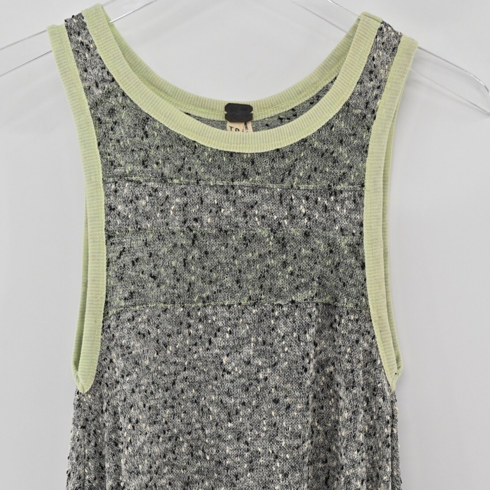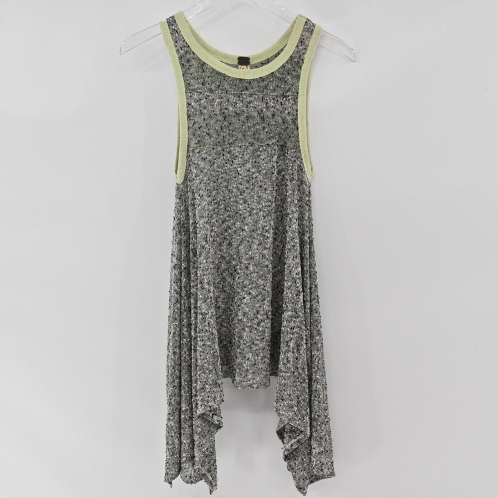 WE THE FREE BY FREE PEOPLE Top Women's Size XS Gray Green Ringer Knit Bumble Bee Knees Scoop Neck Wide Strap Asymmetric Tunic Tank Bohemian Boho Beach Vacation