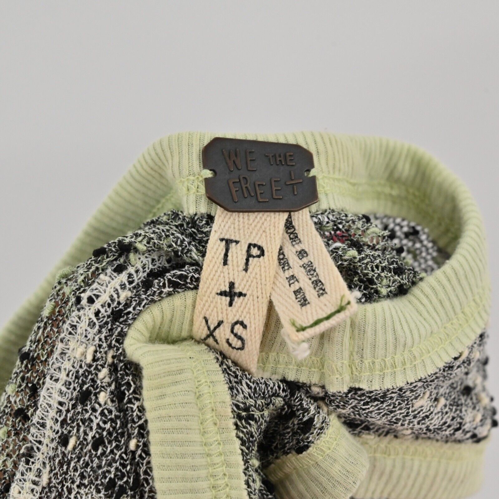 FREE PEOPLE Top Womens Sz XS Gray Green Bumble Bee Knees Tunic Tank WE THE FREE