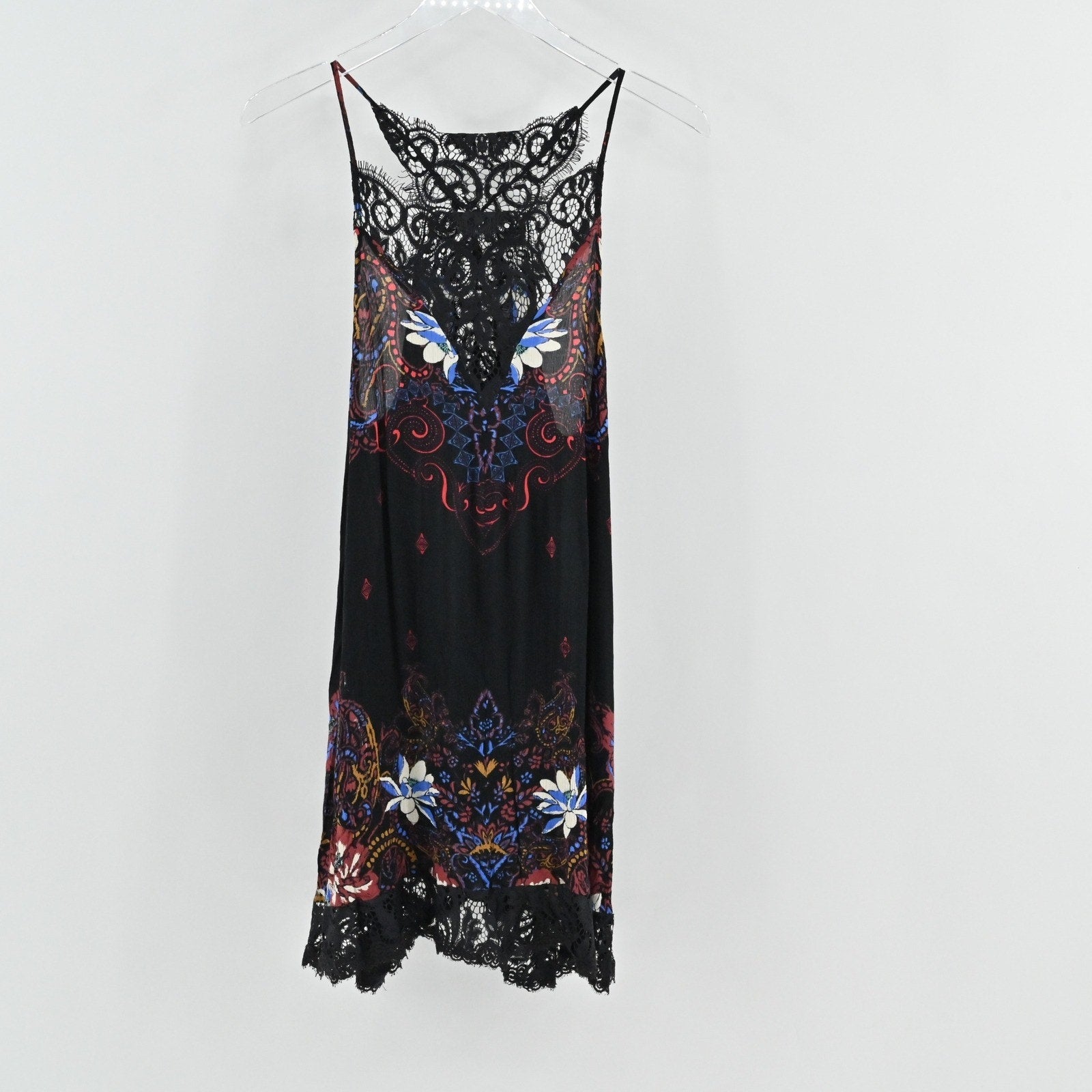 Free People Whos Sorry Now Slip Dress S Lace Trim Floral Print Mini Intimately