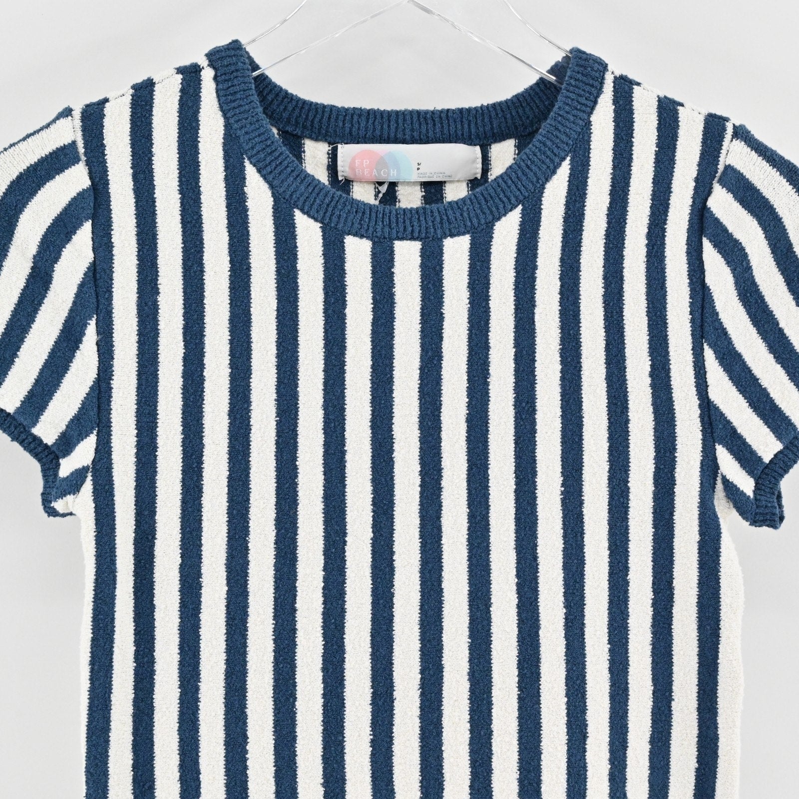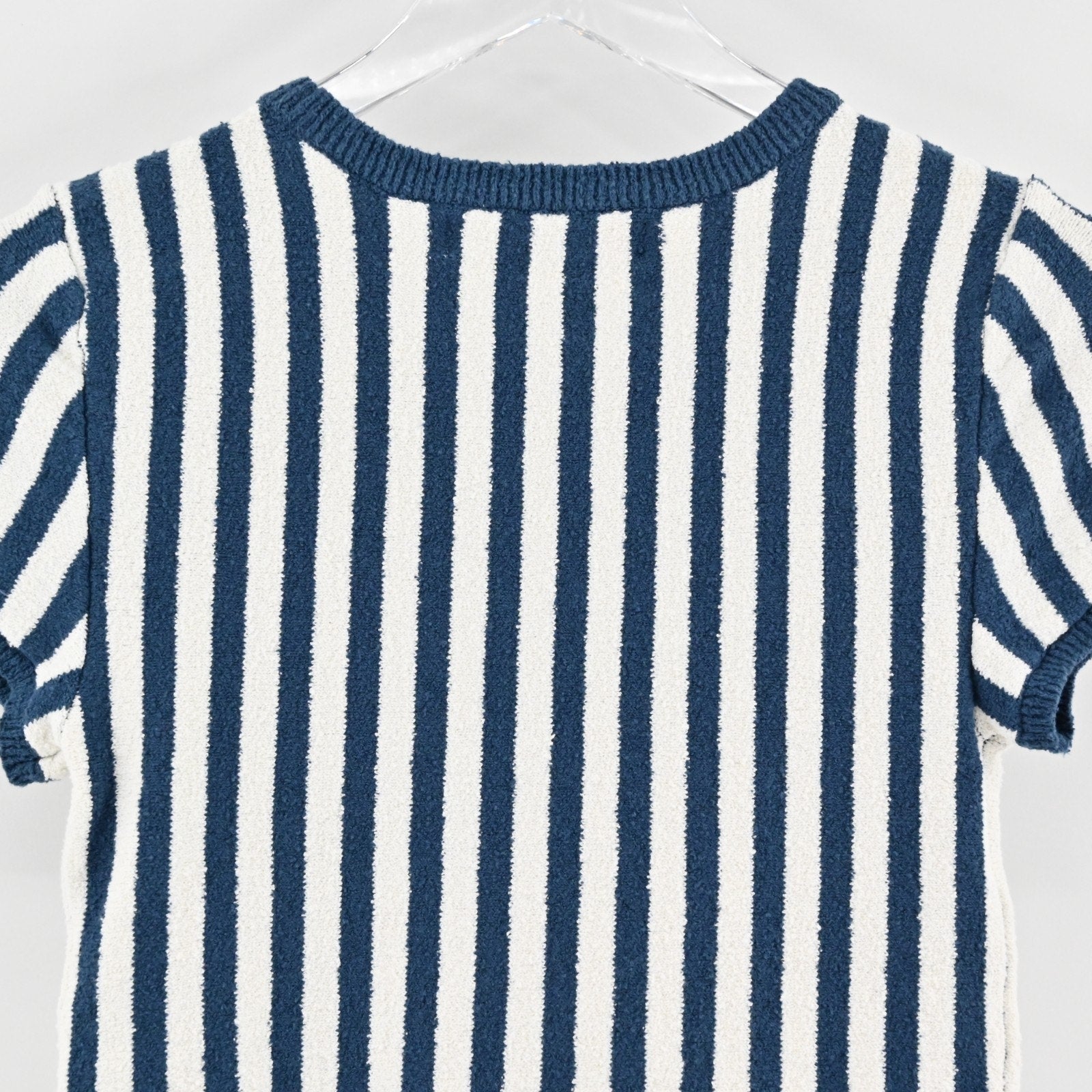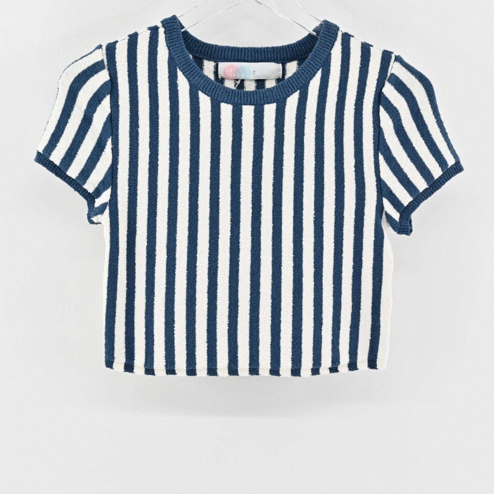 Style Profile: Lightweight Sweater Terry Knit Short Sleeve Blue Stripe Coastal Beach Boat Pool Vacation Travel Resort Casual Chic Comfort Boho BohoChic Bohemian Festival Outdoor NWT Crop Cropped