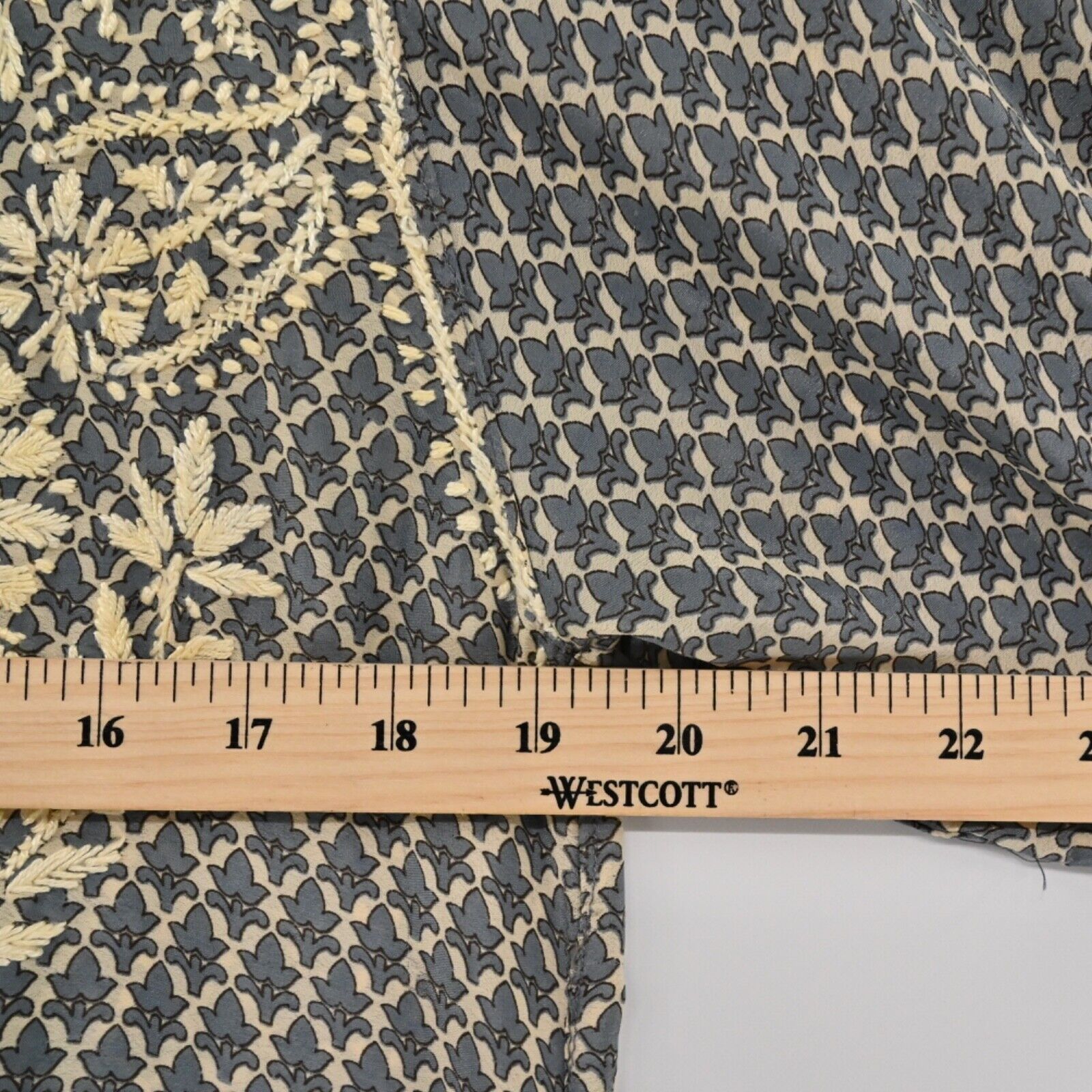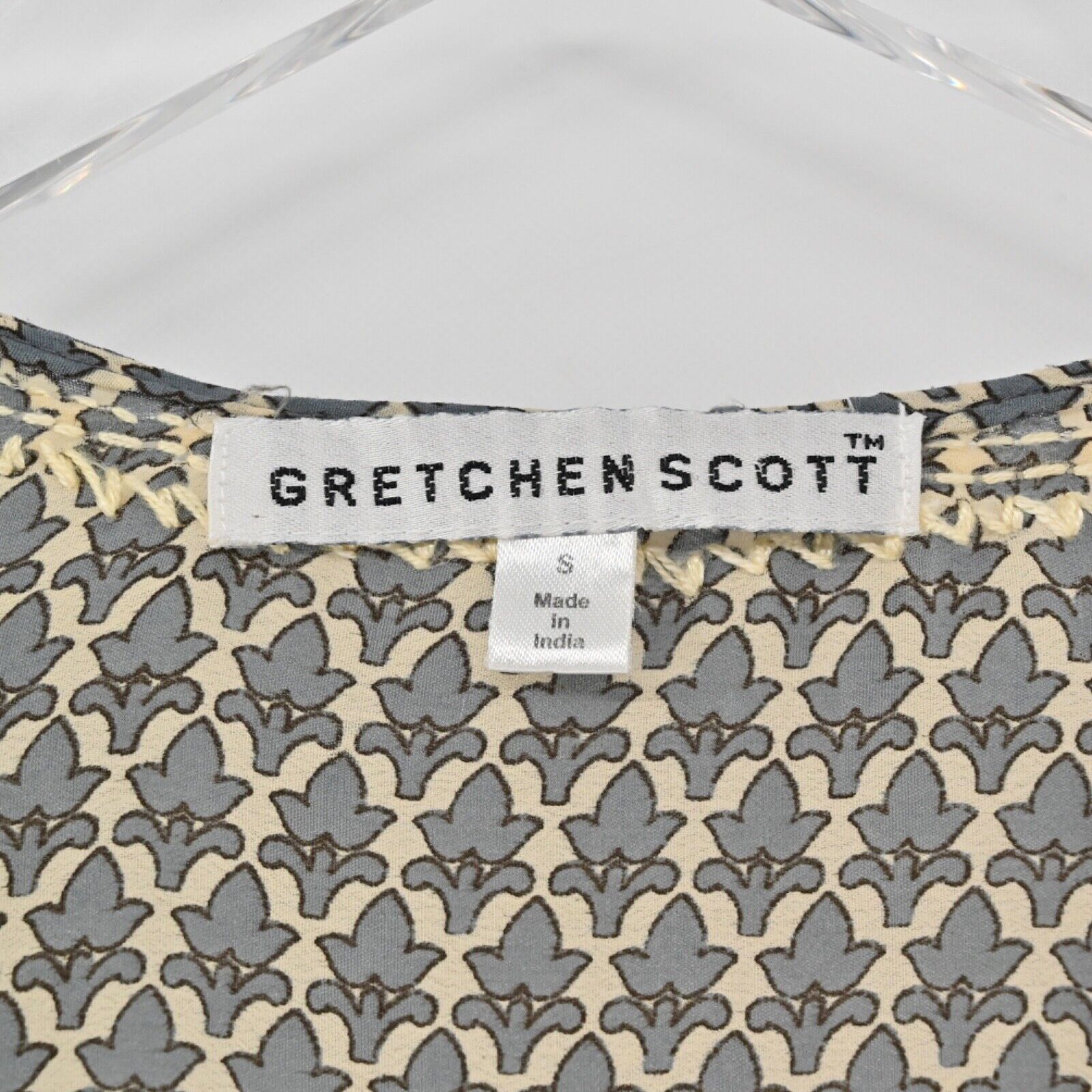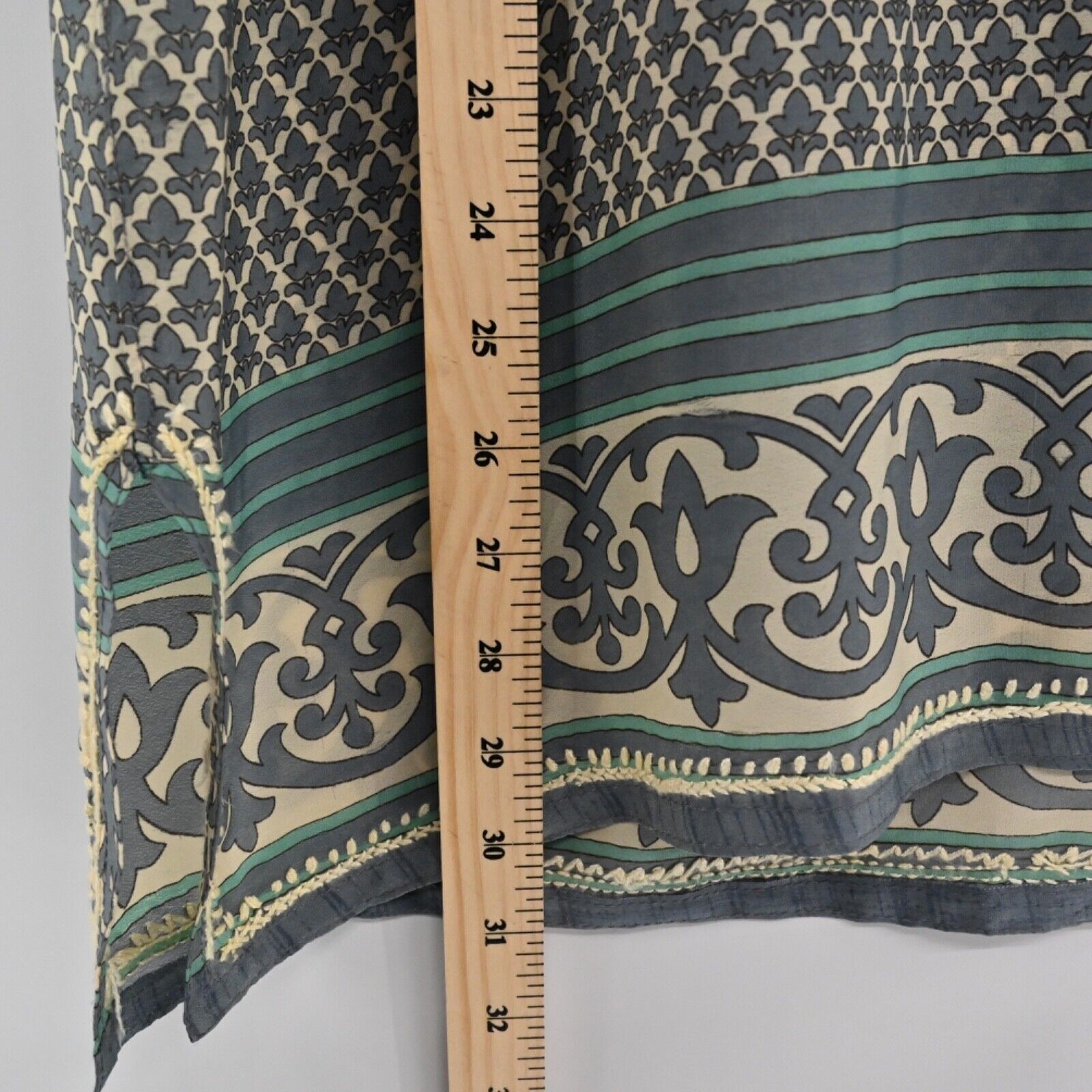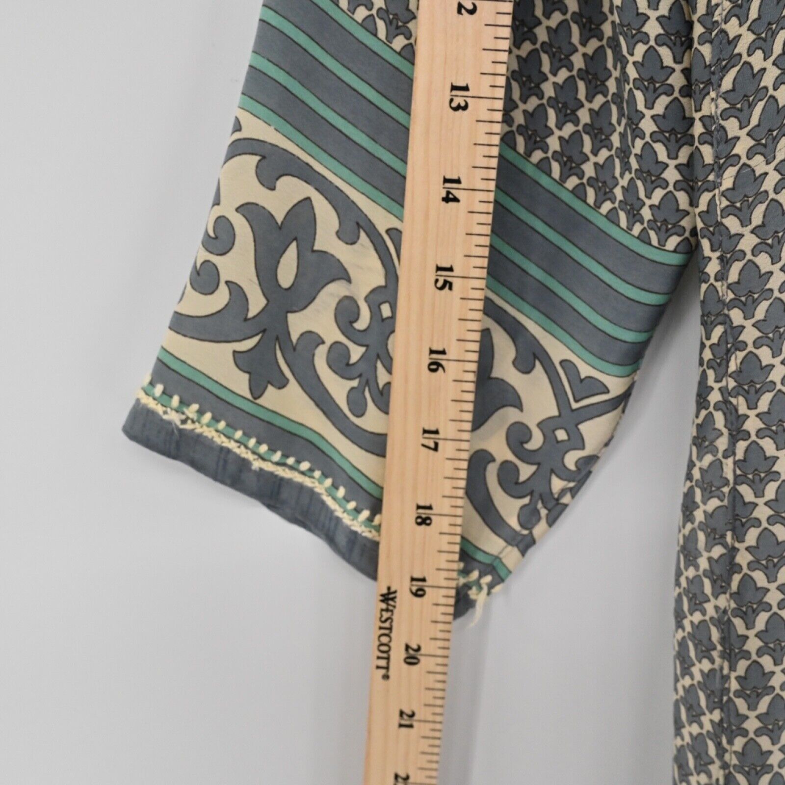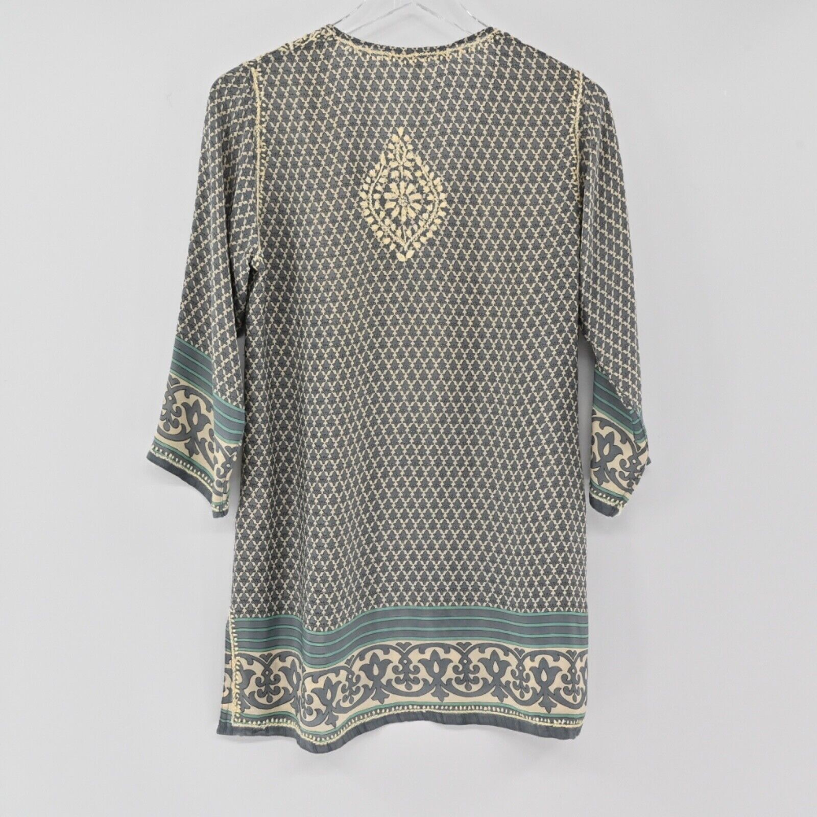GRETCHEN SCOTT Tunic Top Womens Sz S Blue Silk Embroidered Boho Print 3/4 Sleeve