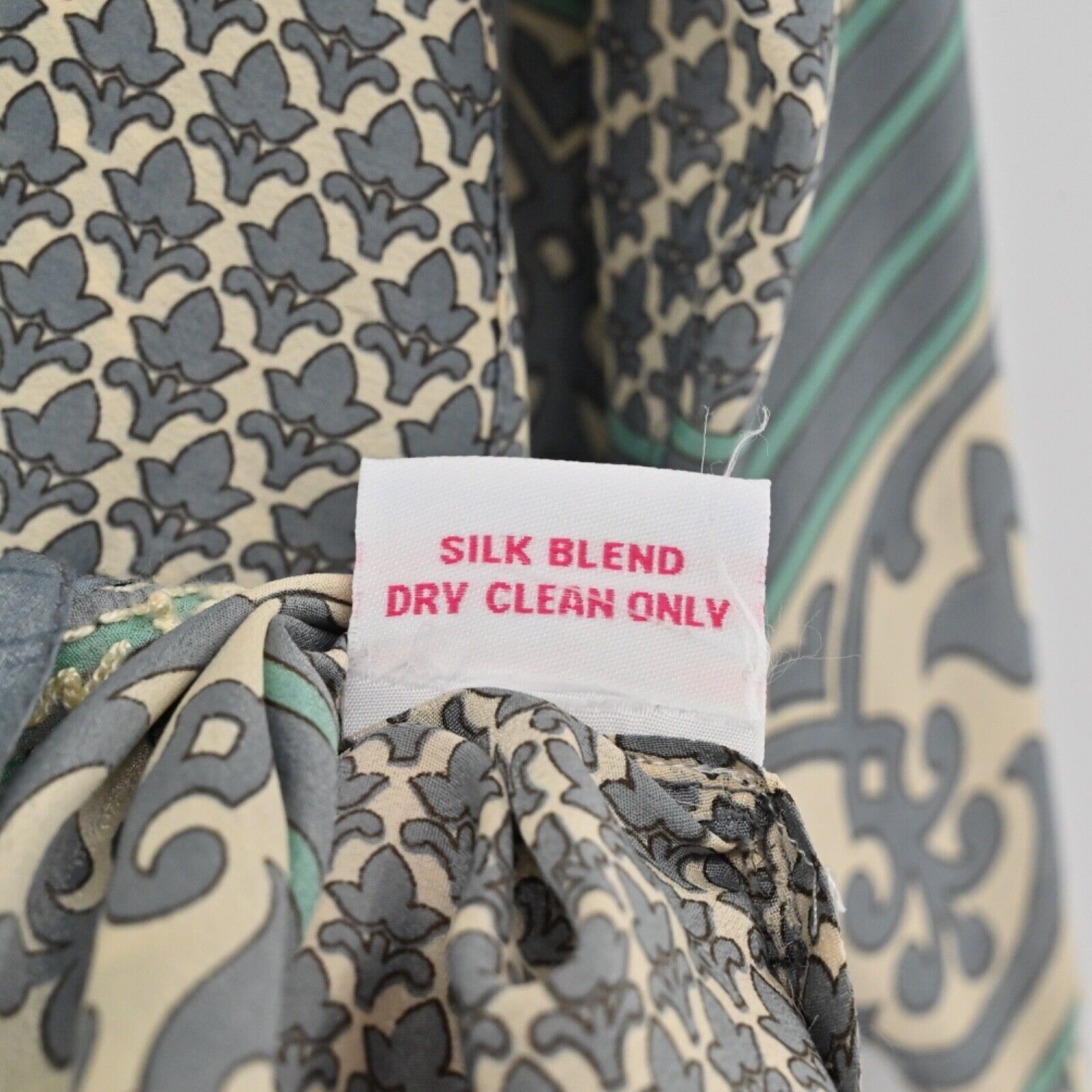GRETCHEN SCOTT Top Women's Size Small Cream Blue Embroidered Boho Print Silk Blend Split V-neck 3/4 Sleeve Side Slits Tunic Pullover Bohemian Coastal Grandmother Preppy Beach Vacation