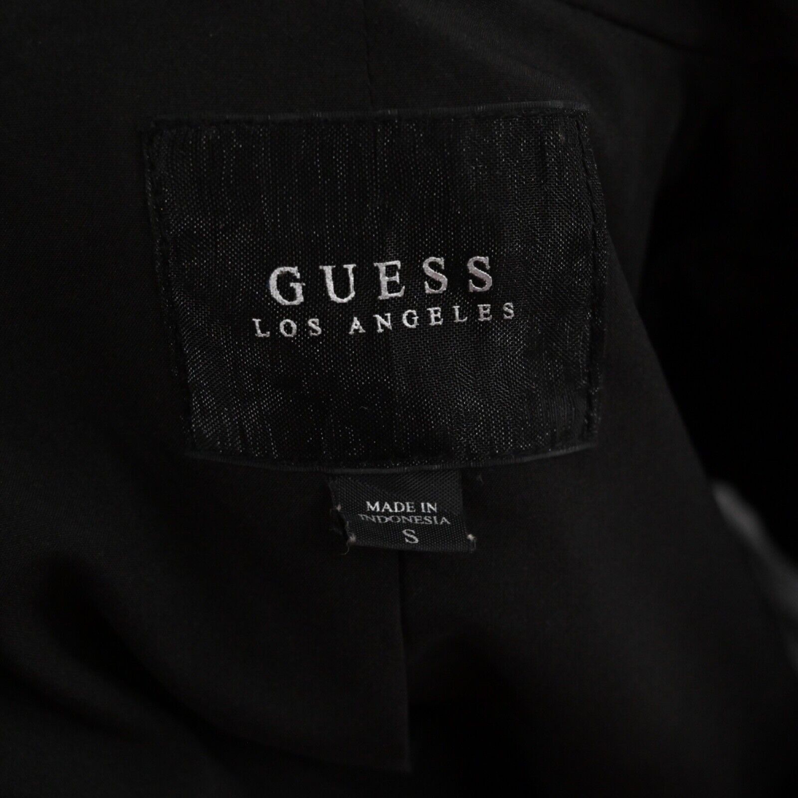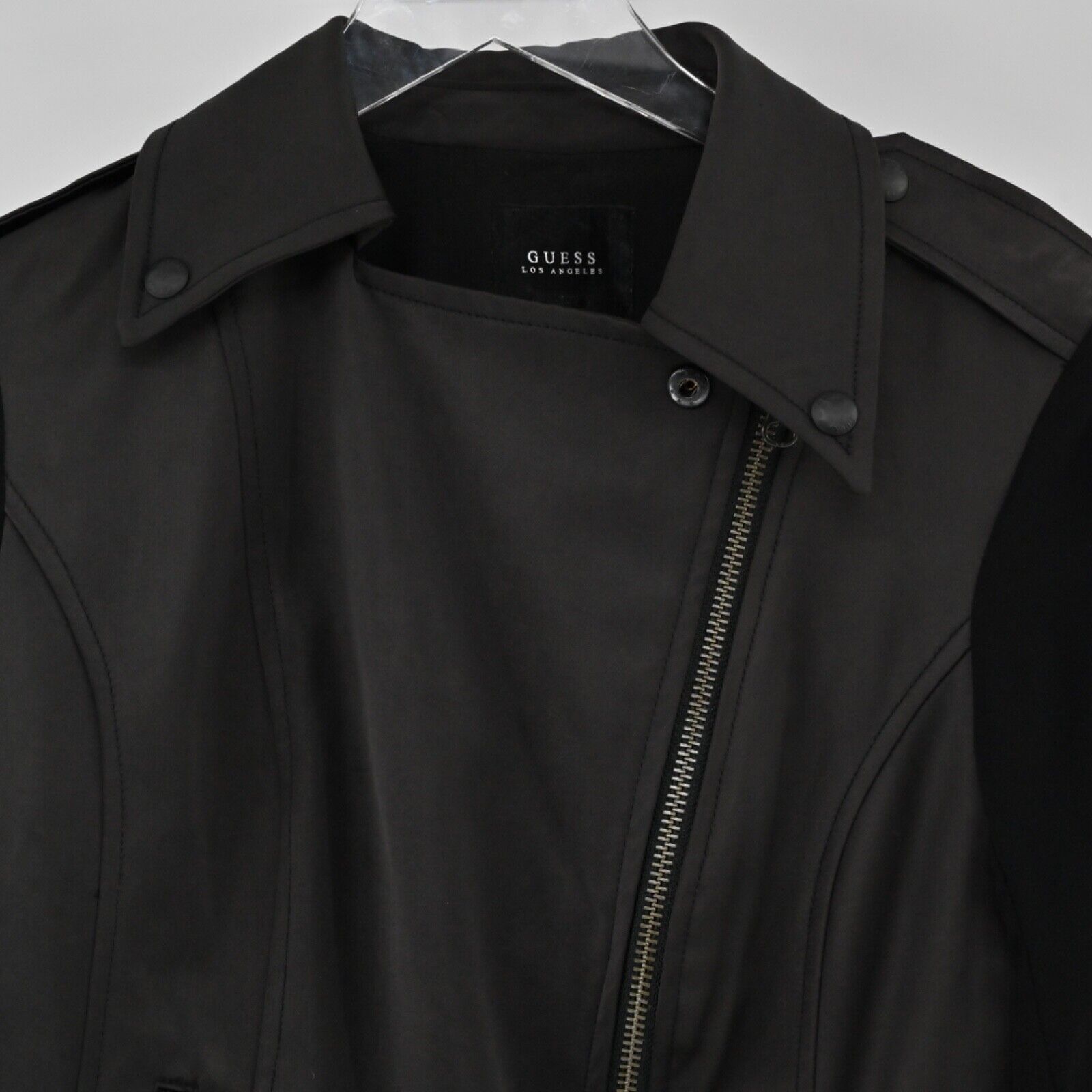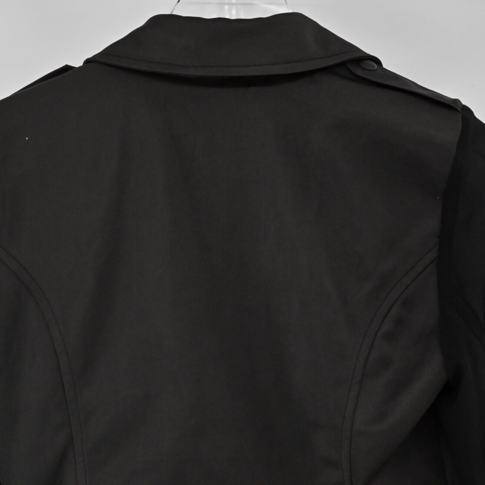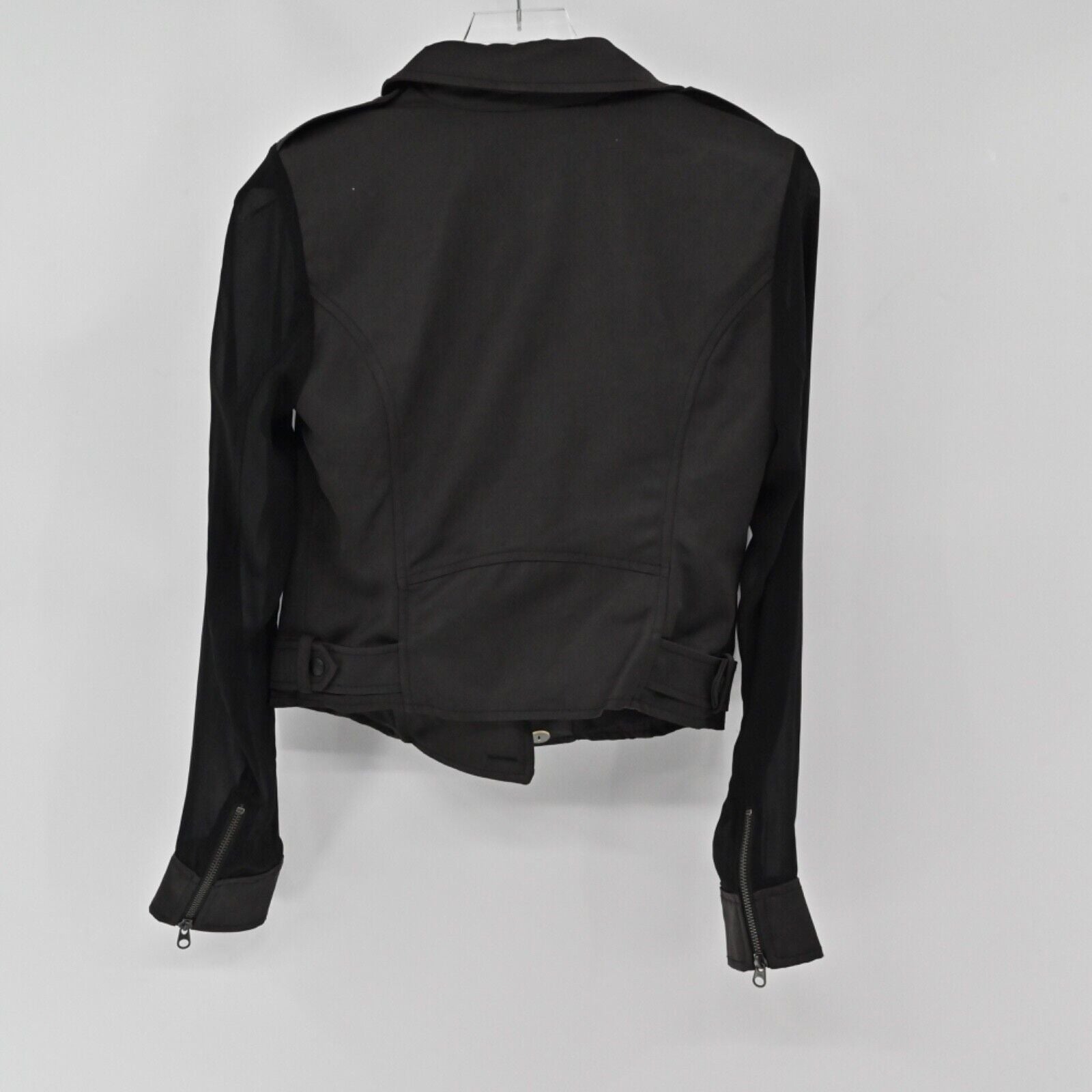 GUESS Jacket Women's Size Small Black Collared Asymmetric Full Zip Snap Closure Epaulettes Sheer Sleeves Zipper Cuffs Zipper Pockets Crop Moto Grunge Gothic