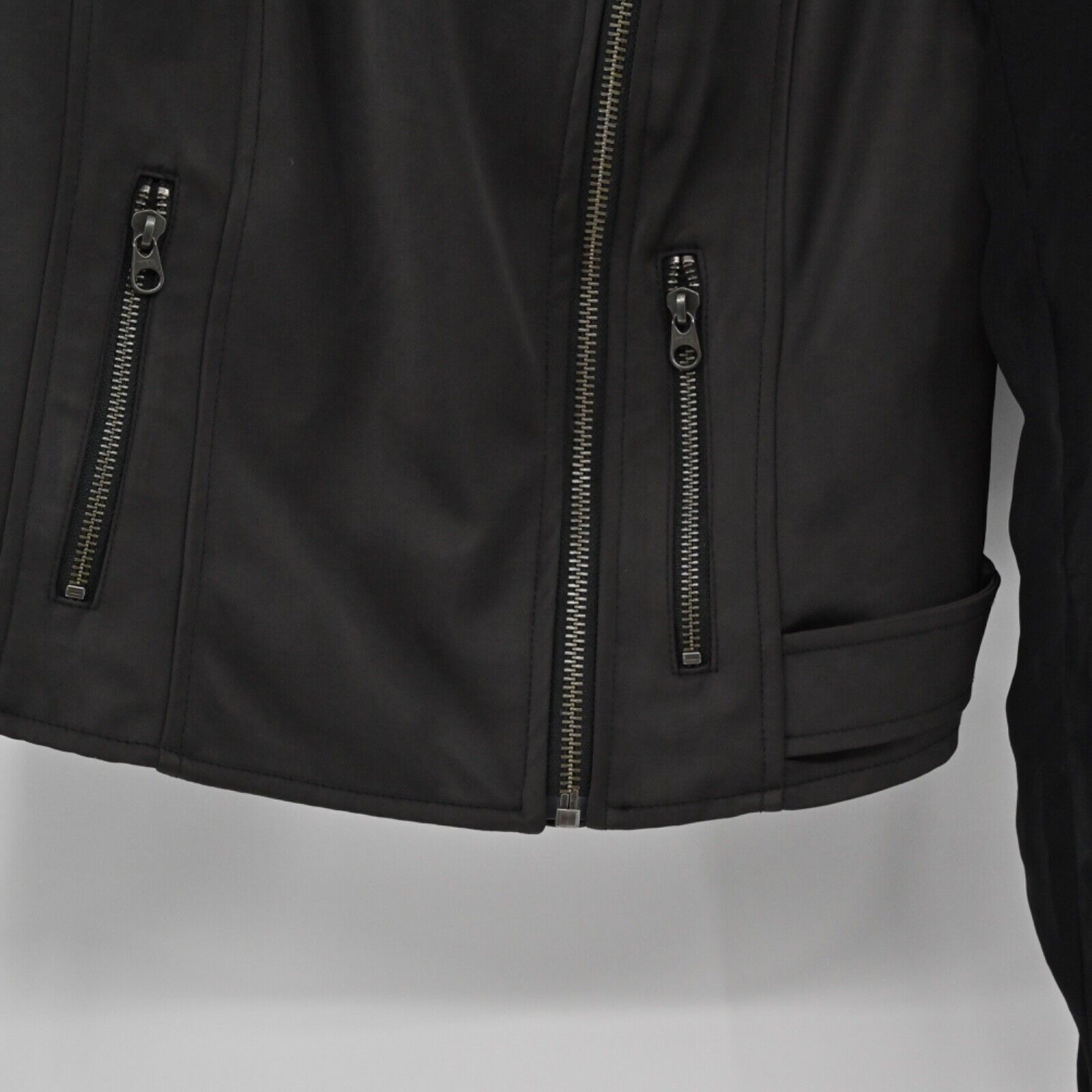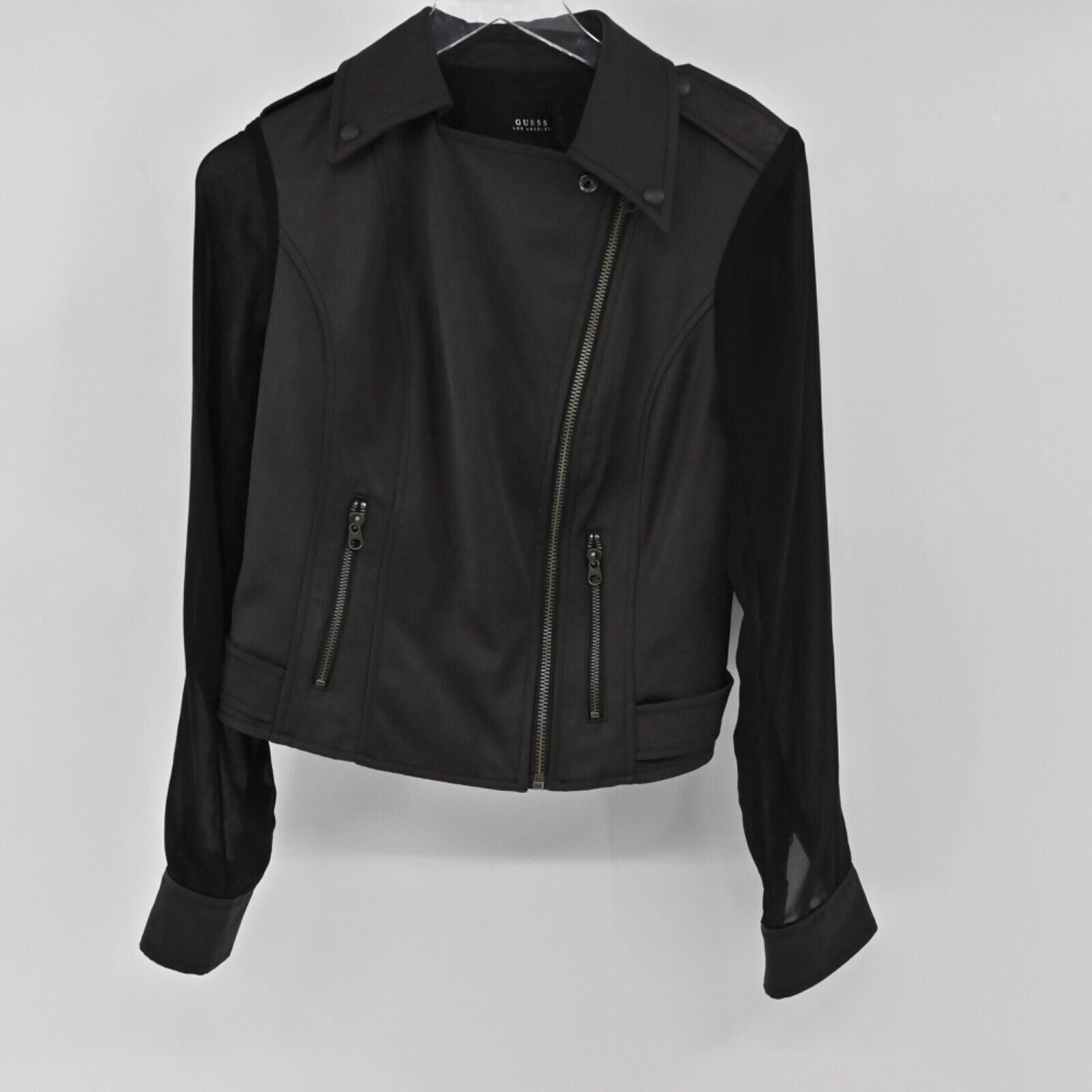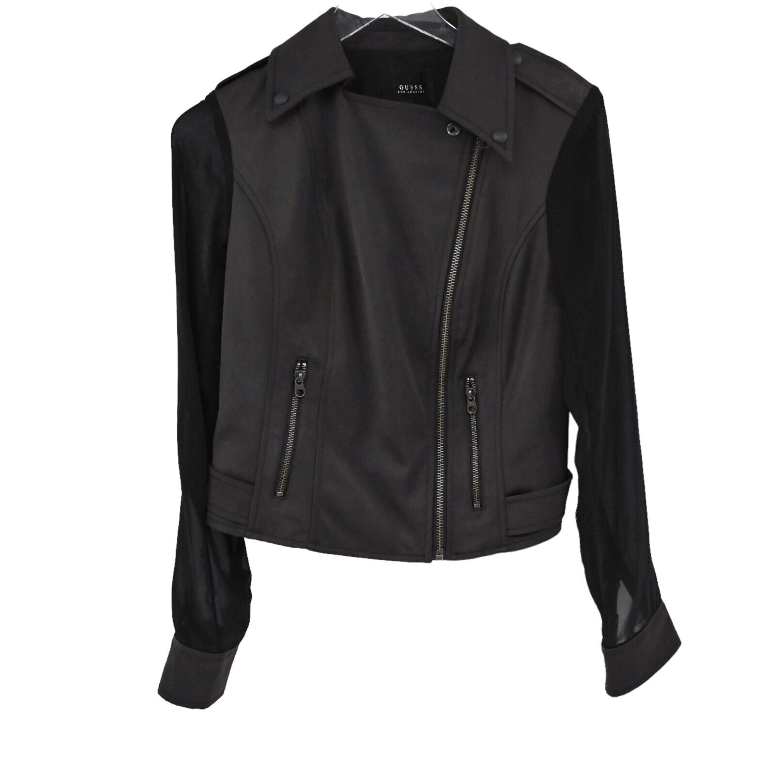 GUESS Jacket Womens Sz S Black Asymmetric Full Zip Sheer Sleeve Crop Moto Grunge