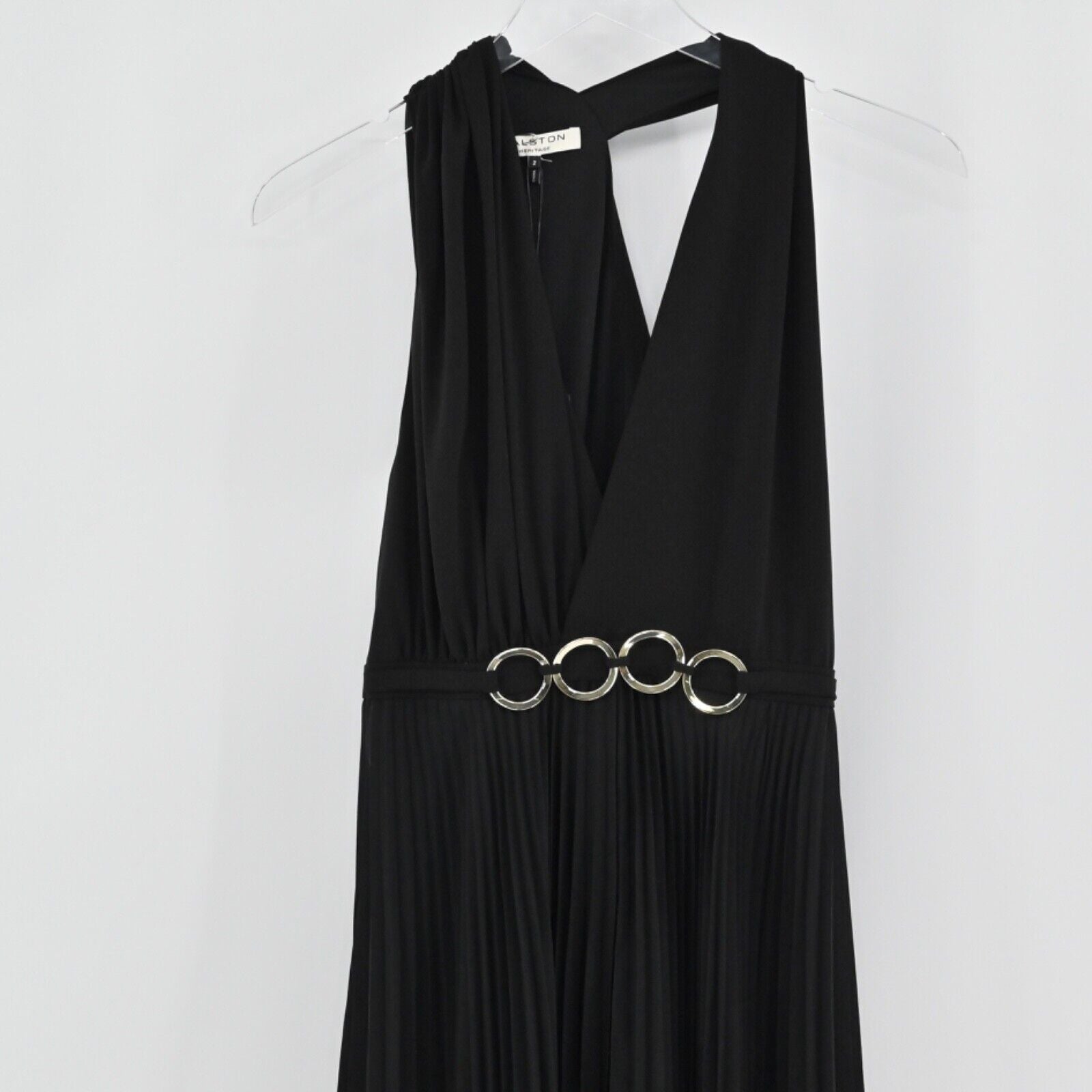 HALSTON HERITAGE Dress Womens Sz 2 Evening Gown Black Pleated Halter Retro NEW