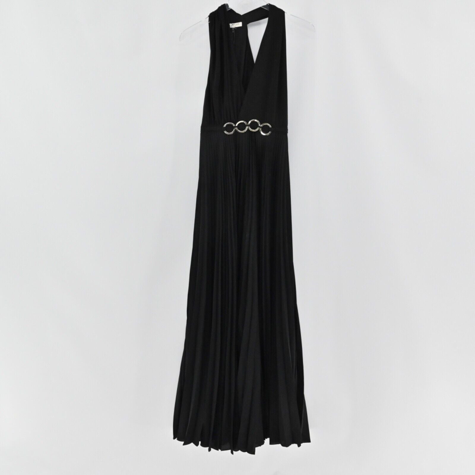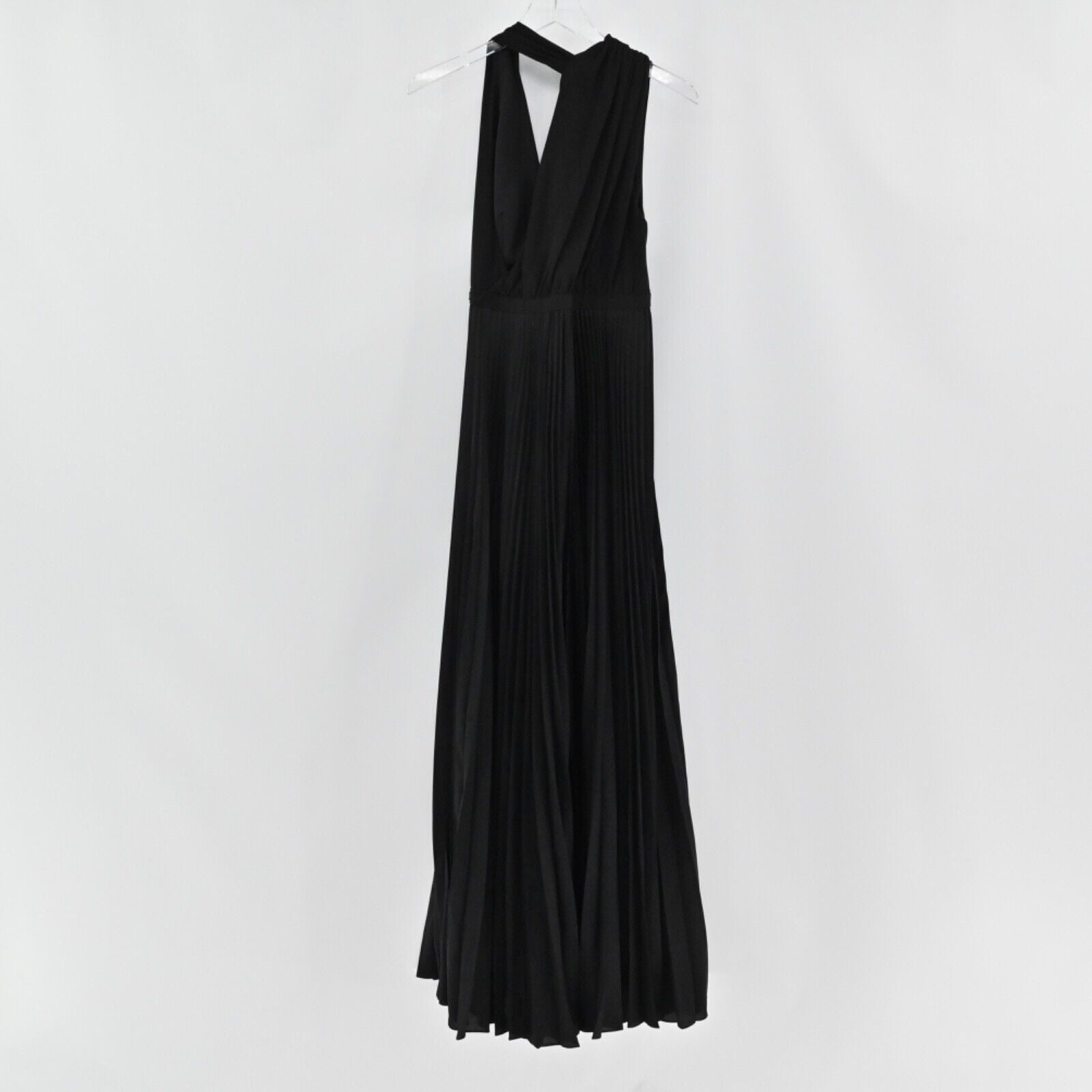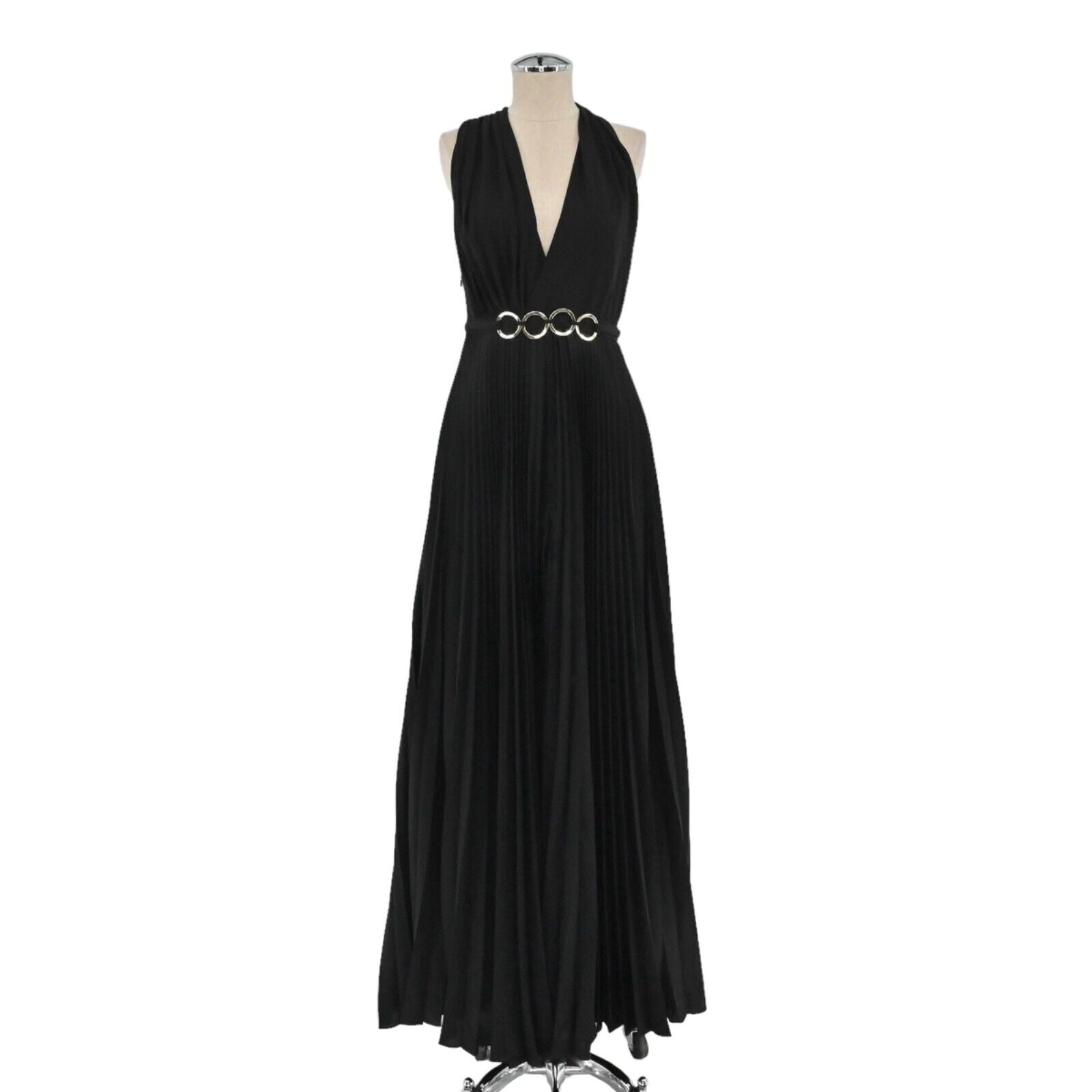 NWT HALSTON HERITAGE Women's Size 2 Evening Dress Black Pleated Halter MSRP $475 Retro Wedding Bohemian Boho Grunge Gothic 00’s Y2K Early 2000’s