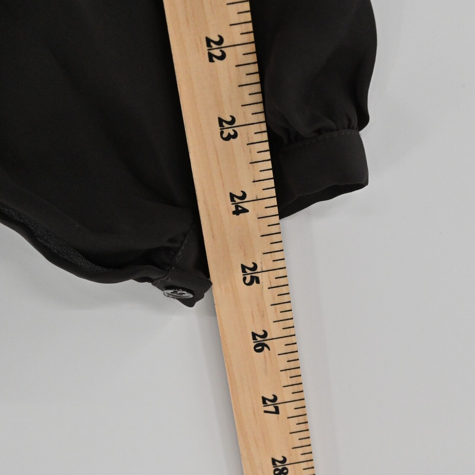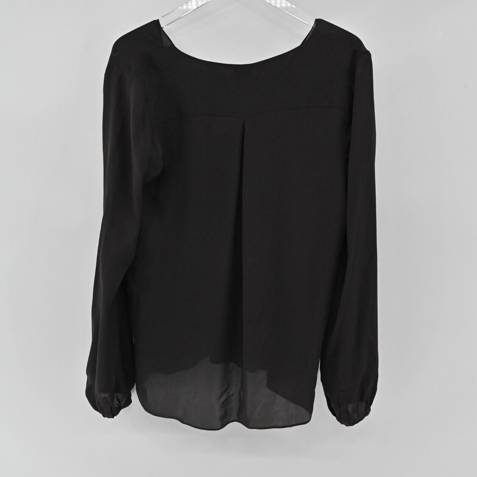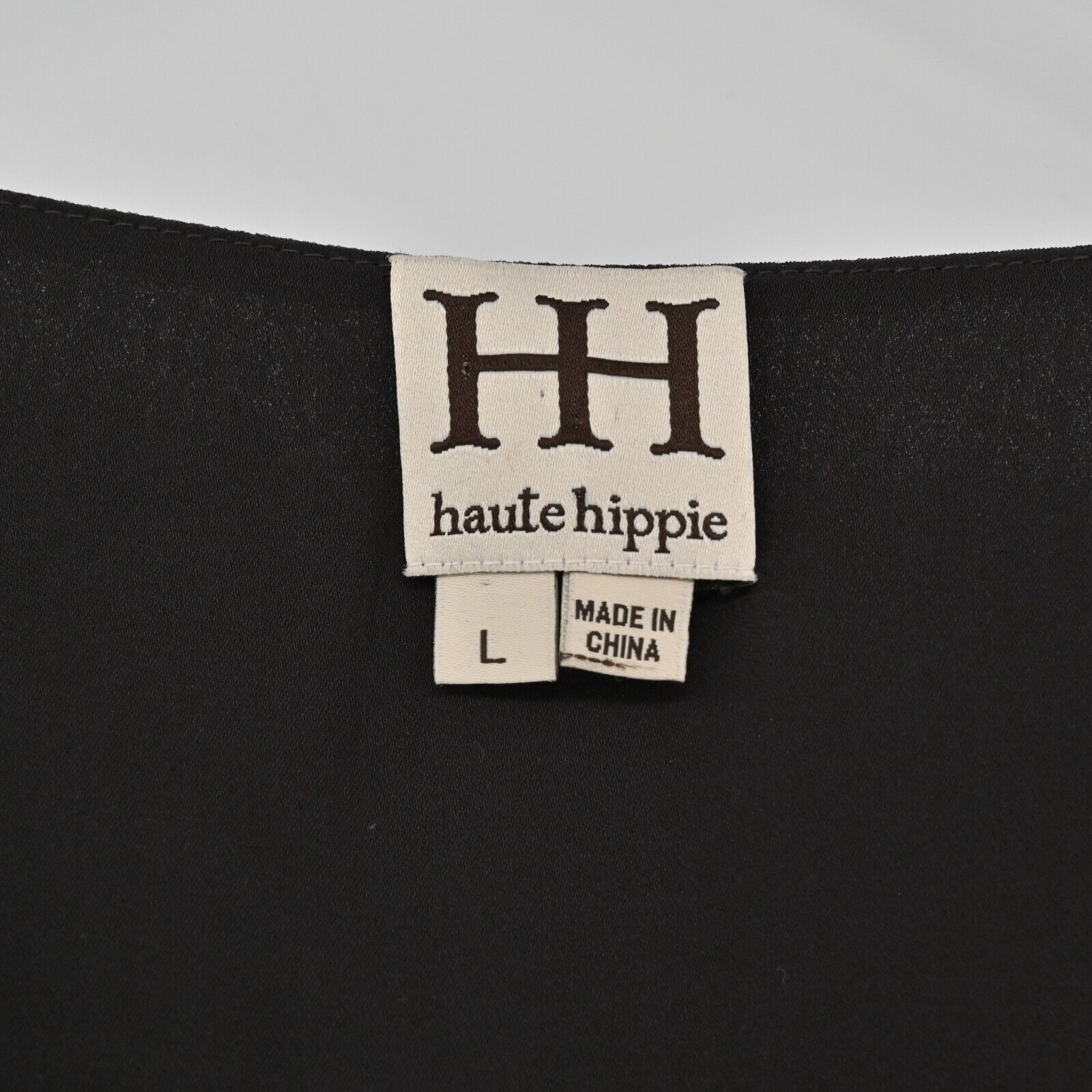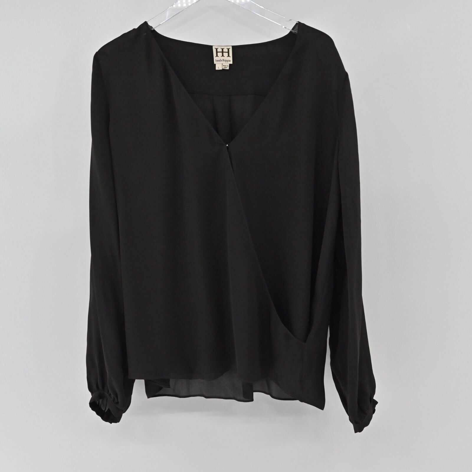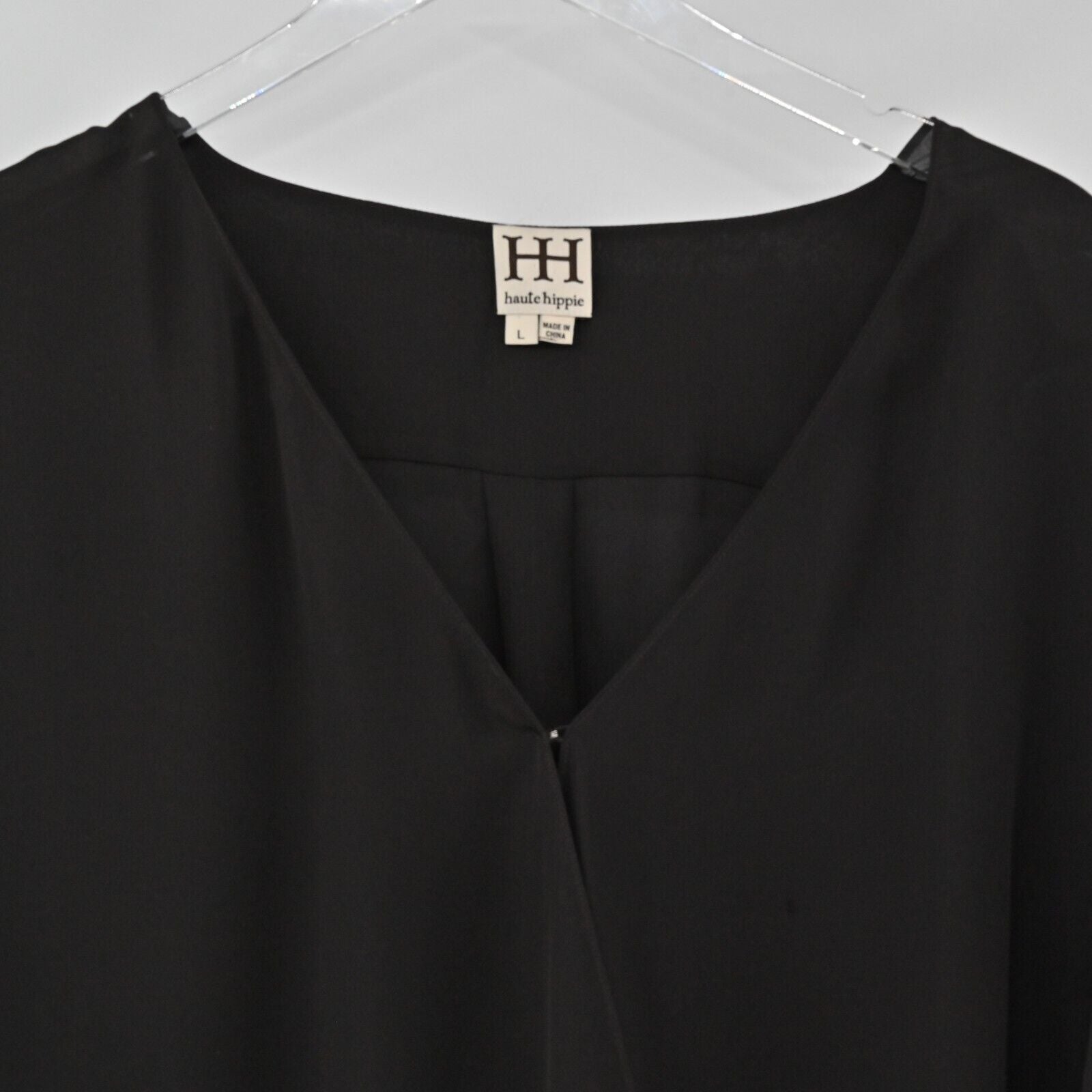 HAUTE HIPPIE Top Women's Size Large Long Sleeve Silk Black Wrap Front V Neckline HH Blouse Lightweight Basic Work Office Business Versatile Casual Classic Fall Vacation Chic Solid