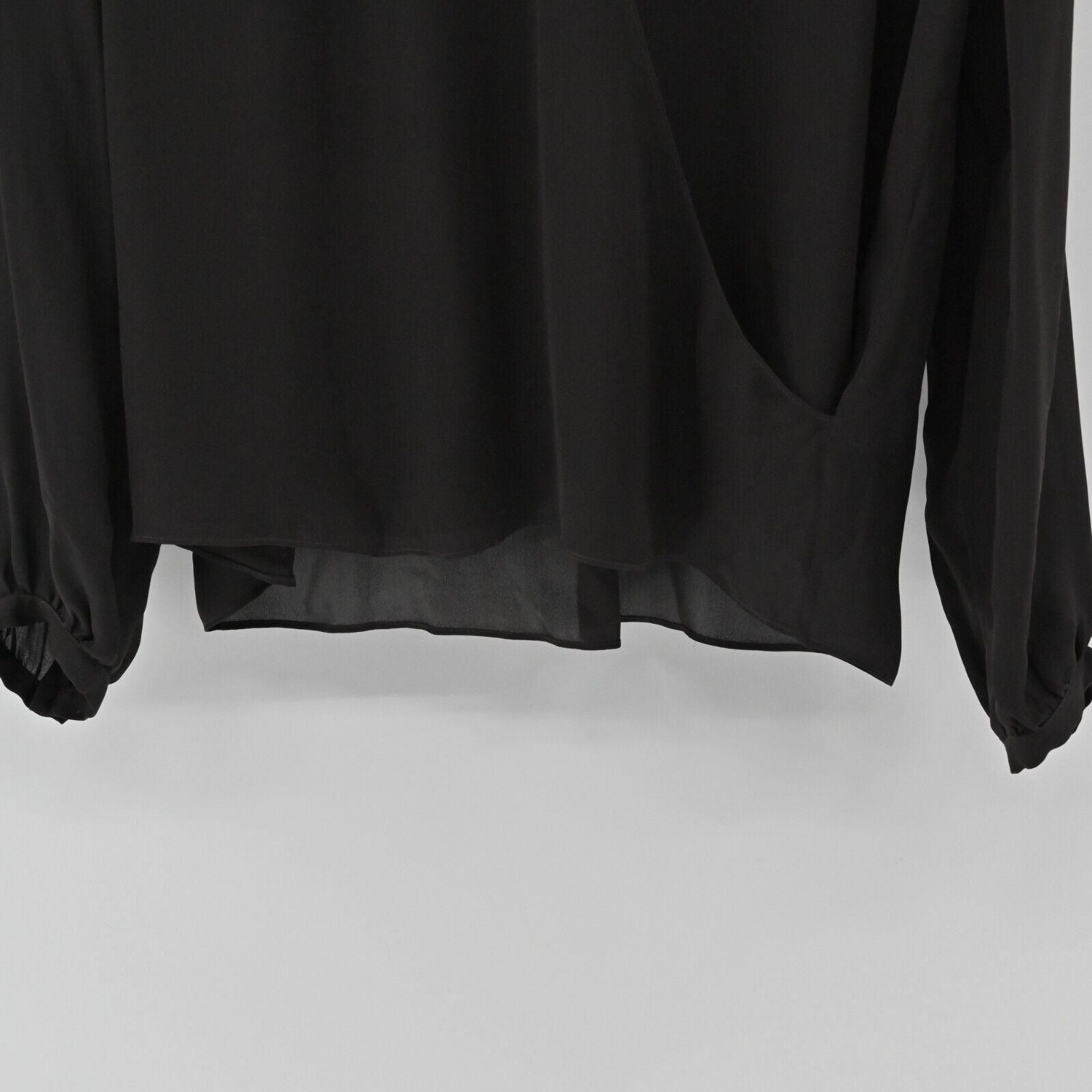 HAUTE HIPPIE Top Womens Size L Long Sleeve Silk Black Wrap Front V Neck Blouse