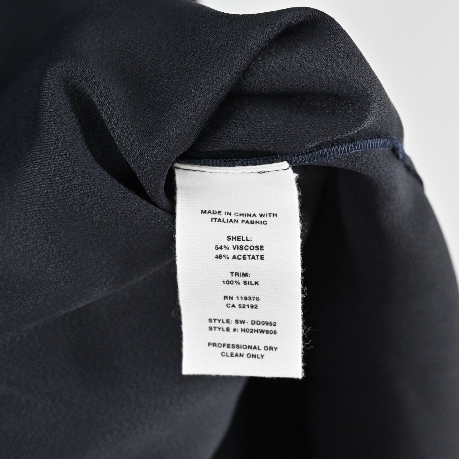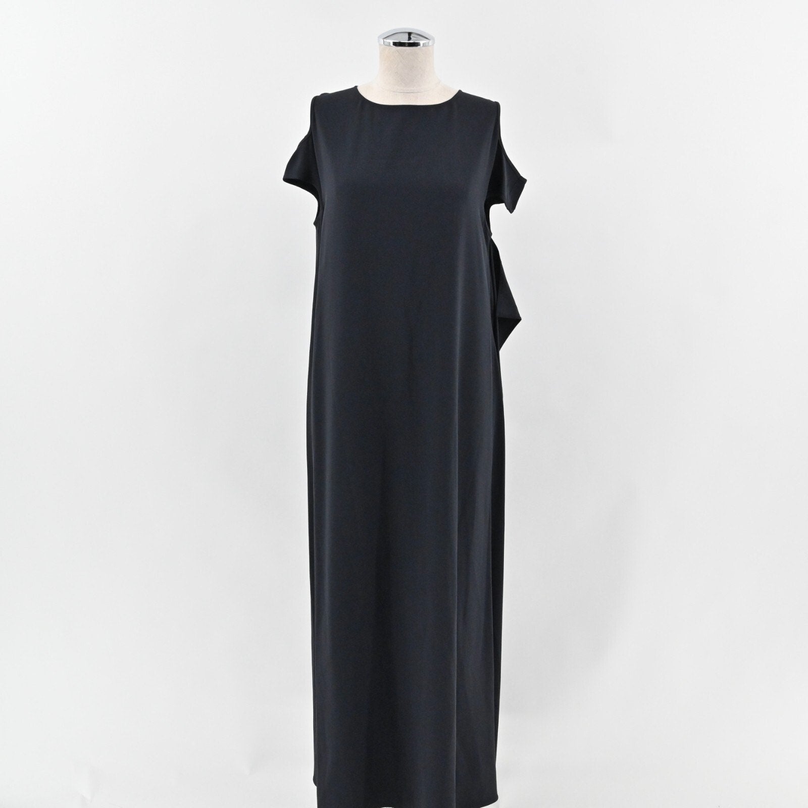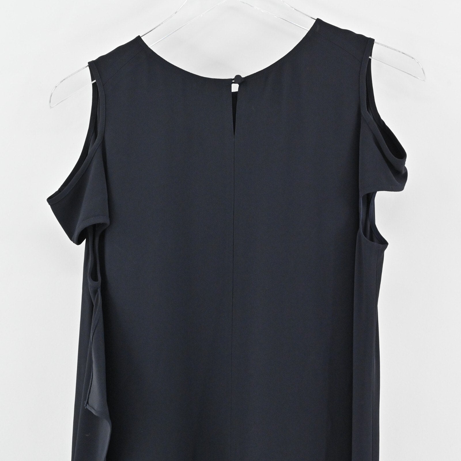 HELMUT LANG Silk Dress Size L Dark Navy Cold Shoulder Relaxed Trim Lagenlook