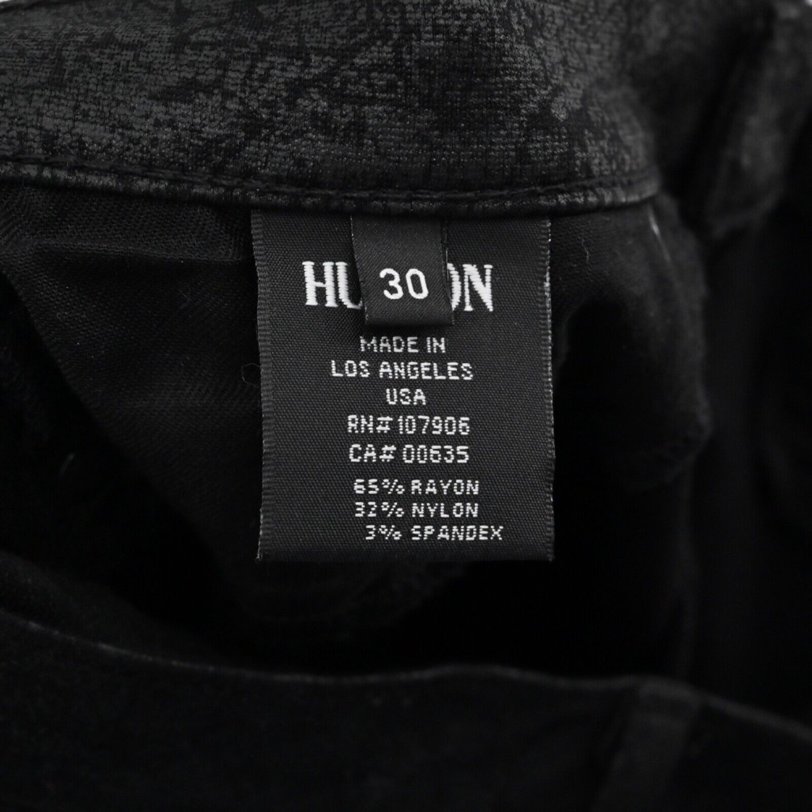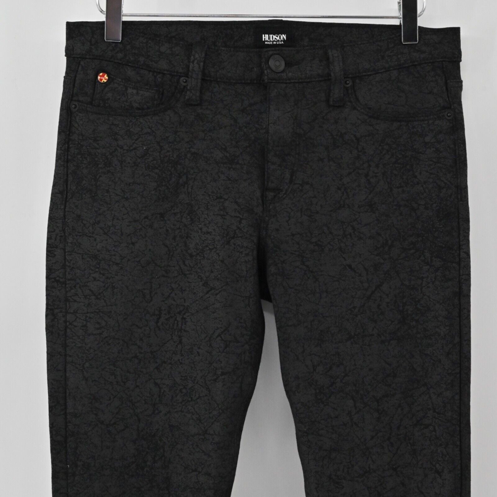 HUDSON Pants Women's Size 30 Black Crackle Nico Mid Rise Super Skinny Stretch Zip Fly Button Closure Made In USA Retro Grunge Bohemian Boho Gothic