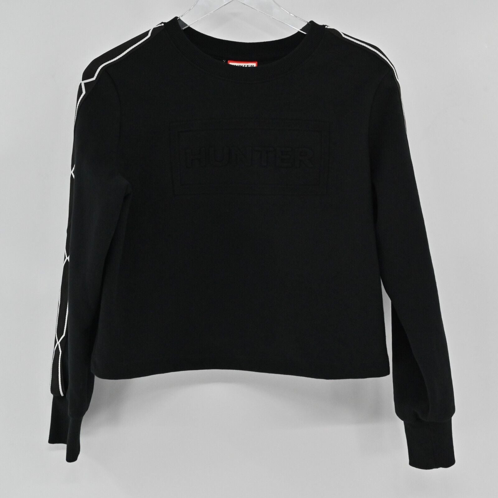 HUNTER Pullover Crewneck Womens Sz S Sweatshirt Chain Trim Logo Black White Crop
