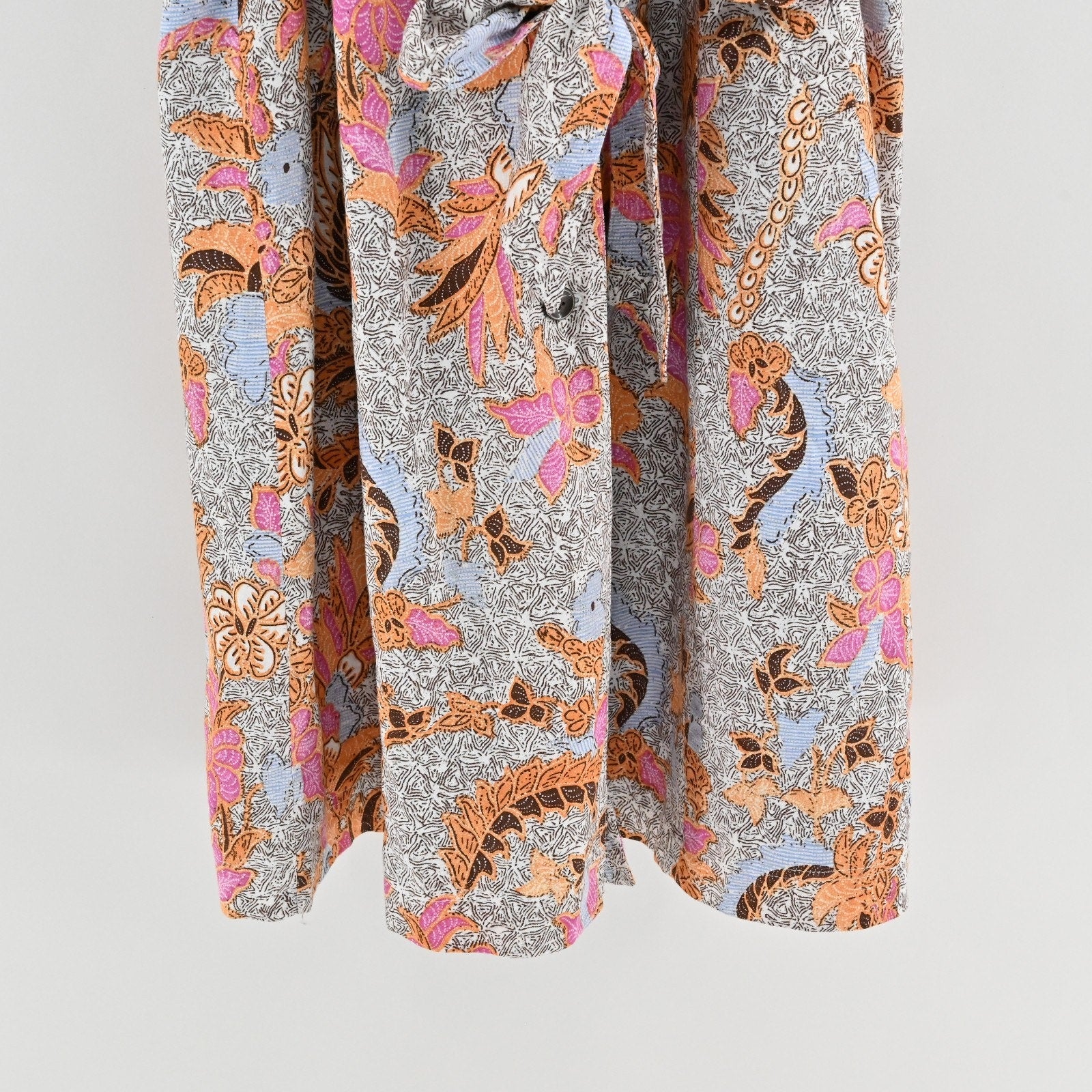 INC Floral Print Belted Midi Dress Size XXL Linen Paisley Duster Lined Boho Puff
