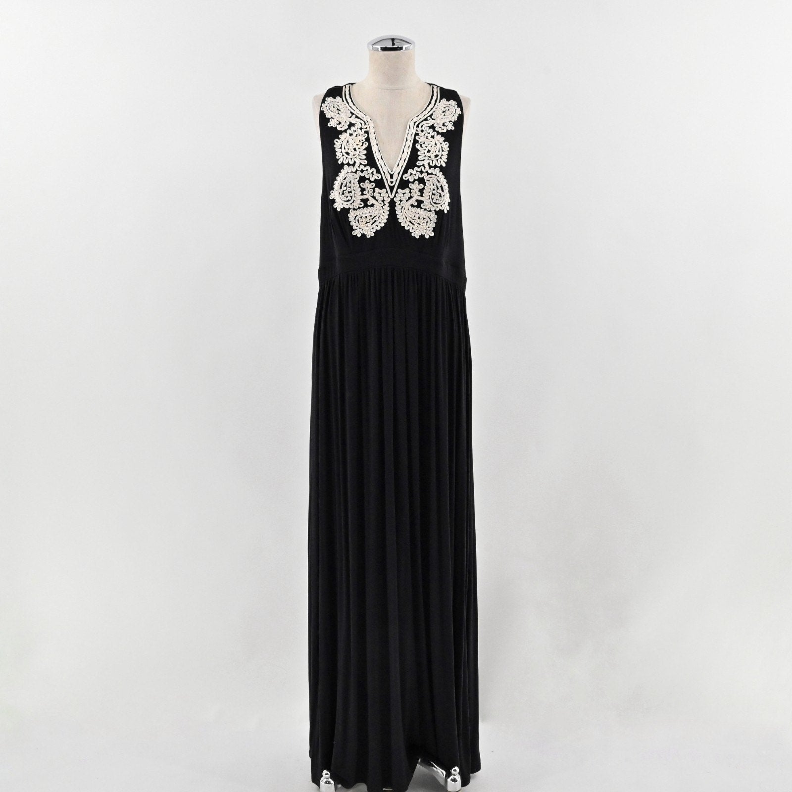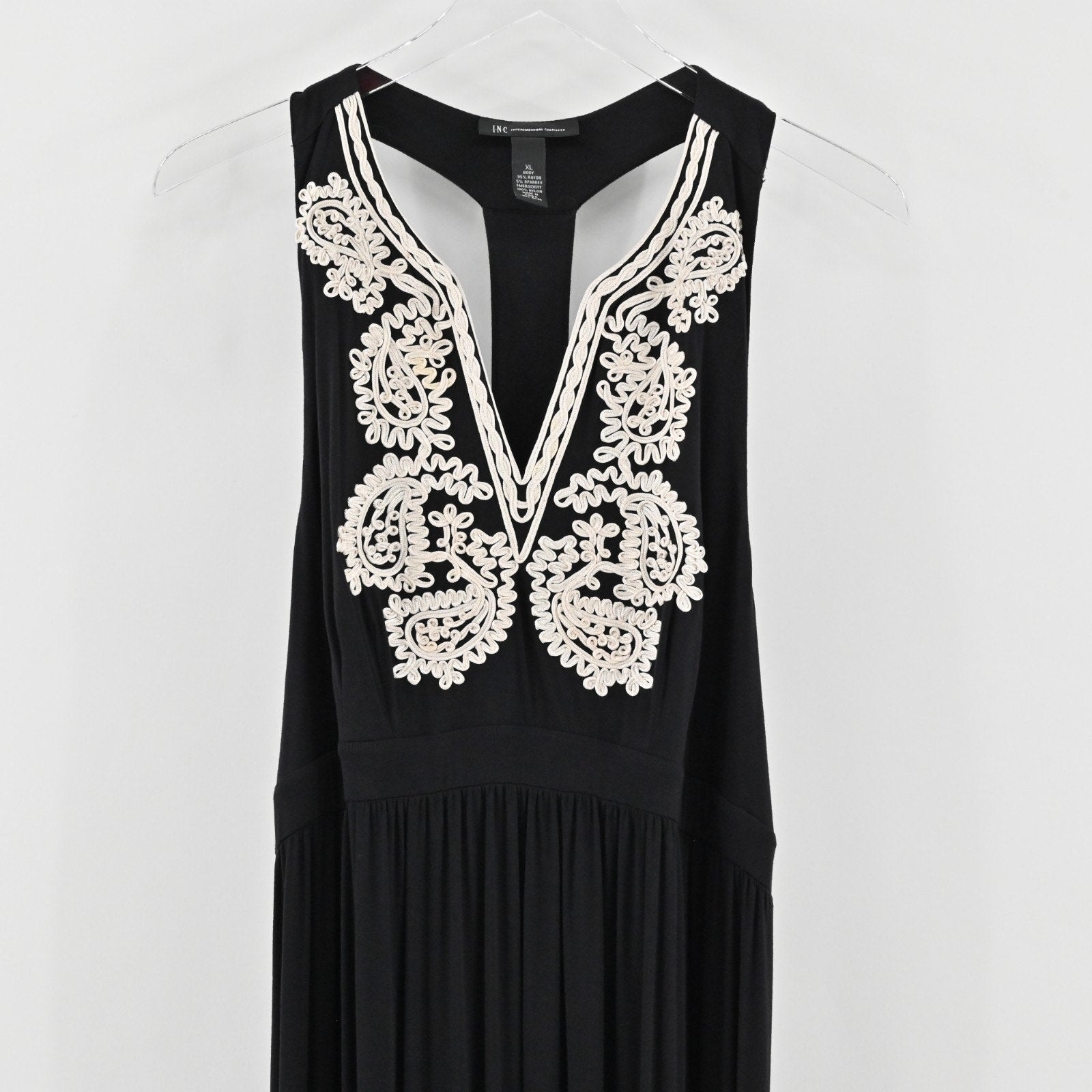 INC International Concepts Embroidered Maxi Dress Size XL Black Sleeveless VNeck