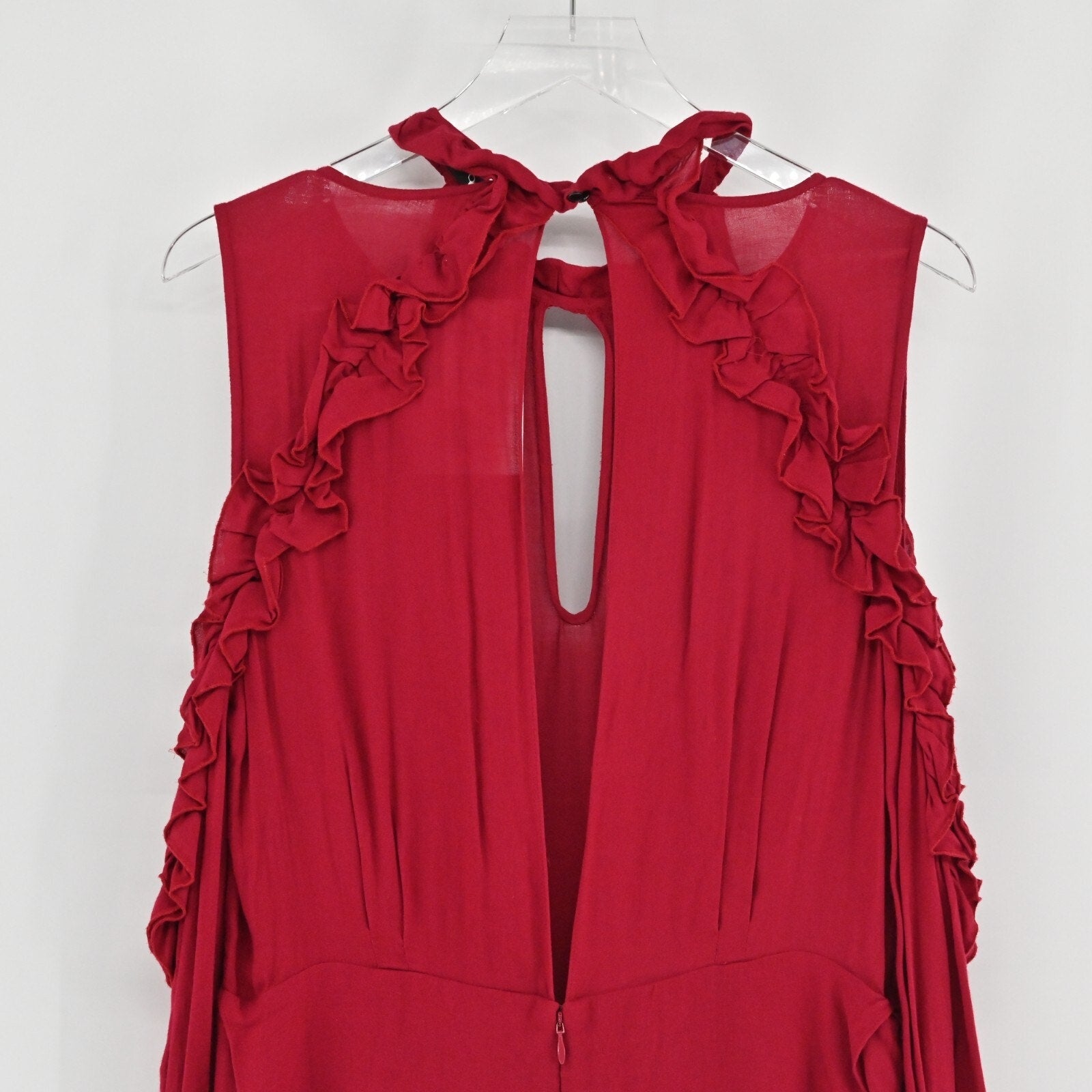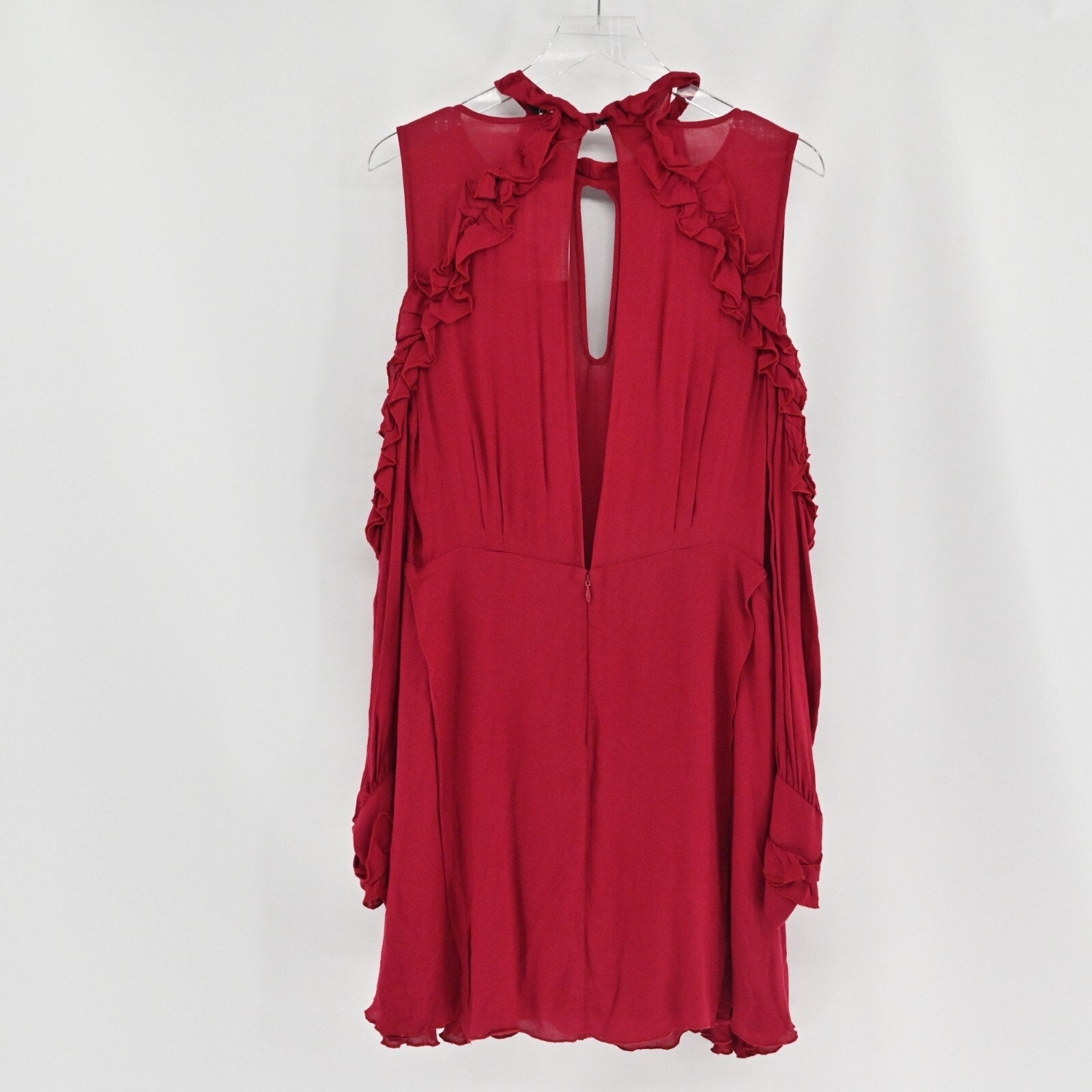 IRO Womens Hanie Cold Shoulder Dress Size 42 XL Red Ruffle Long Sleeve Mini NEW