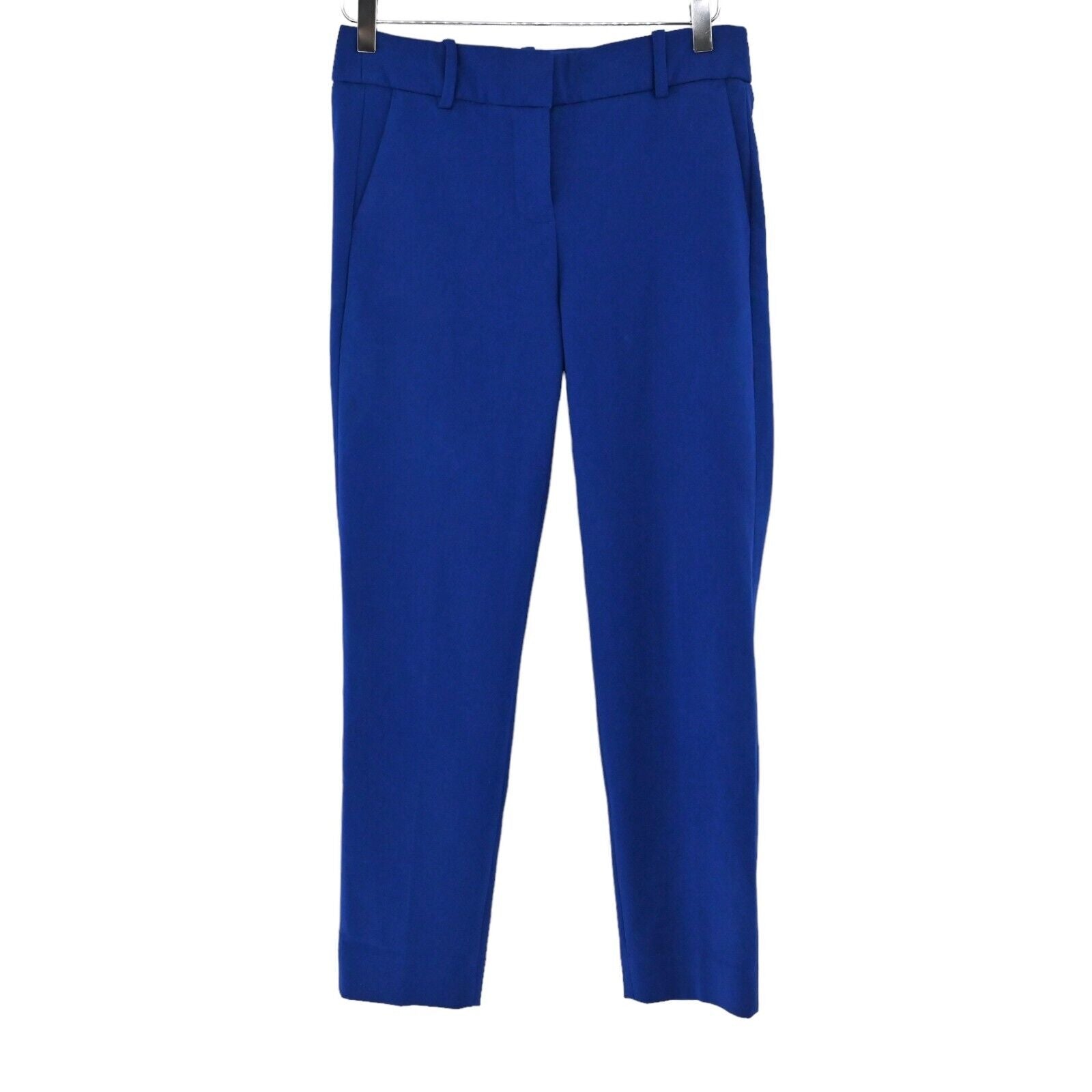 J.CREW Pants Women's Size 4 Royal Blue Low Rise Tapered Slim Dress Slash Front & Back Pockets Zip Fly Hook & Bar Closure Stretch Office Career Preppy