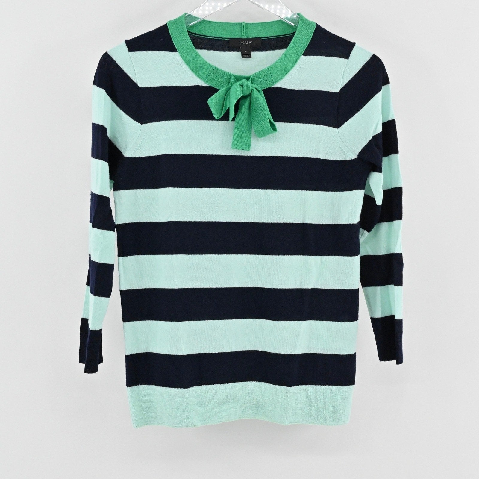 J Crew Womens Tippi Tie Neck Sweater Size M Merino Wool Striped Cozy Preppy Chic